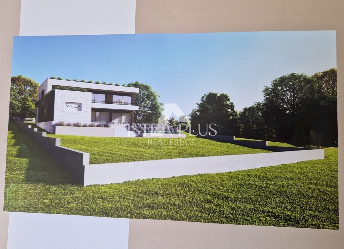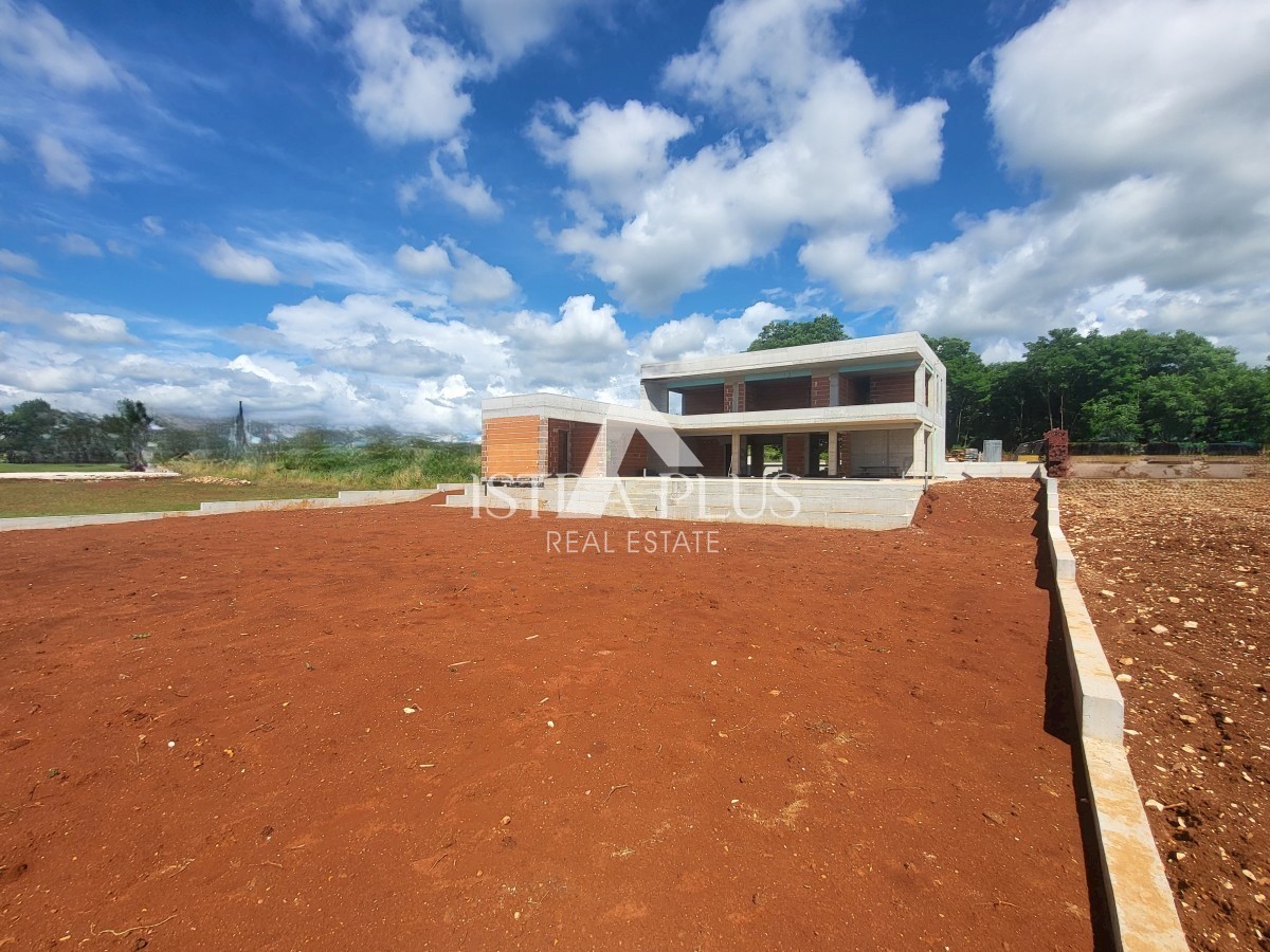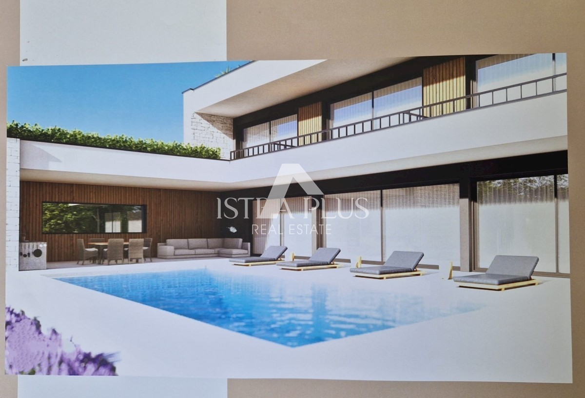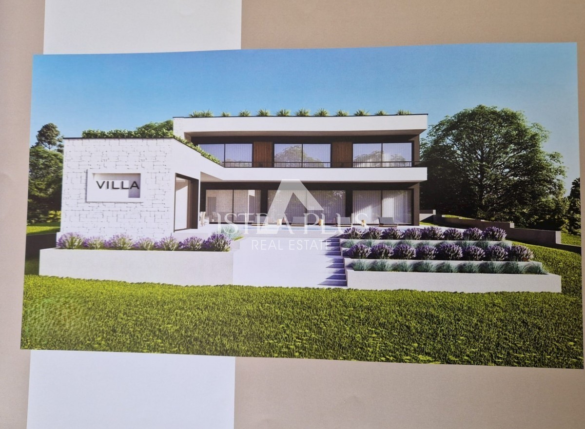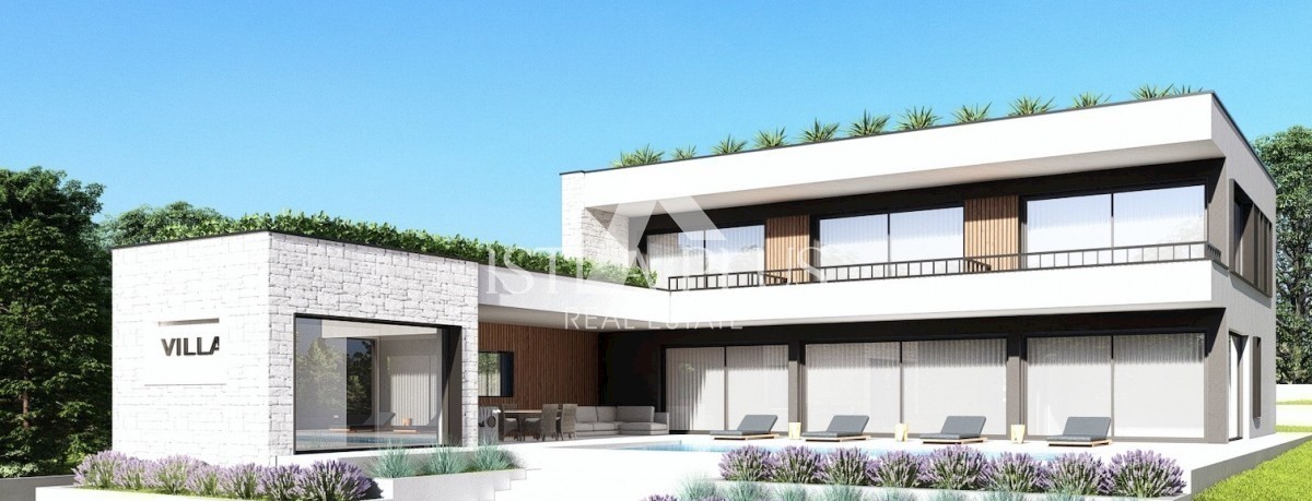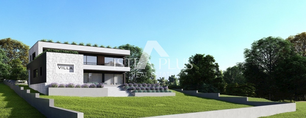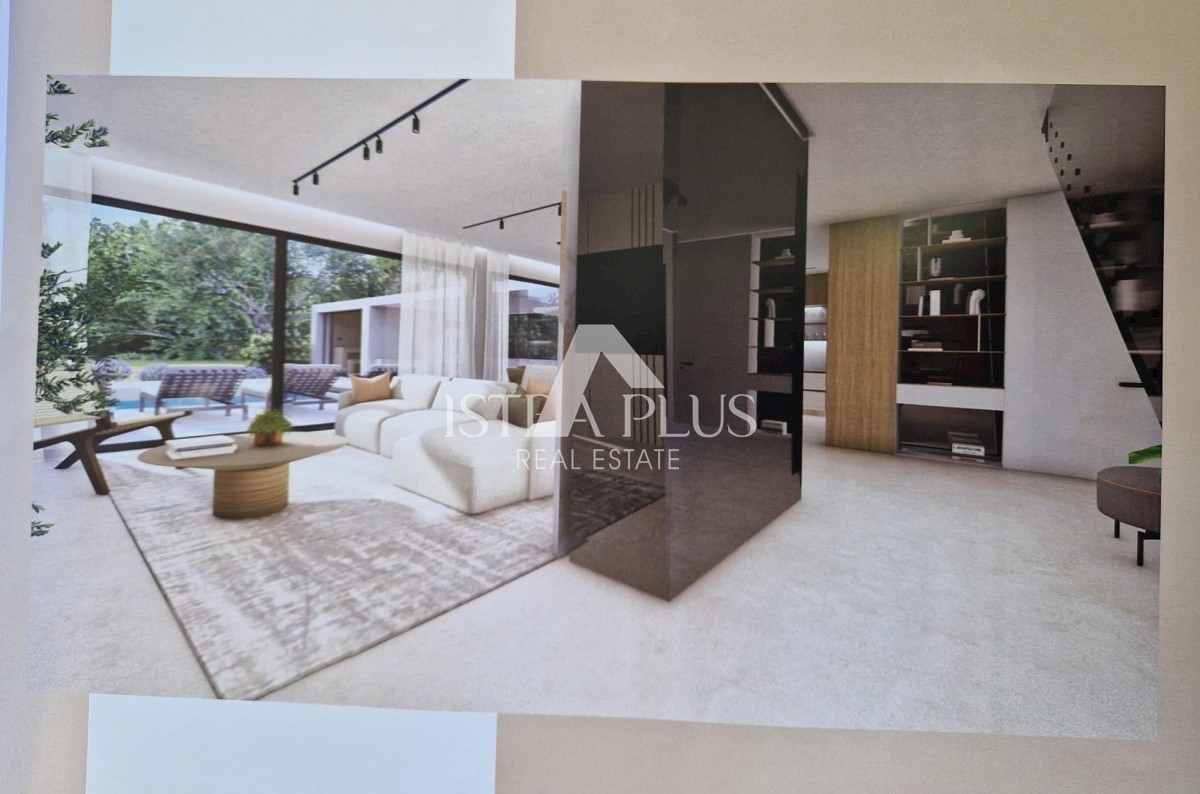 K208 Luxusvilla mit Pool – Umgebung von Poreč Die Villa befindet sich auf einem Grundstück von 1388 m2 und erstreckt sich über zwei Etagen. Im Erdgeschoss gibt es einen überdachten Eingang, durch den man die Villa betritt, wo sich ein Wohnzimmer, eine Küc