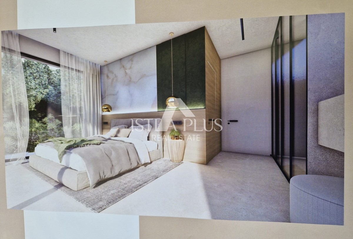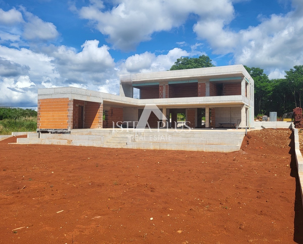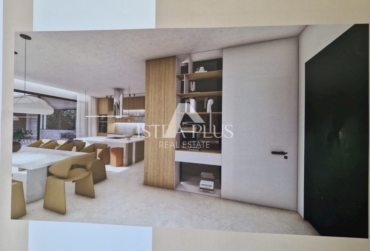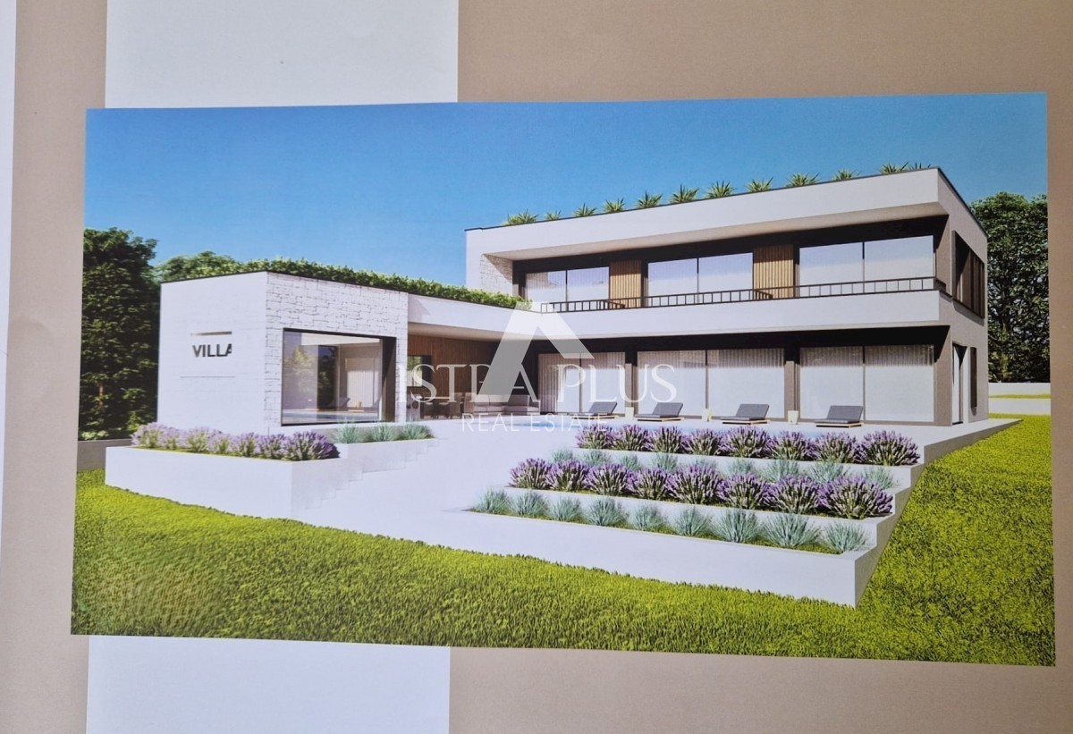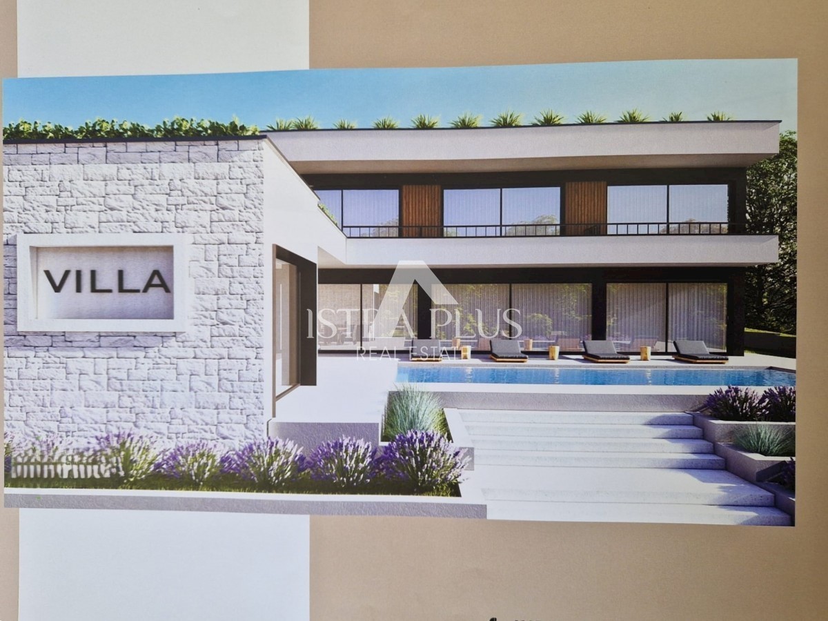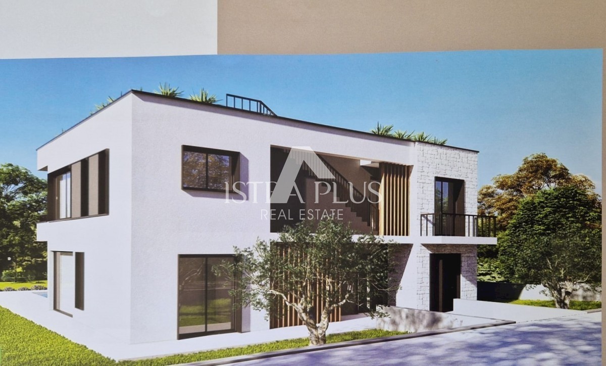 K208 Luxusvilla mit Pool – Umgebung von Poreč Die Villa befindet sich auf einem Grundstück von 1388 m2 und erstreckt sich über zwei Etagen. Im Erdgeschoss gibt es einen überdachten Eingang, durch den man die Villa betritt, wo sich ein Wohnzimmer, eine Küc