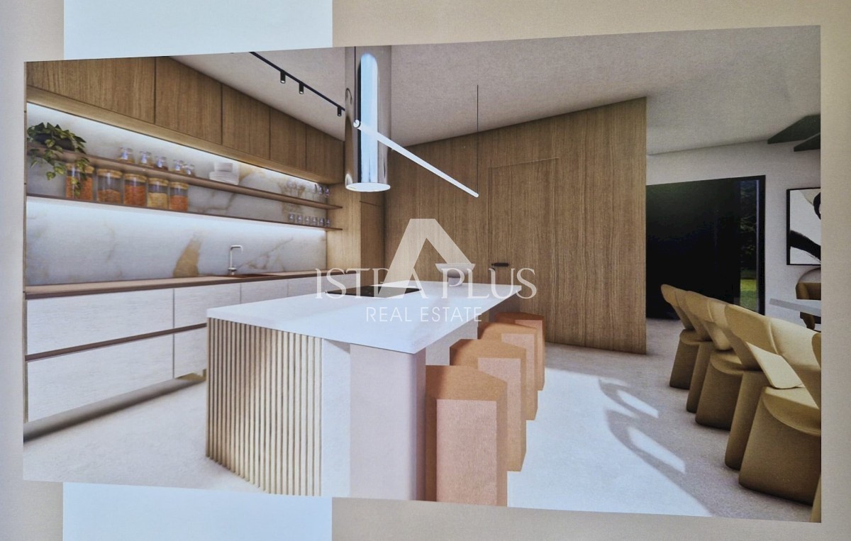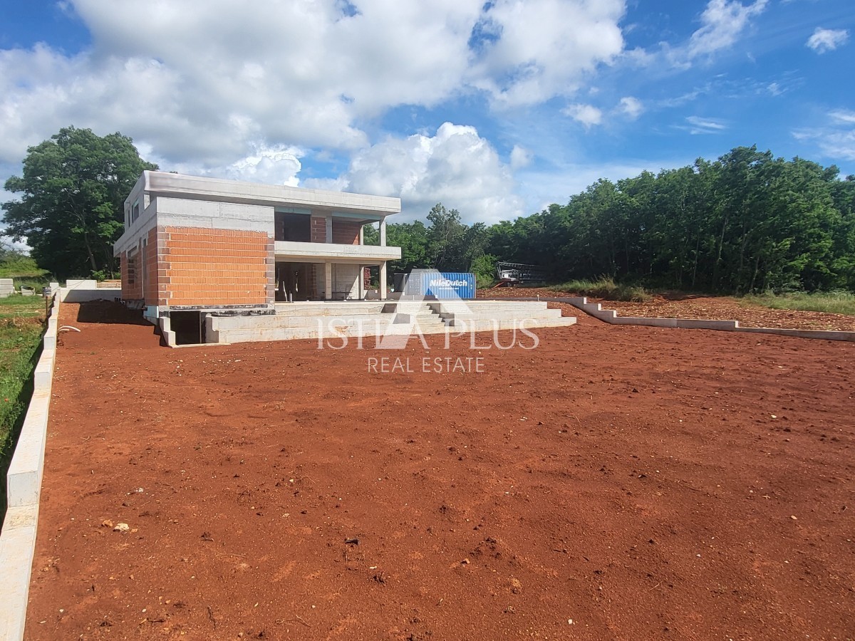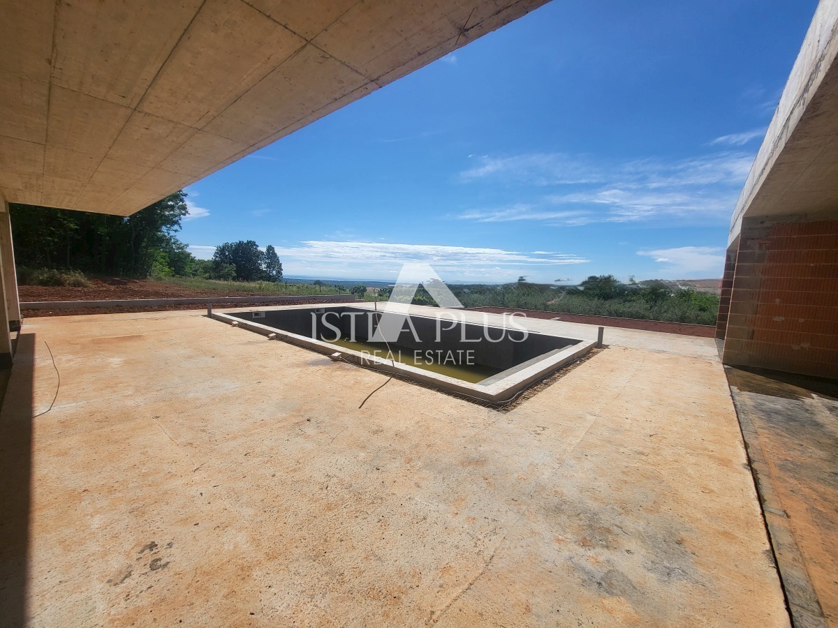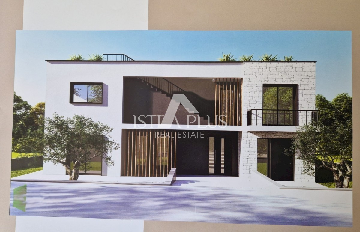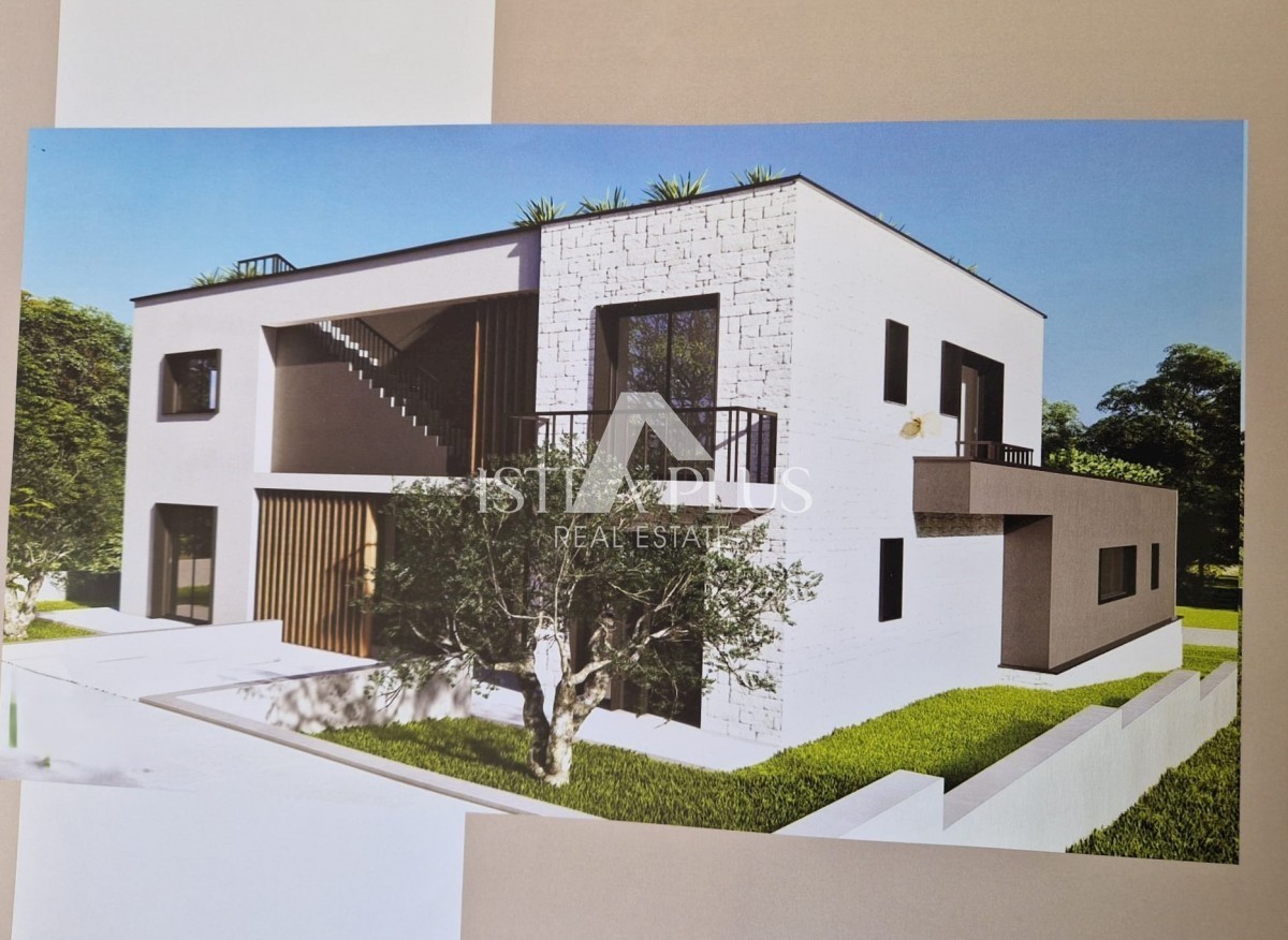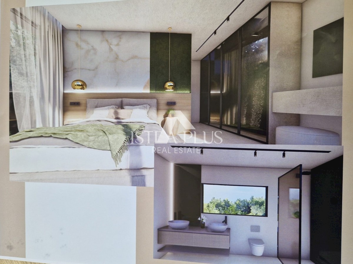 K208 Luxusvilla mit Pool – Umgebung von Poreč Die Villa befindet sich auf einem Grundstück von 1388 m2 und erstreckt sich über zwei Etagen. Im Erdgeschoss gibt es einen überdachten Eingang, durch den man die Villa betritt, wo sich ein Wohnzimmer, eine Küc
