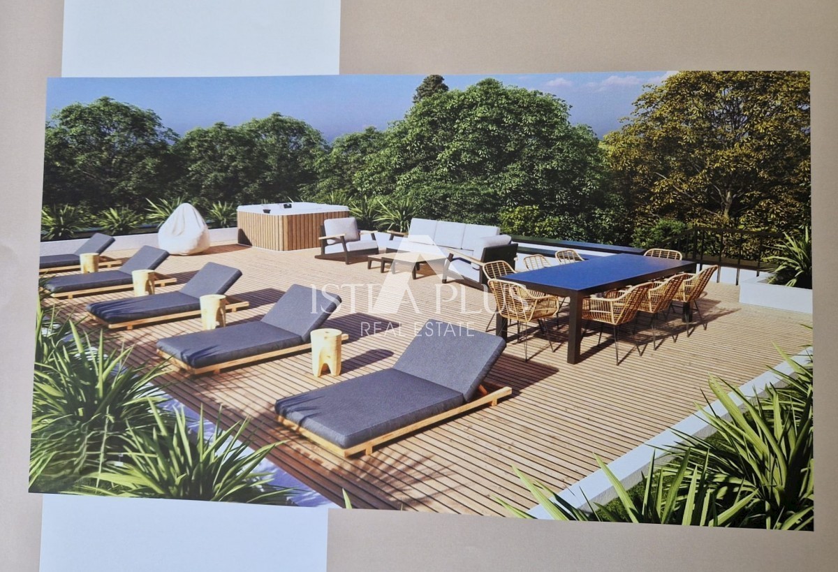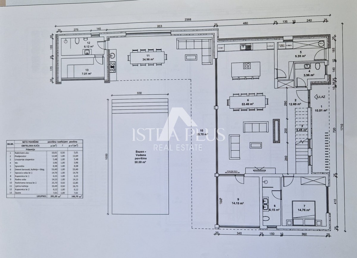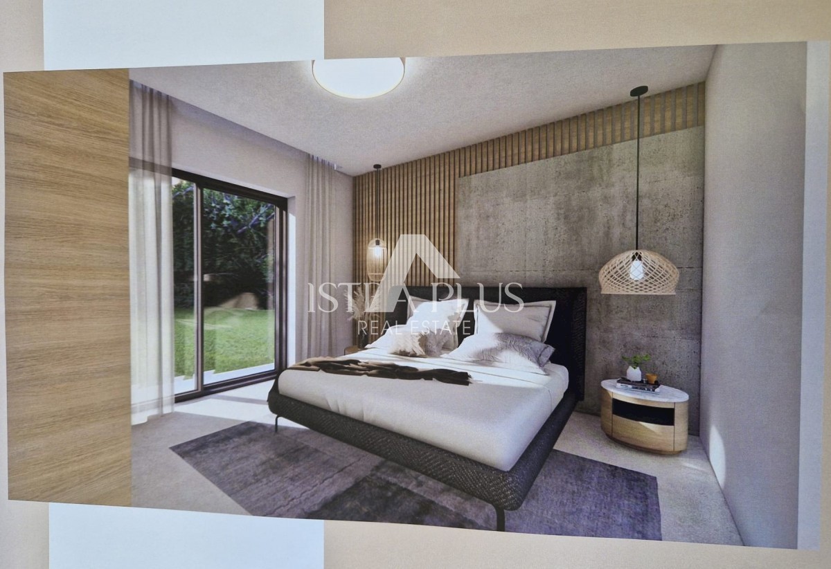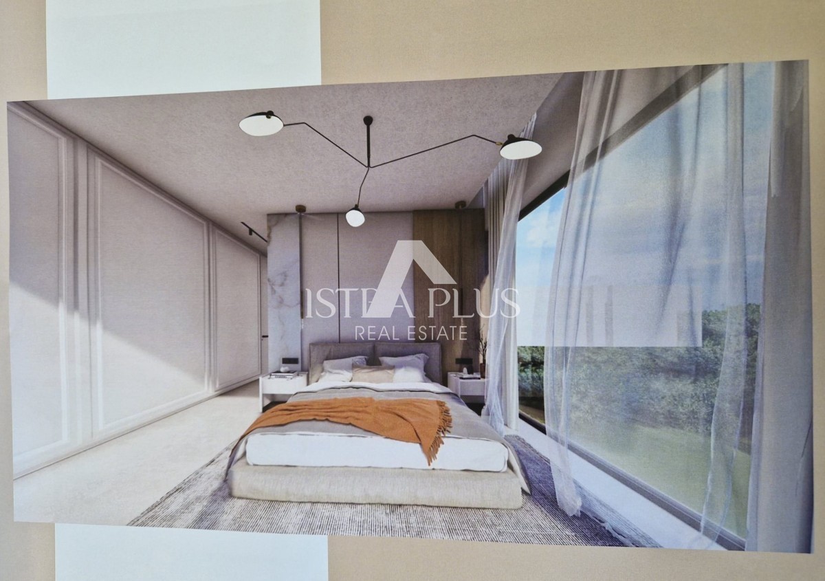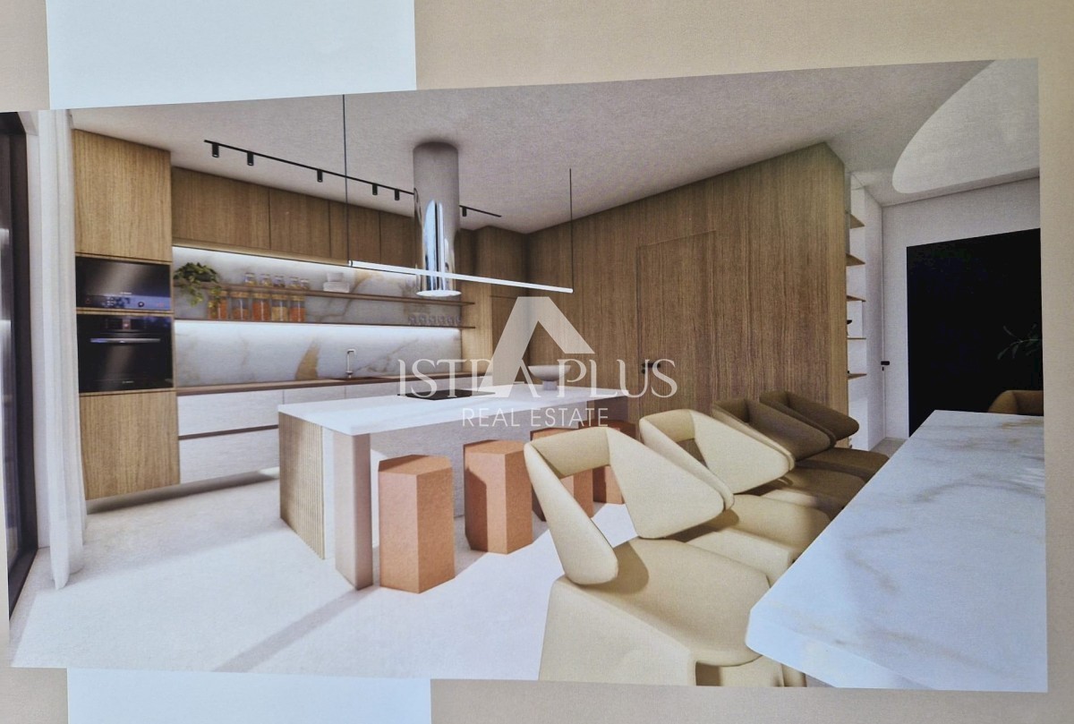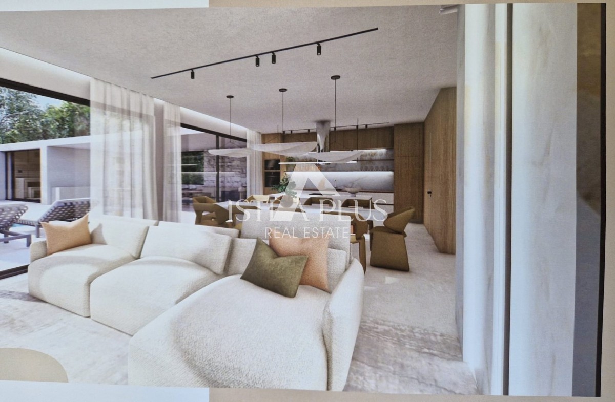 K208 Luxusvilla mit Pool – Umgebung von Poreč Die Villa befindet sich auf einem Grundstück von 1388 m2 und erstreckt sich über zwei Etagen. Im Erdgeschoss gibt es einen überdachten Eingang, durch den man die Villa betritt, wo sich ein Wohnzimmer, eine Küc