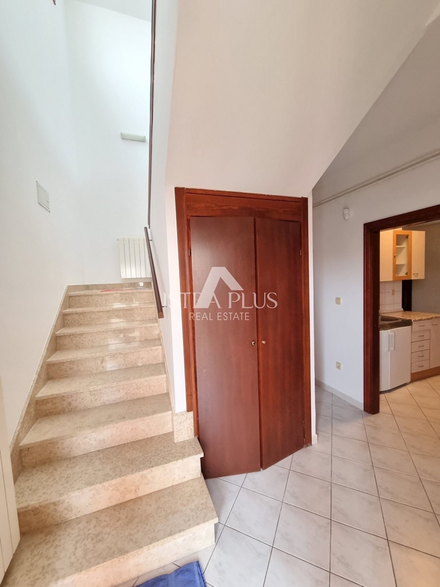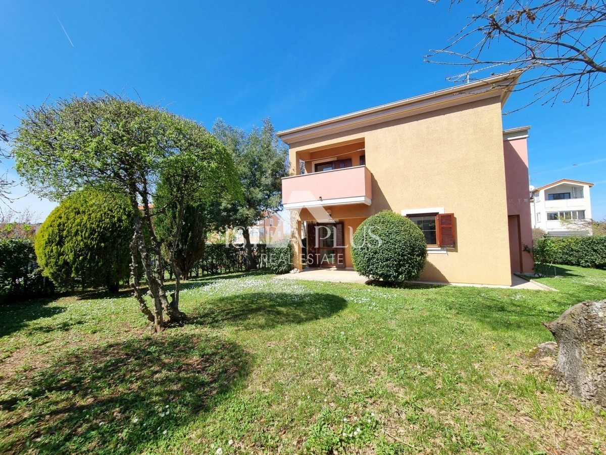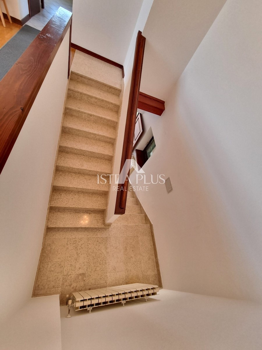 K222 Dieses Haus befindet sich im begehrtesten Teil von Poreč, nur 500 Meter vom Meer entfernt. Die Gesamtfläche des Grundstücks beträgt 679 m2. Das Haus besteht aus zwei separaten Wohnungen, die durch Innentreppen verbunden sind, sowie zwei Garagen und