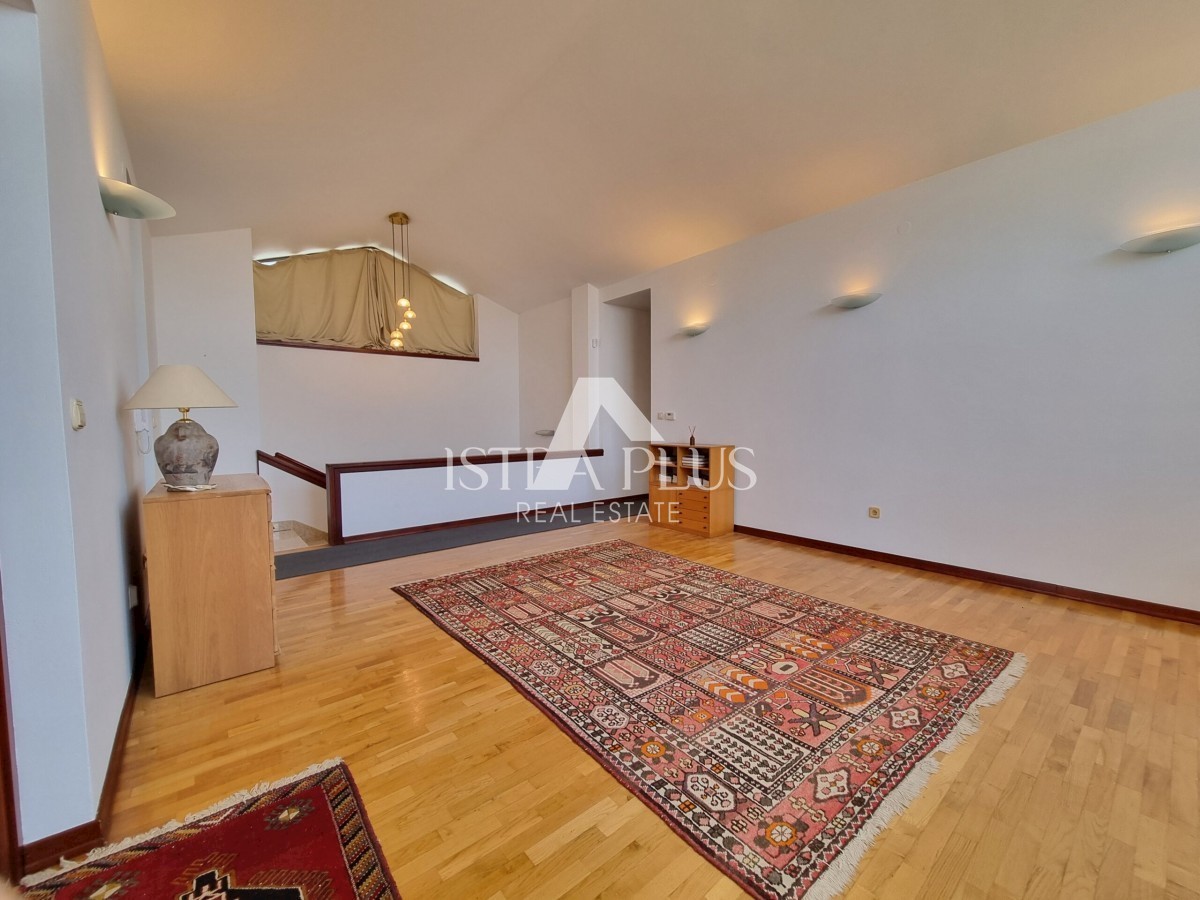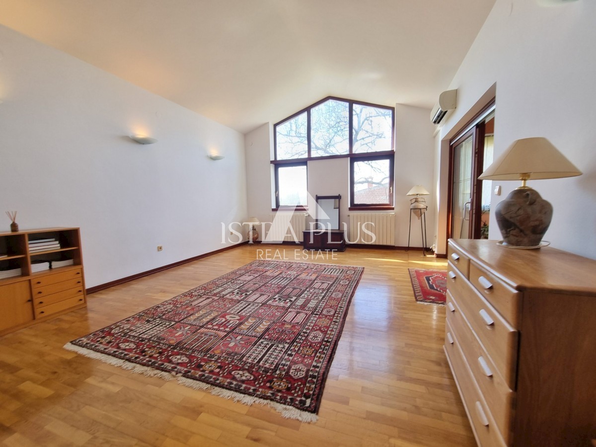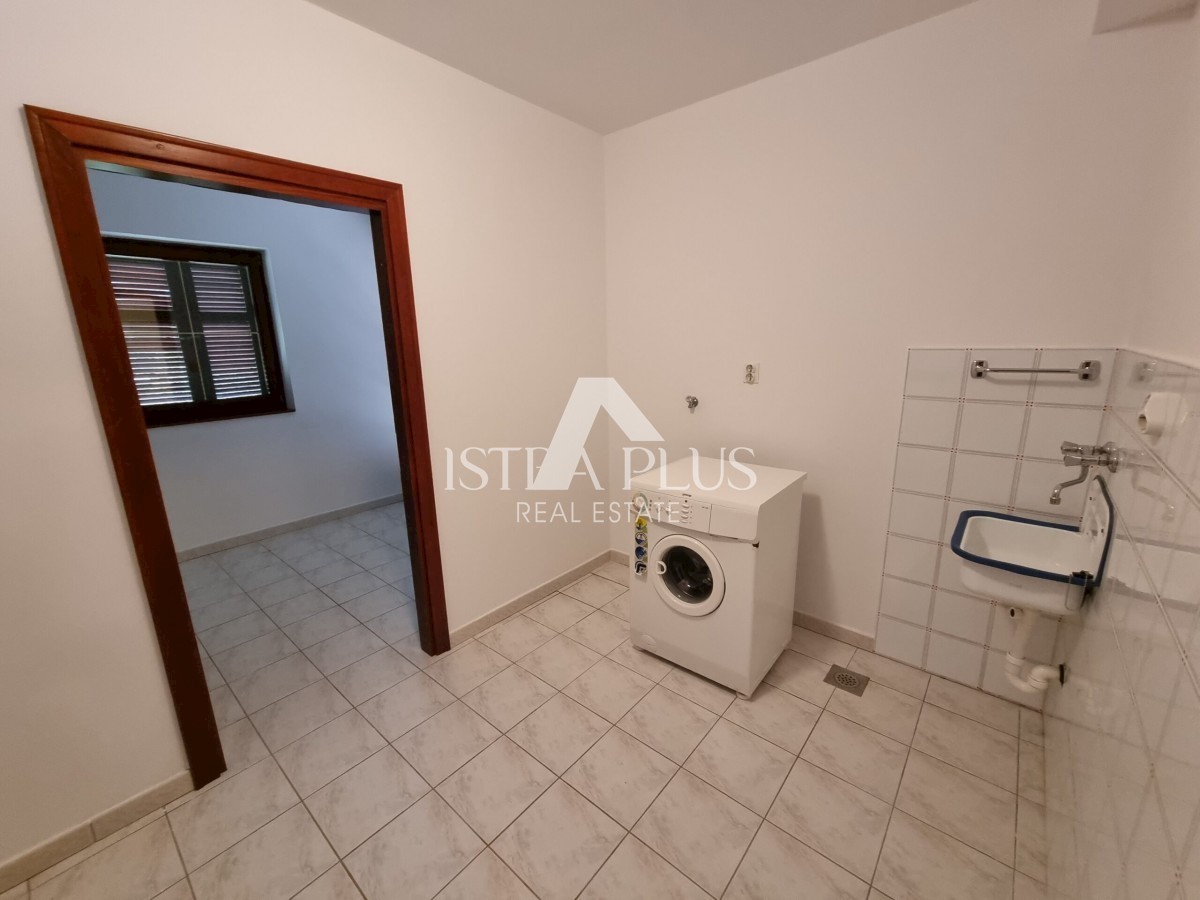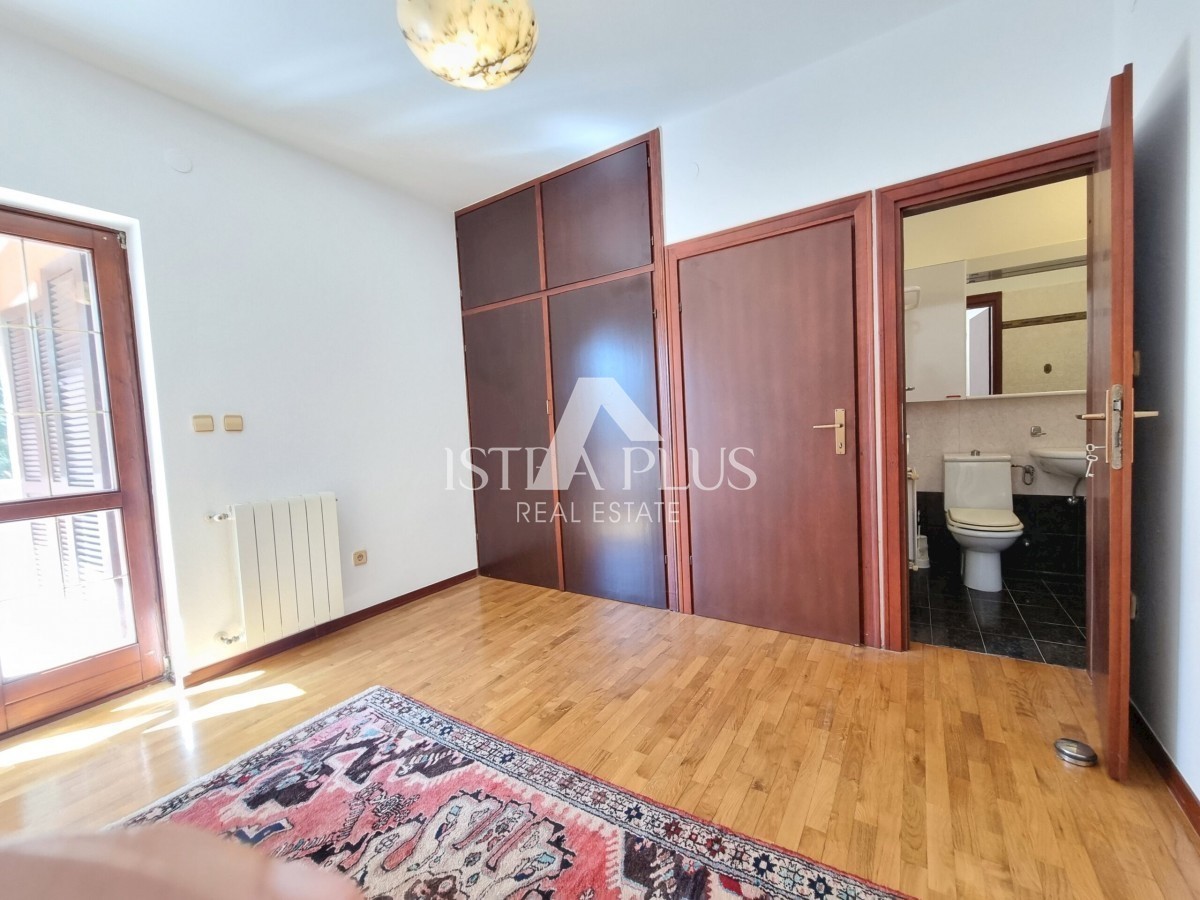 K222 Dieses Haus befindet sich im begehrtesten Teil von Poreč, nur 500 Meter vom Meer entfernt. Die Gesamtfläche des Grundstücks beträgt 679 m2. Das Haus besteht aus zwei separaten Wohnungen, die durch Innentreppen verbunden sind, sowie zwei Garagen und