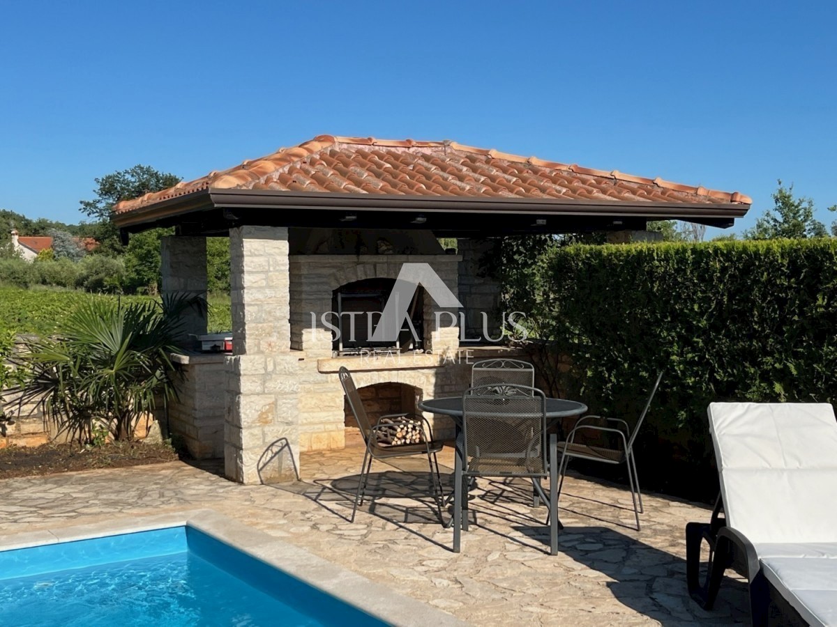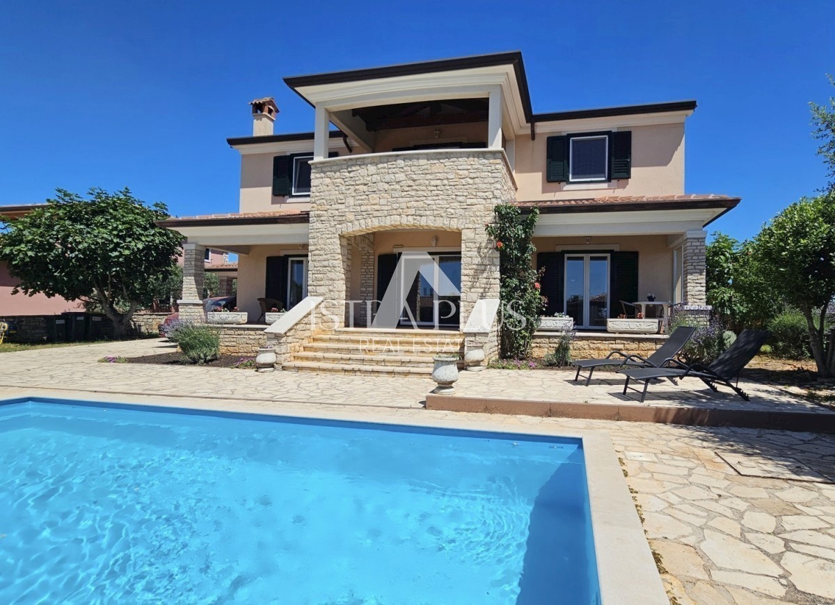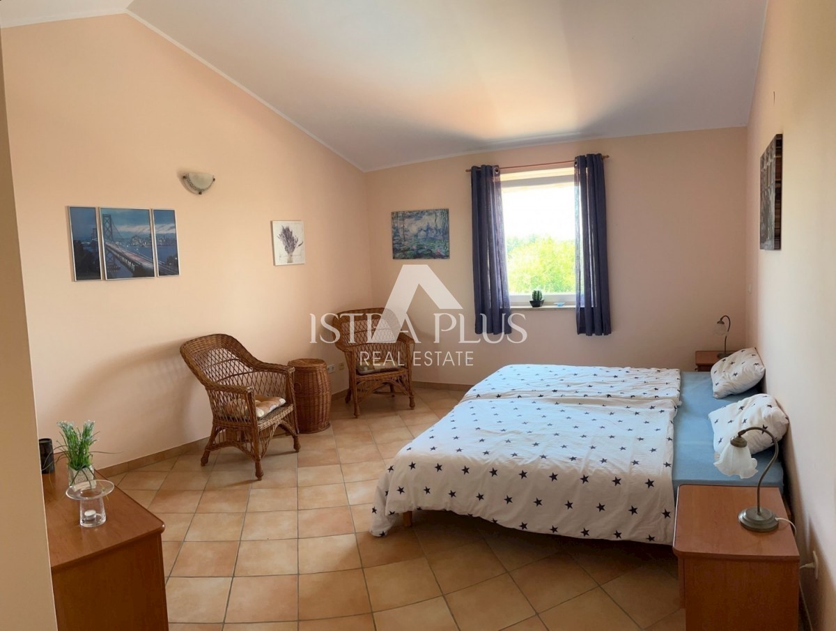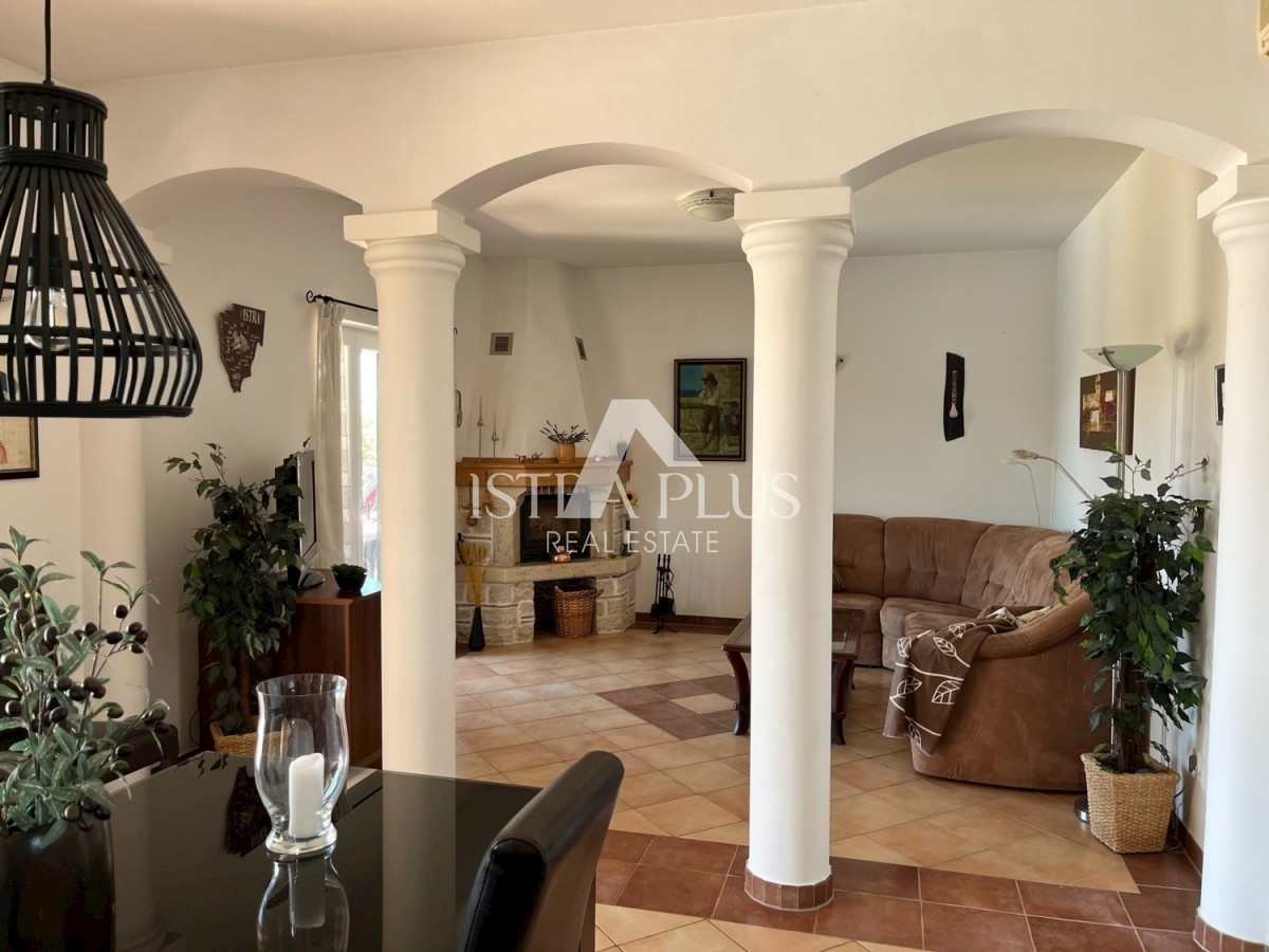K230 Ein Haus mit Schwimmbad in sehr schöner und ruhiger Lage am Dorfrand, ca. 2 km von Tara und ca. 5 km vom Meer entfernt. Das Haus erstreckt sich über zwei Etagen mit insgesamt 208 m2 Nettofläche, 235 m2 Bruttofläche. Wohnzimmer mit Küche und Esszimme
