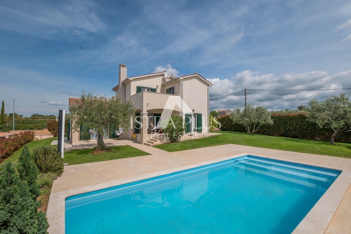 K234 Ein schönes Haus mit Swimmingpool und Blick auf die Weinberge ist ein ideales Zuhause für den Urlaub oder einen dauerhaften Aufenthalt. Es liegt in einer ruhigen Gegend, nur 14 km von Poreč und den Stränden entfernt. Beim Betreten des Hauses werden S