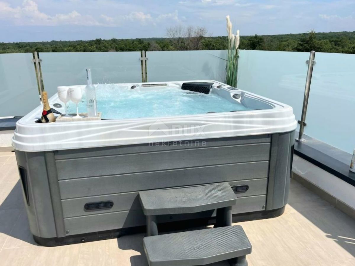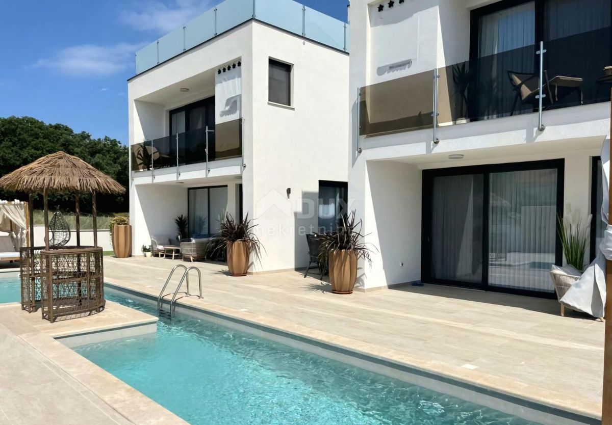 ISTRIEN, POREČ – Diese moderne Villa, die in zwei gleiche Teile geteilt ist, liegt in einer kleinen und ruhigen Siedlung in der Nähe der berühmten Stadt Poreč. Wir präsentieren stolz eine moderne und luxuriöse Villa in einer kleinen und ruhigen Siedlung