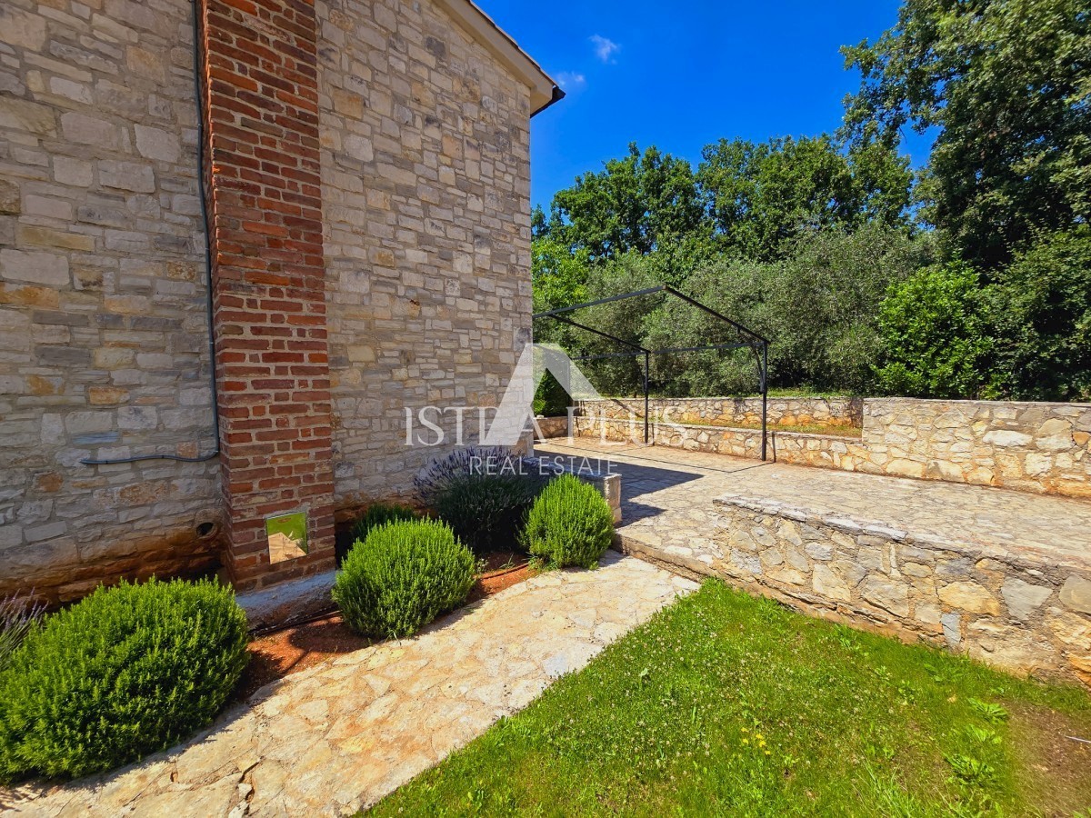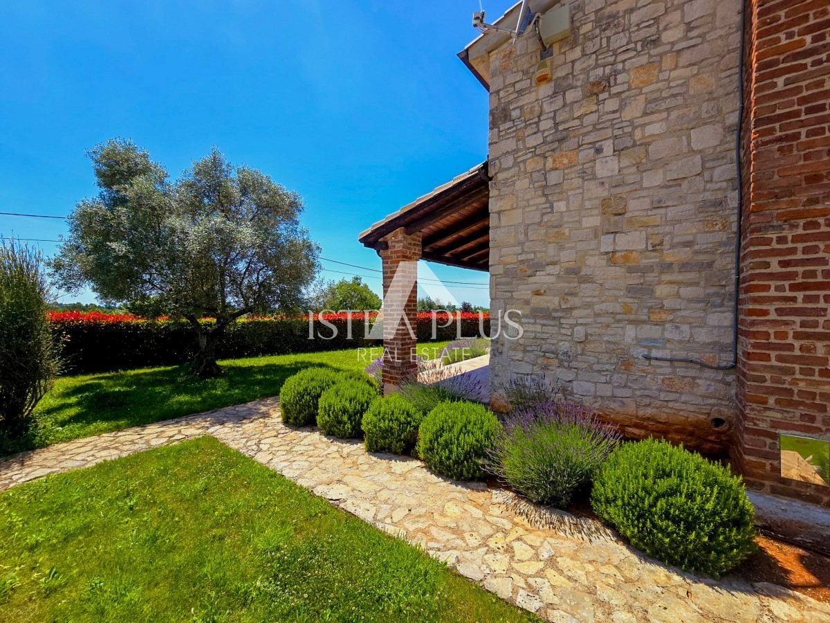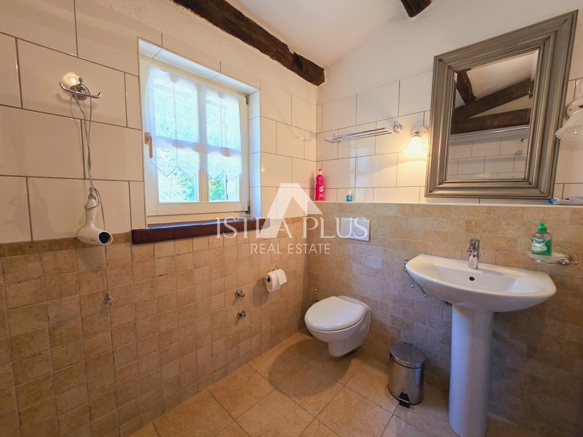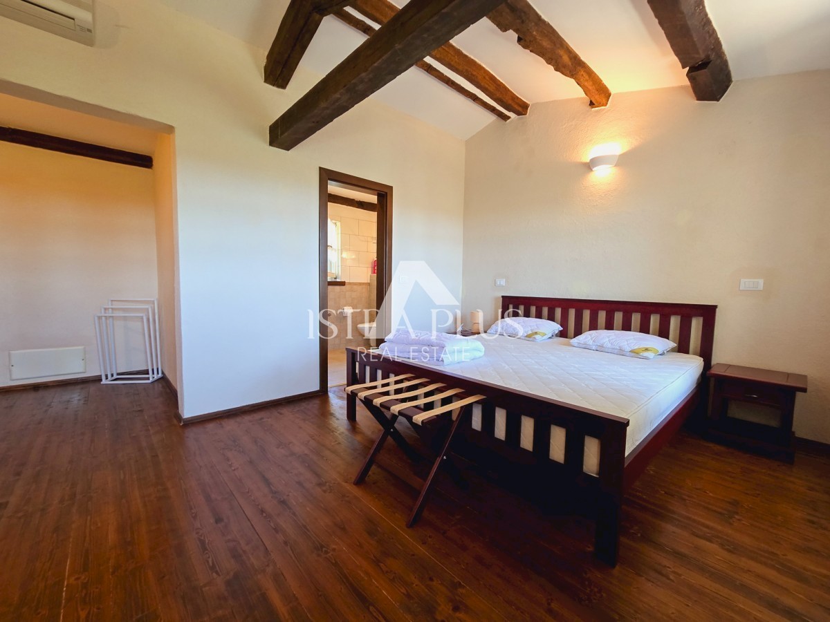 K235 Wir bieten Ihnen ein Steinhaus in der Nähe von Poreč zum Verkauf an. Die Villa bietet eine Wohnfläche von 172,30 m2 verteilt auf zwei Etagen: Erdgeschoss und 1. Etage. Das Erdgeschoss wird von einem offenen Raum dominiert, in dem sich ein rustikales