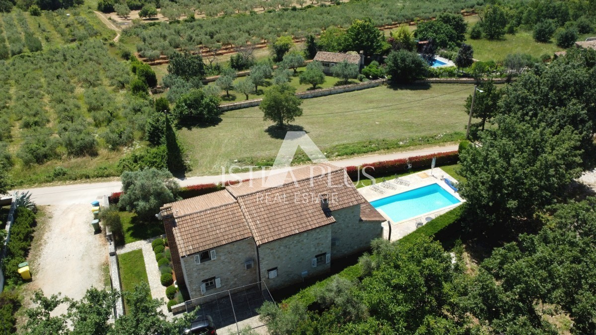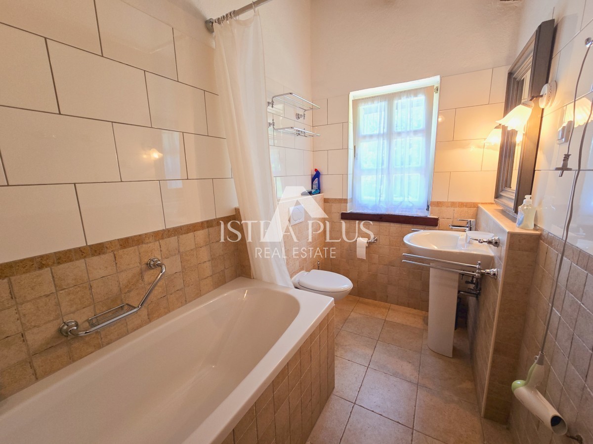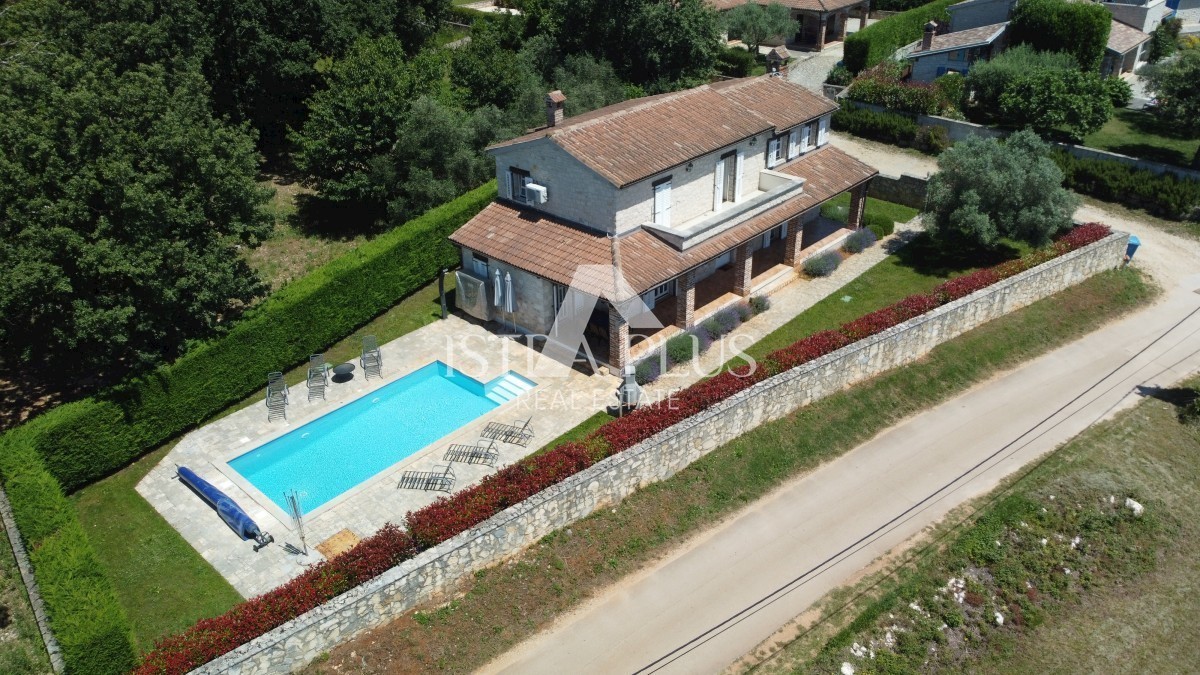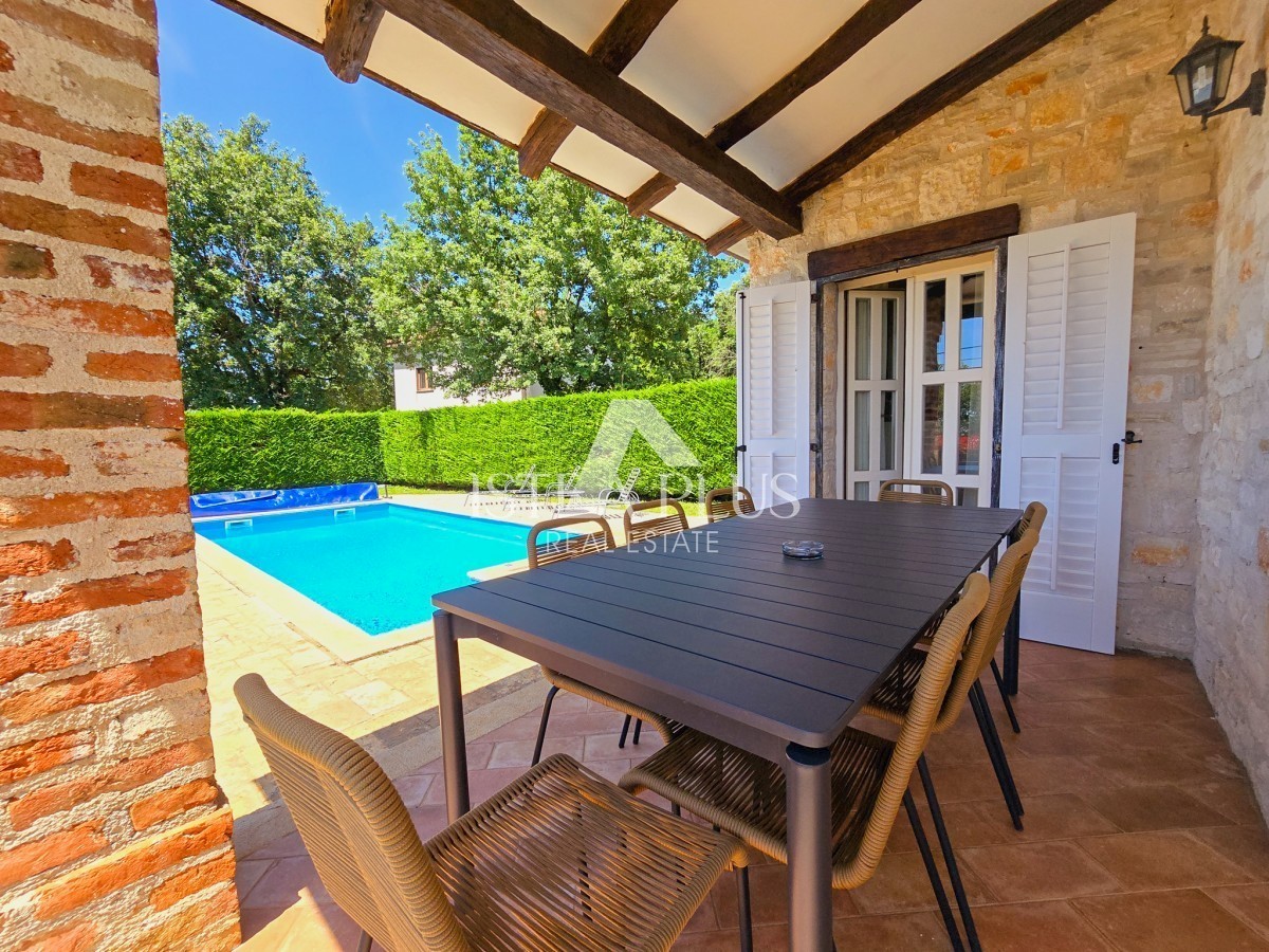 K235 Wir bieten Ihnen ein Steinhaus in der Nähe von Poreč zum Verkauf an. Die Villa bietet eine Wohnfläche von 172,30 m2 verteilt auf zwei Etagen: Erdgeschoss und 1. Etage. Das Erdgeschoss wird von einem offenen Raum dominiert, in dem sich ein rustikales