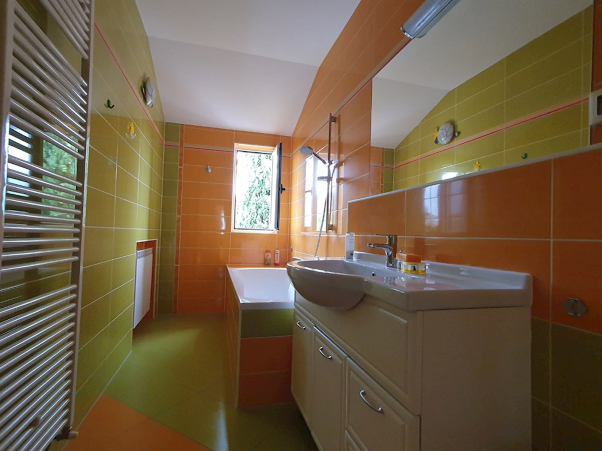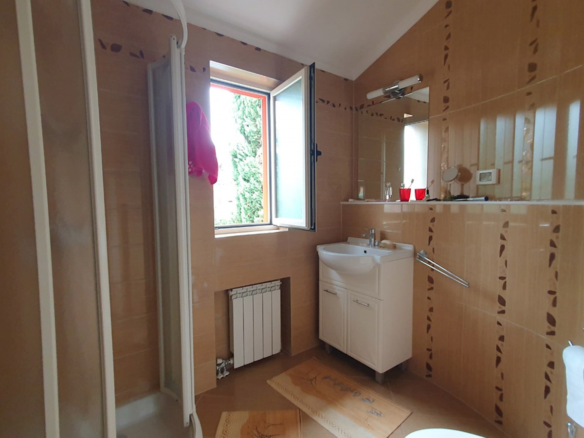 An der Ecke von zwei ruhigen Straßen eines Vororts von Poreč, der in der Nähe des Meeres (500 m) liegt und etwa 2,5 km von der Stadt entfernt ist, befindet sich dieses freistehende Haus aus dem Jahr 1992. Es erstreckt sich über zwei Etagen mit einer Gesam