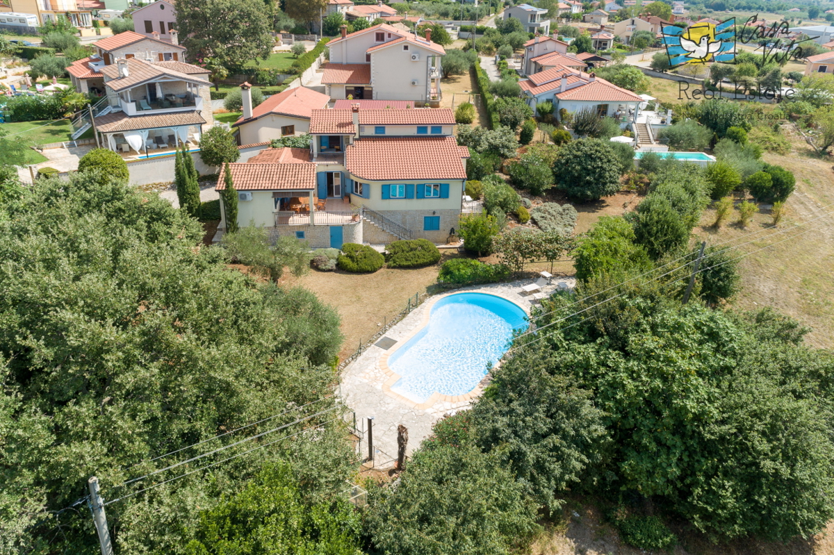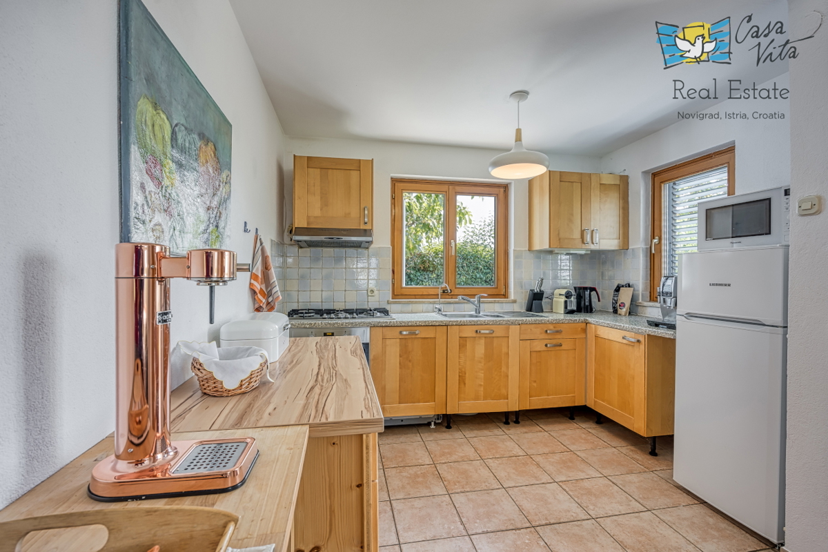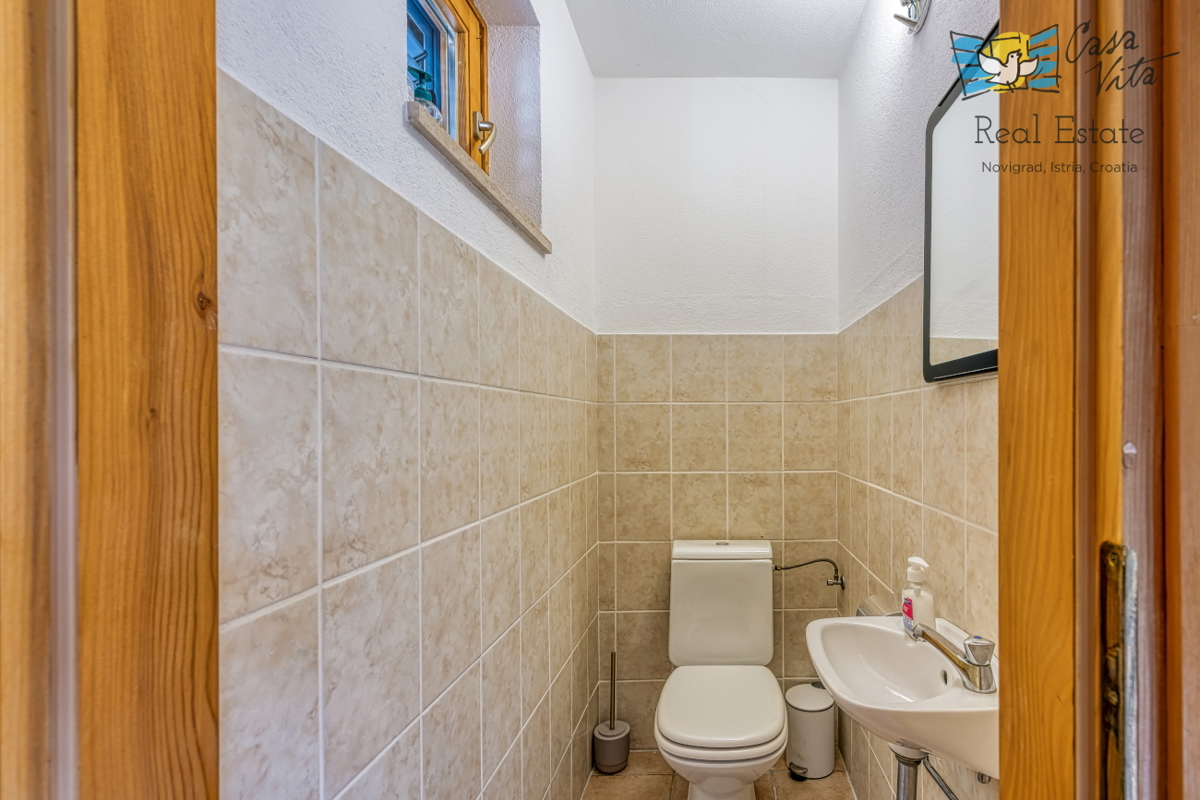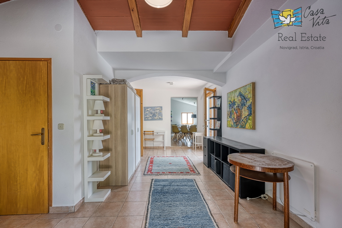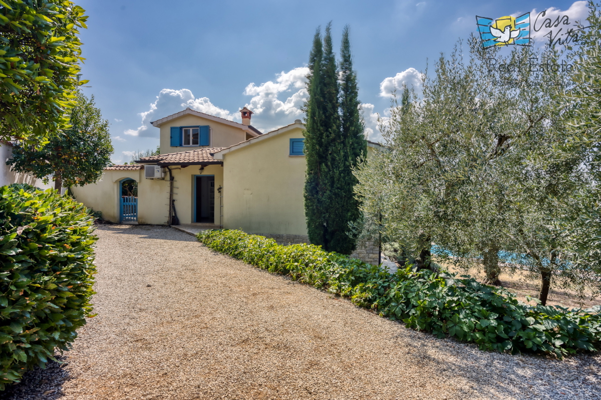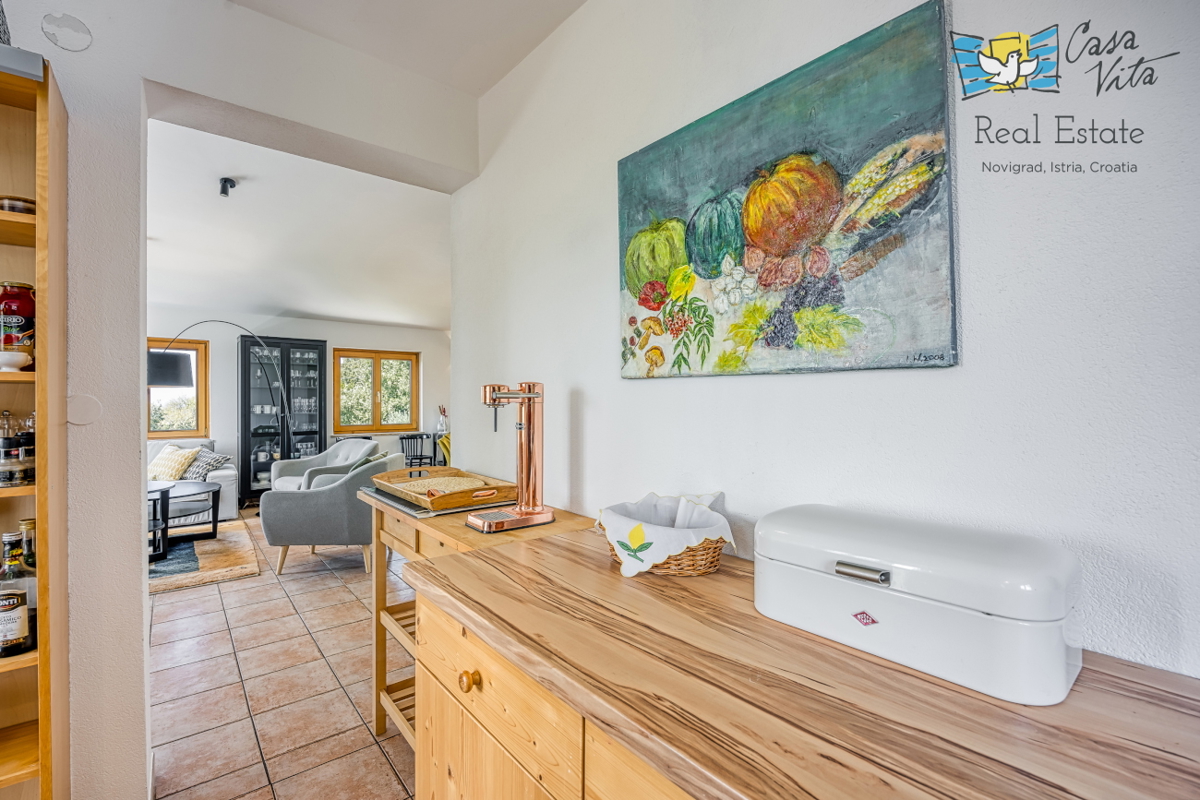 Istrien, Poreč Ein charmantes Einfamilienhaus zum Verkauf, gelegen auf dem Hügel einer kleinen istrischen Stadt in Kaštelir, nicht weit vom Stadtzentrum (ca. 500 m) und dem Meer (ca. 7 km) entfernt. Seine Spezialität ist Privatsphäre! Die Gesamtfläche d
