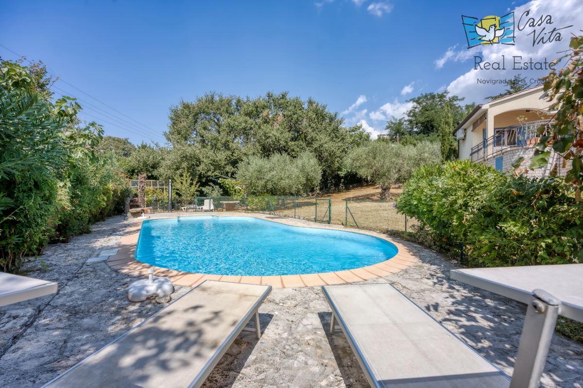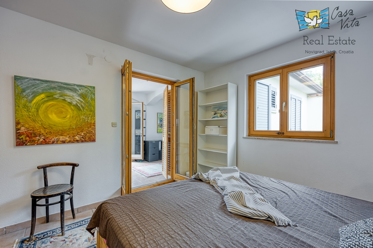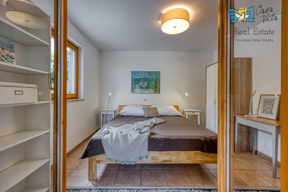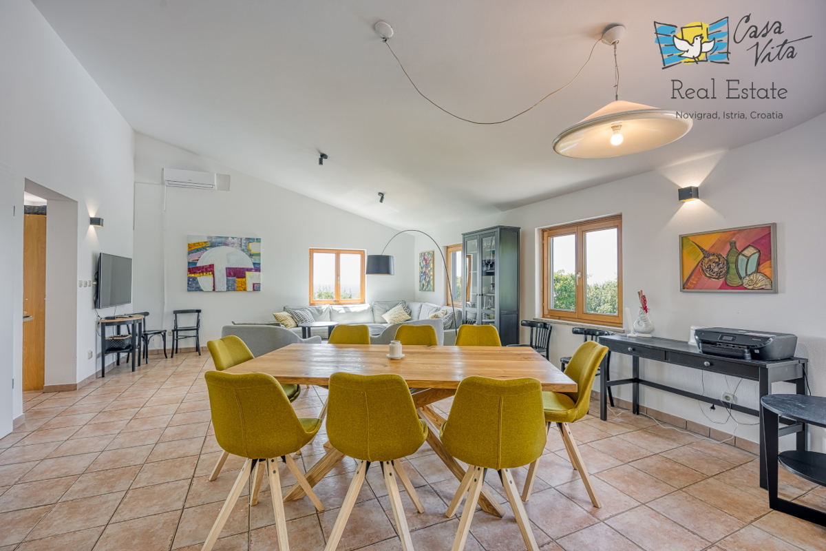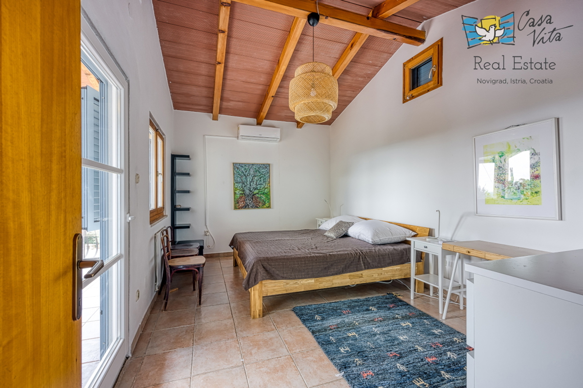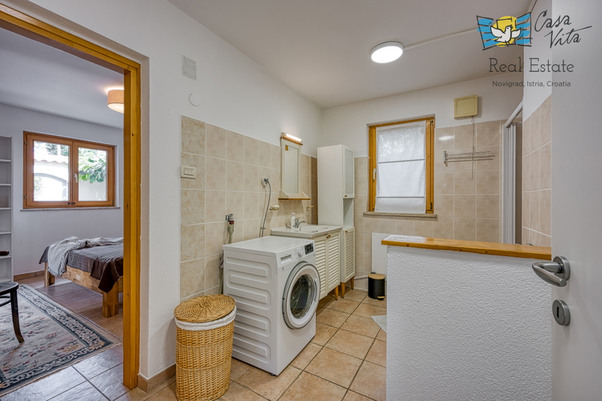 Istrien, Poreč Ein charmantes Einfamilienhaus zum Verkauf, gelegen auf dem Hügel einer kleinen istrischen Stadt in Kaštelir, nicht weit vom Stadtzentrum (ca. 500 m) und dem Meer (ca. 7 km) entfernt. Seine Spezialität ist Privatsphäre! Die Gesamtfläche d