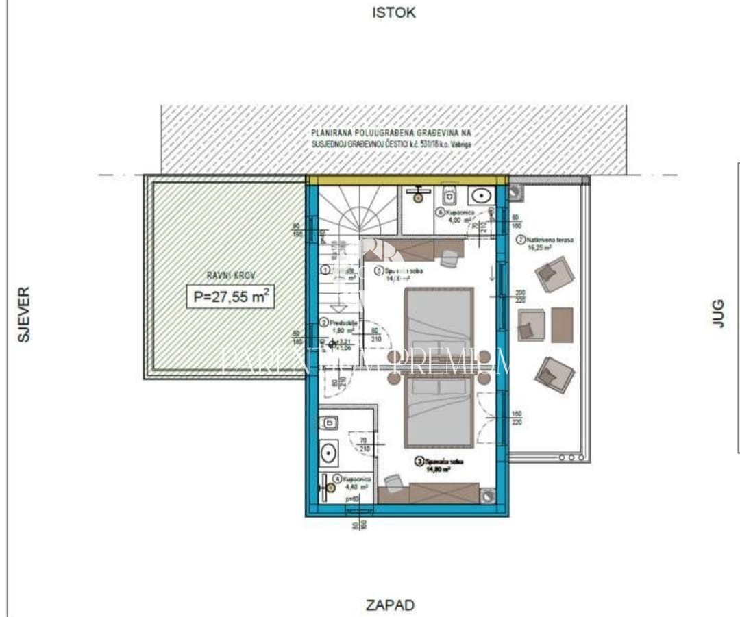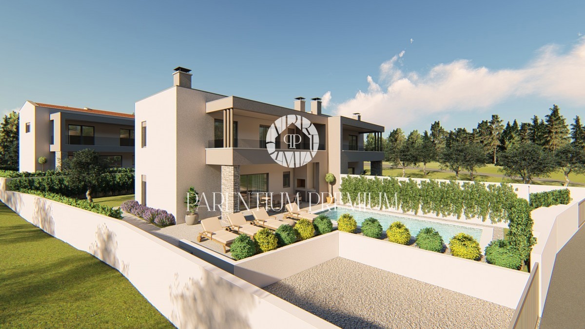 Istrien, Poreč - Umgebung, 800 m vom Meer entfernt Diese moderne Villa mit einer Gesamtfläche von 163m2 befindet sich in wunderschöner Lage in einem Touristenort mit allen Annehmlichkeiten Die Villa besteht aus 2 Etagen. Im Erdgeschoss haben wir eine k