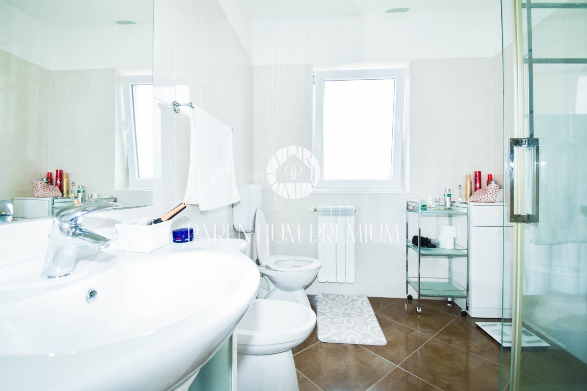 Istrien, Poreč - Umgebung Zum Verkauf steht ein hochwertiges und ausgestattetes Reihenhaus mit Garten in attraktiver und ruhiger Lage unweit des Meeres, mit einer Gesamtfläche von 105,75 m2. Das Haus ist in 2 Etagen aufgeteilt. Im Erdgeschoss befindet