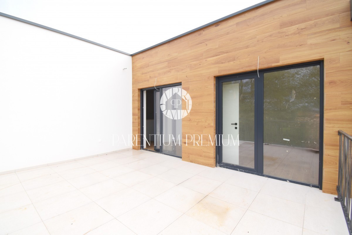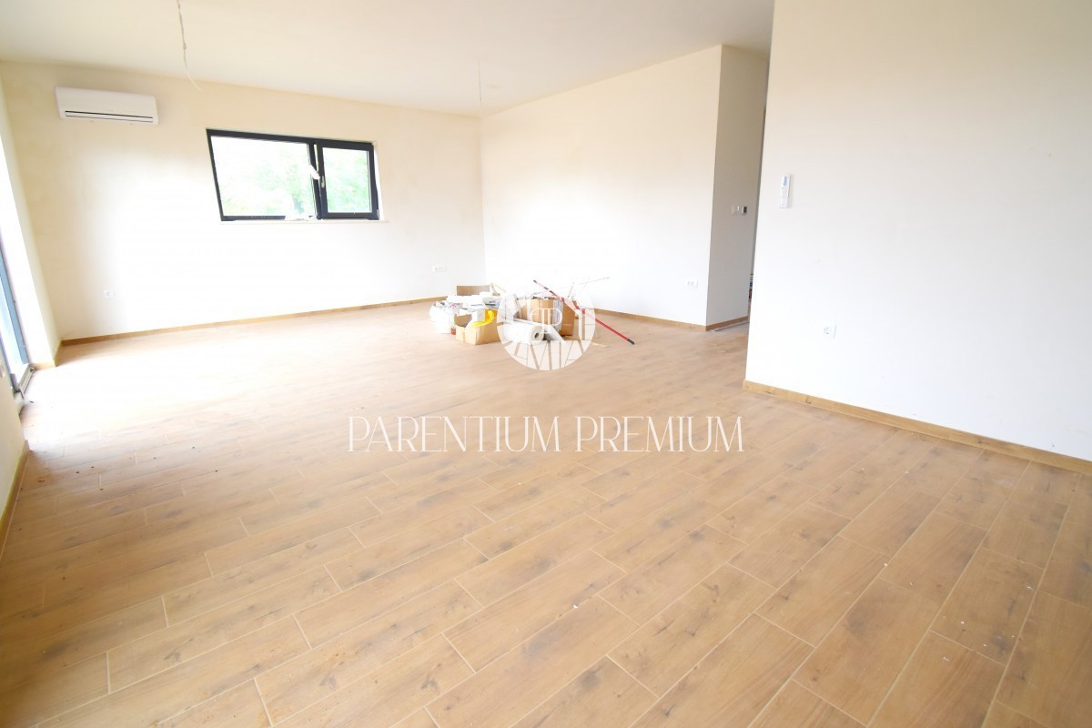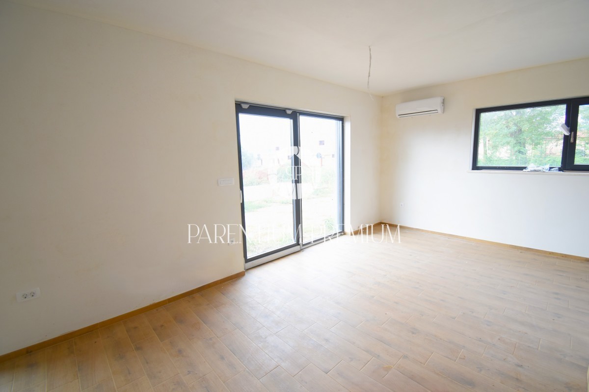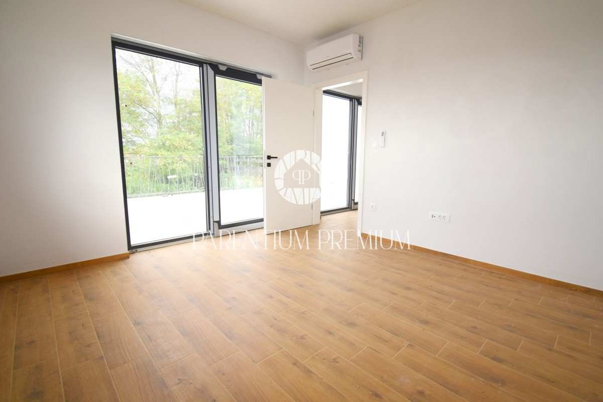 Istrien, Raum Poreč Zum Verkauf steht ein neu gebautes modernes Doppelhaus in der Nähe von Poreč, das sich auf einem Grundstück von 670 m² befindet und sich über Erdgeschoss und erste Etage erstreckt. Im Erdgeschoss gibt es eine Eingangshalle, ein Schlaf