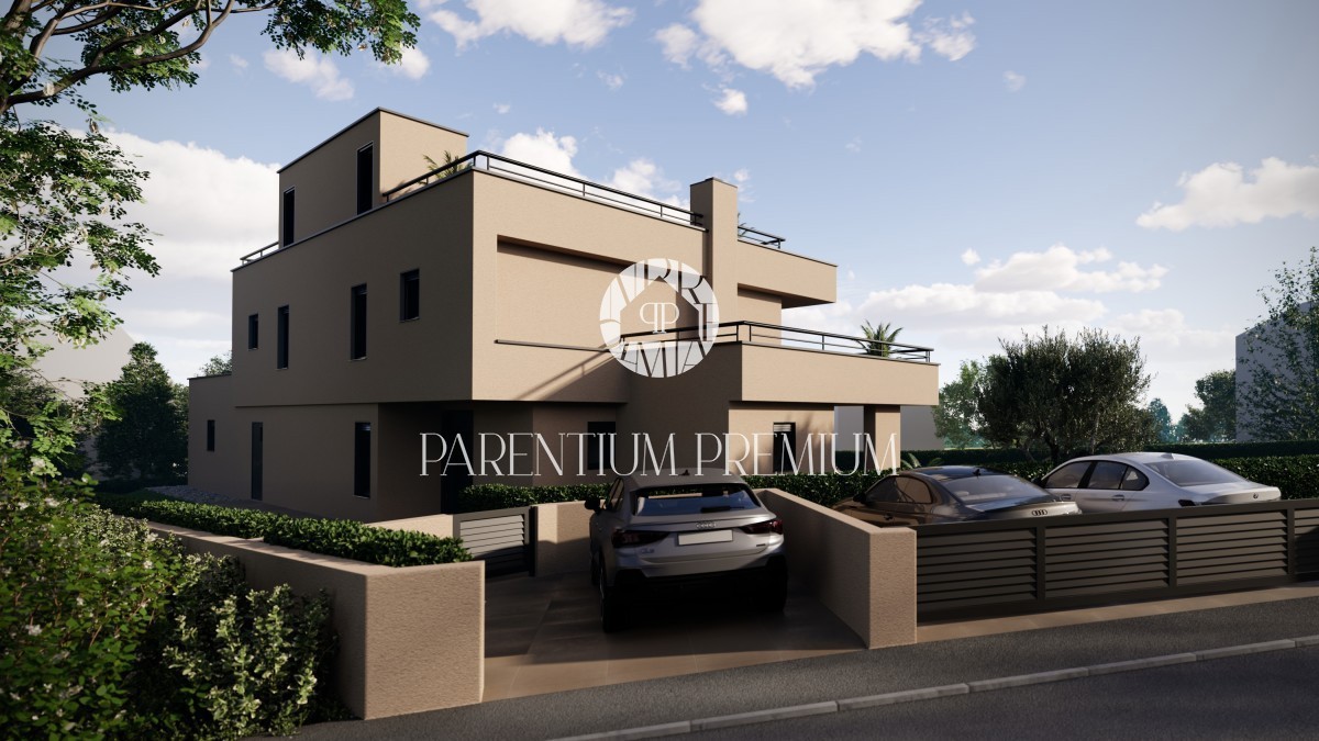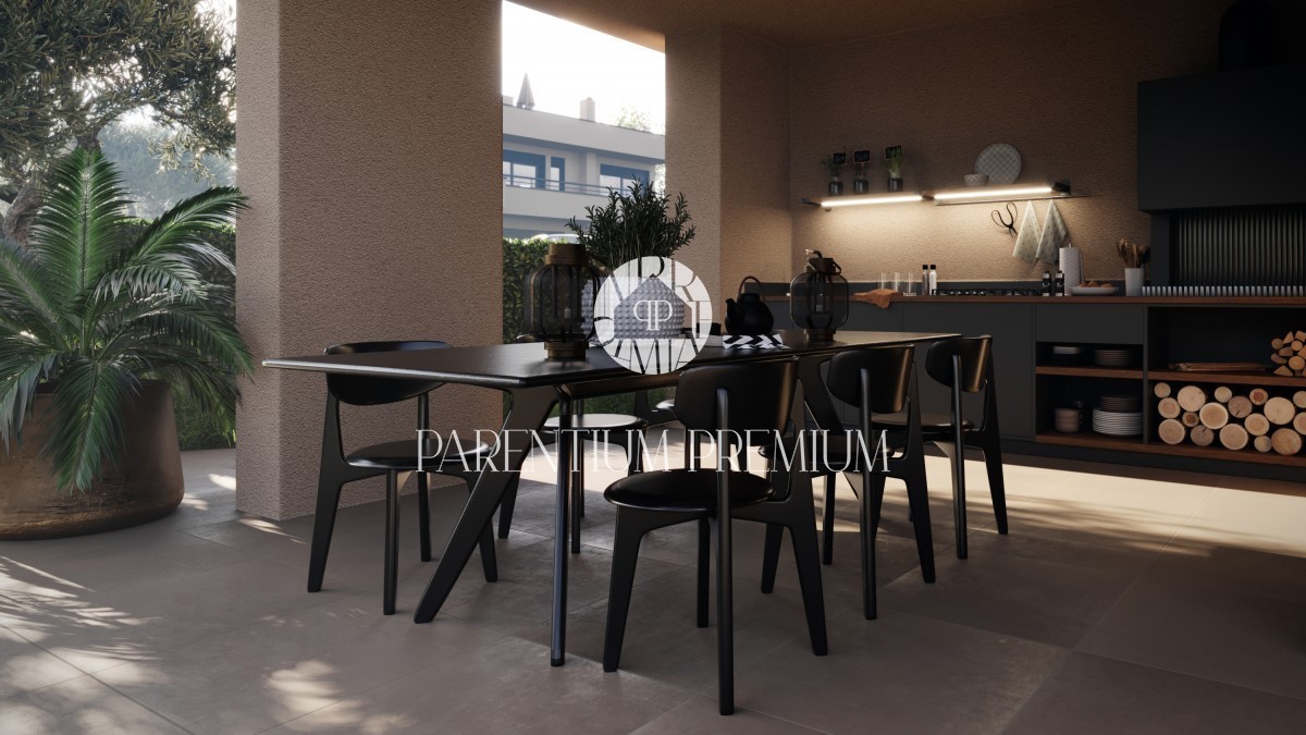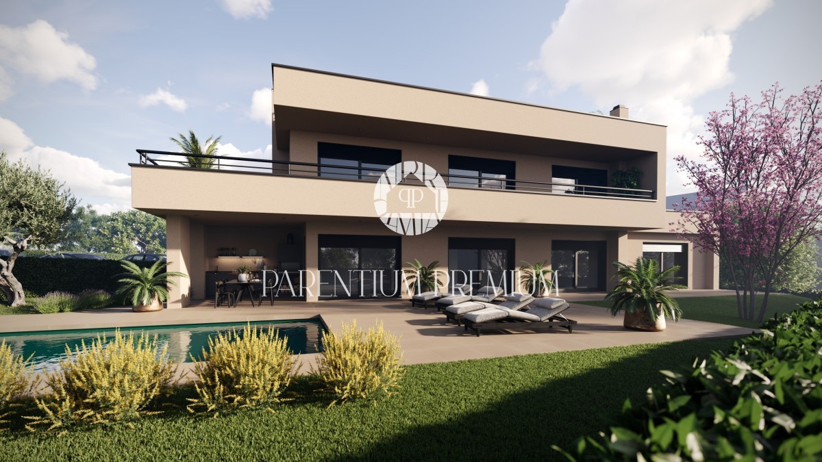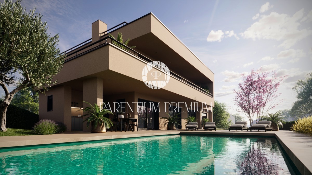 Istrien, Poreč - Umgebung Diese imposante moderne Villa mit Pool von einer Gesamtfläche von 263,6 m² und einer großen Dachterrasse von 97,1 m² befindet sich an einem Ort mit allen Annehmlichkeiten. Das Haus ist in 3 Etagen unterteilt. Im Erdgeschoss bef