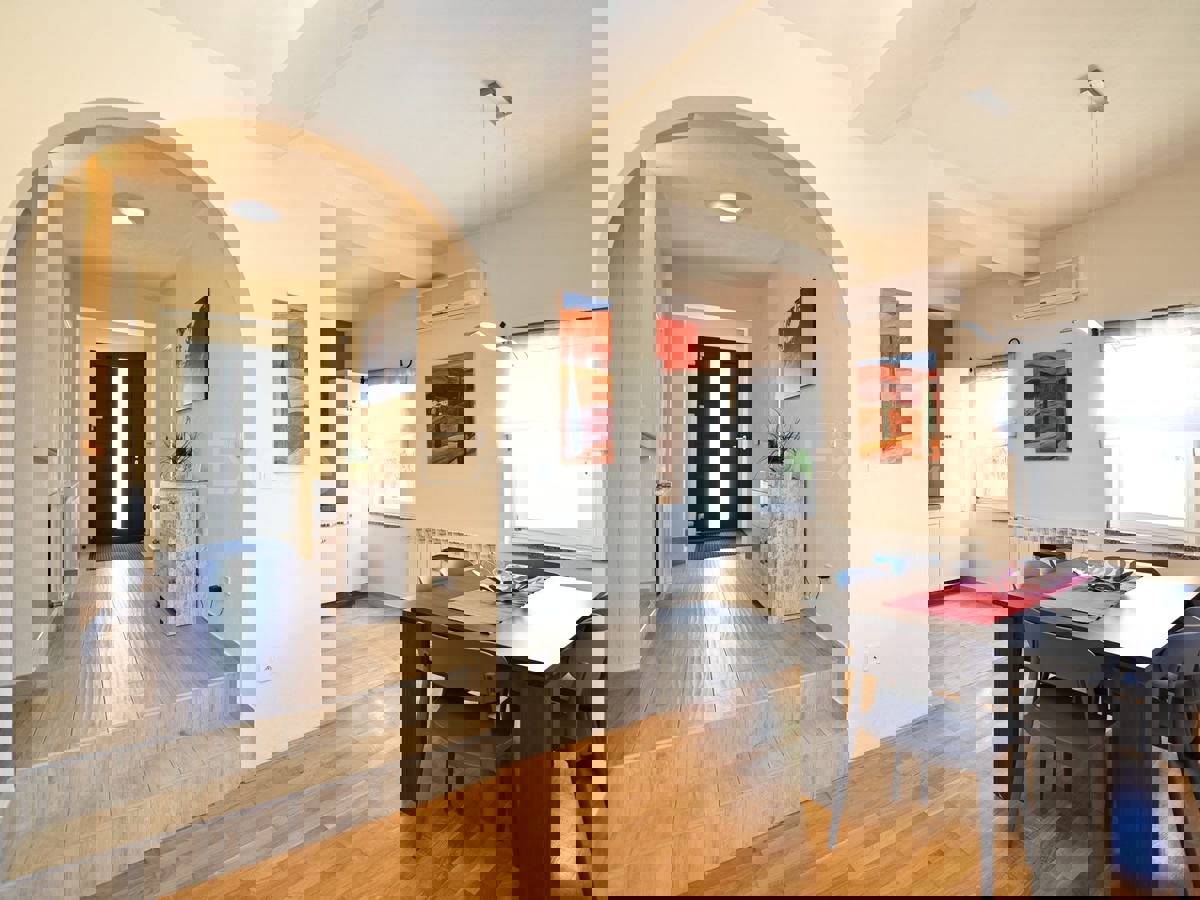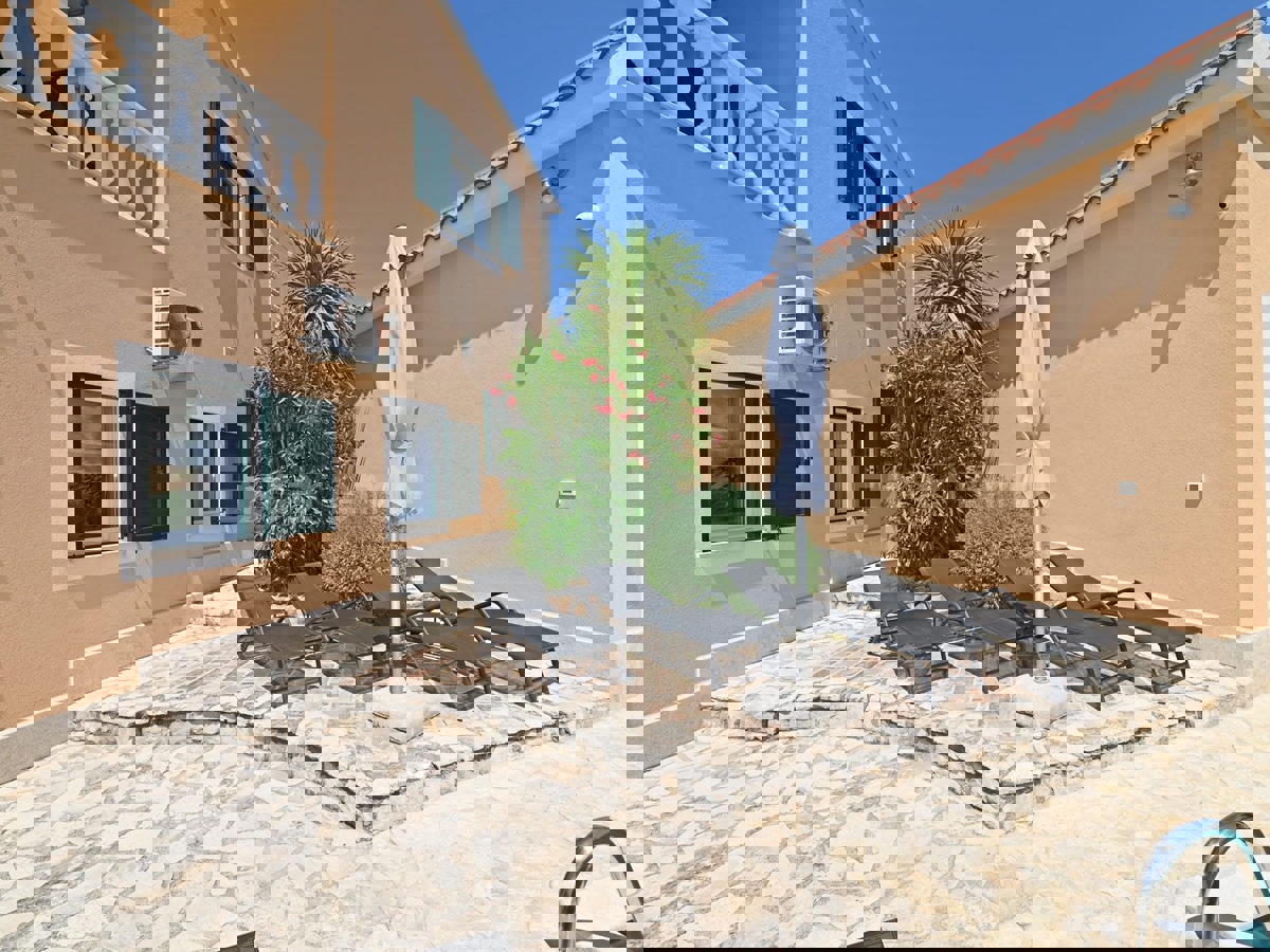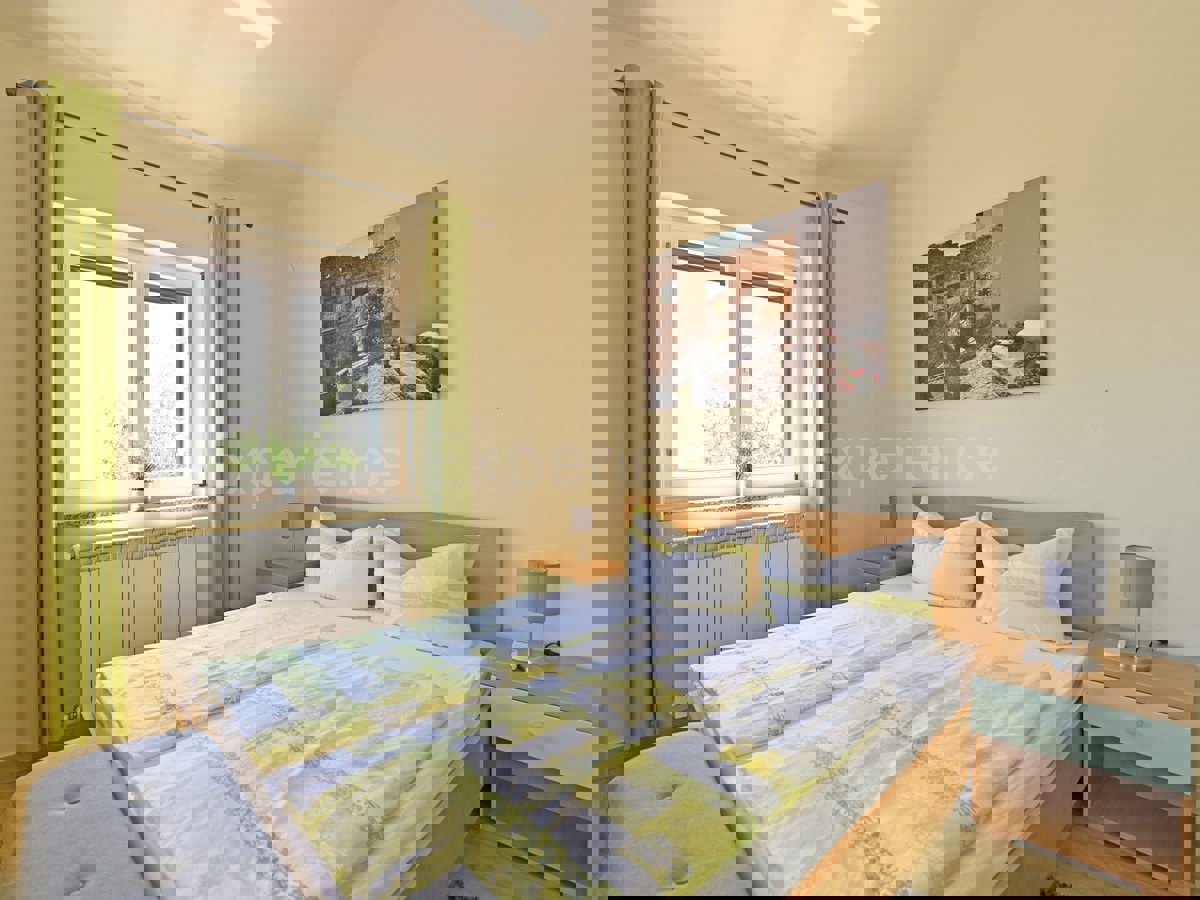 In der Nähe von Poreč – ca. 10 km vom Meer entfernt, steht in ruhiger Umgebung ein Doppelhaus mit einer Gesamtfläche von 105 m² zum Verkauf. Der besondere Vorteil dieser Immobilie ist ihre Lage. Das Haus befindet sich auf einem erhöhten Grundstück mit BLI