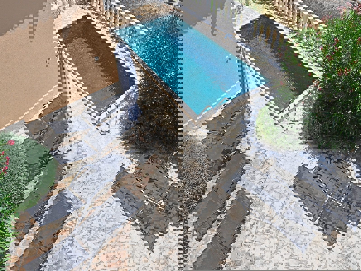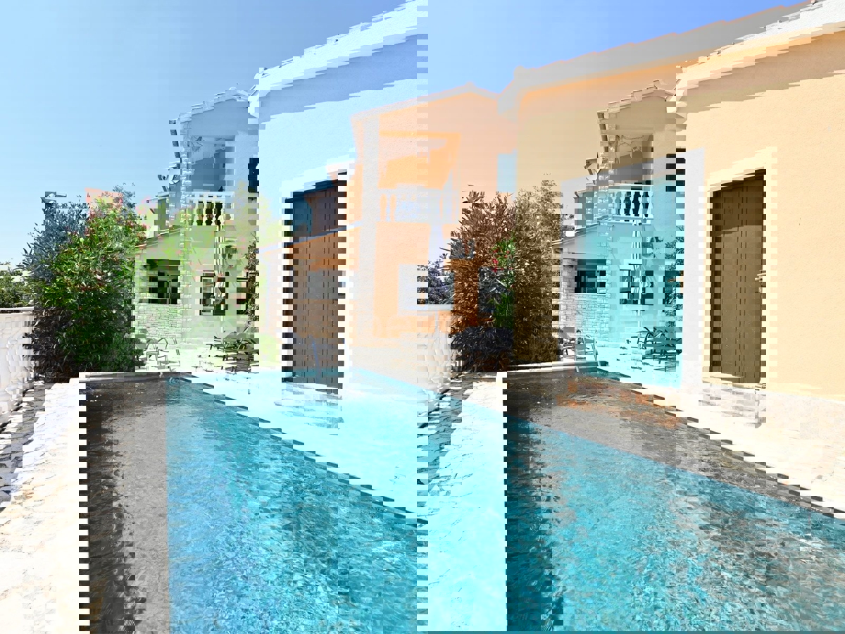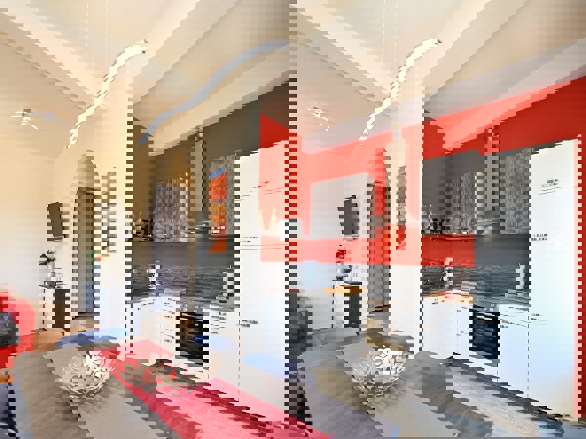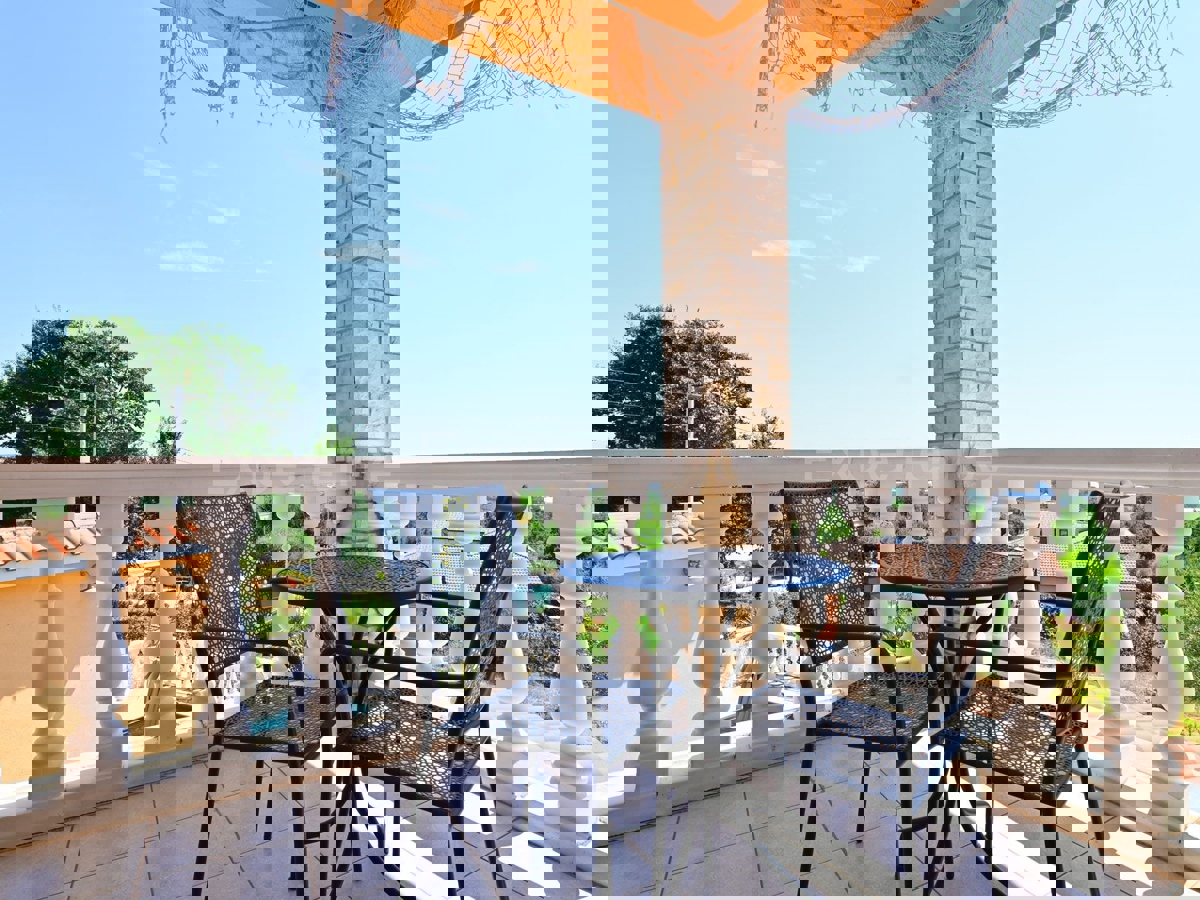 In der Nähe von Poreč – ca. 10 km vom Meer entfernt, steht in ruhiger Umgebung ein Doppelhaus mit einer Gesamtfläche von 105 m² zum Verkauf. Der besondere Vorteil dieser Immobilie ist ihre Lage. Das Haus befindet sich auf einem erhöhten Grundstück mit BLI