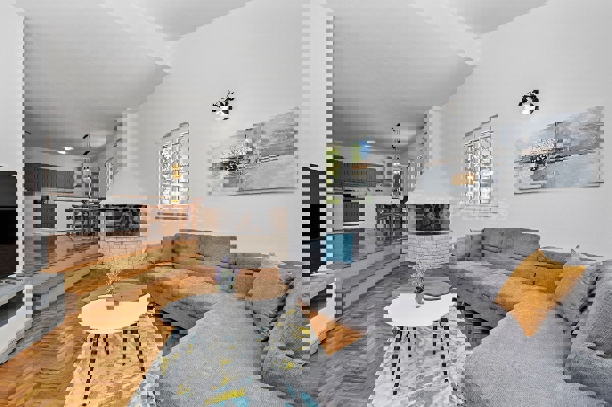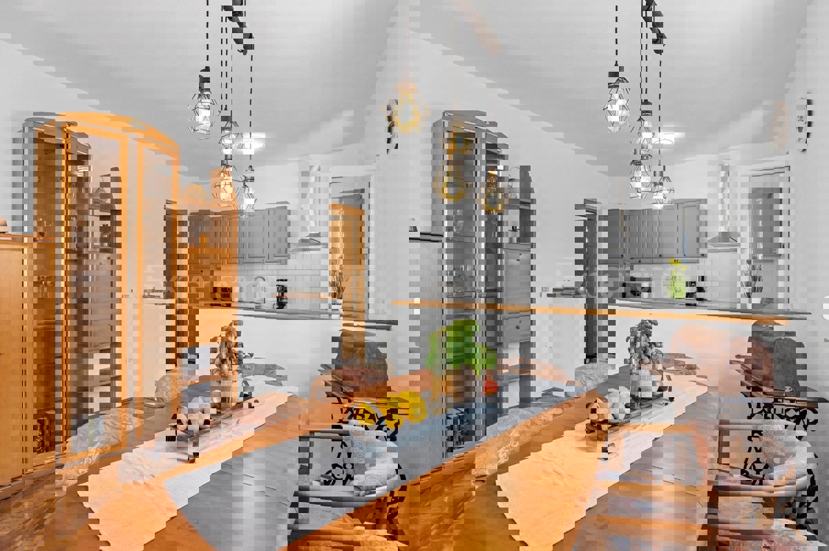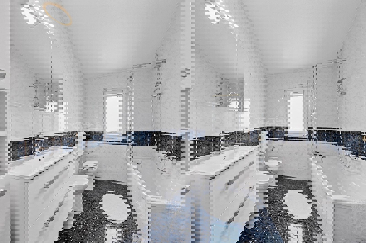 In der Nähe von Poreč, ca. 5 km vom Stadtzentrum entfernt, steht eine Doppelhaushälfte mit einer Gesamtfläche von 157,22 m² zum Verkauf. Dieses Haus liegt in einer ruhigen Wohngegend und bietet Komfort und Privatsphäre. Es besteht aus zwei Etagen. Hausa