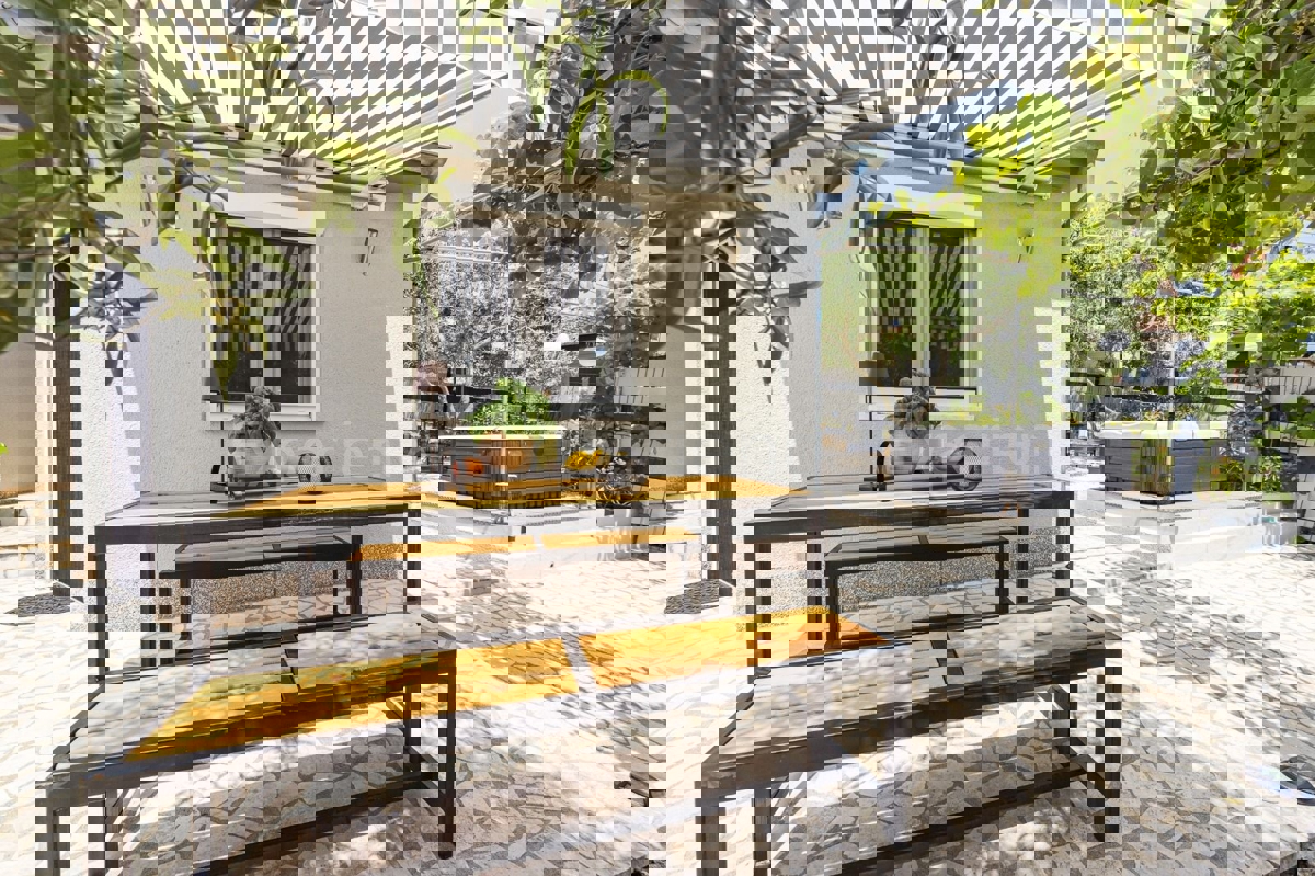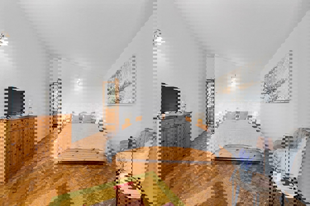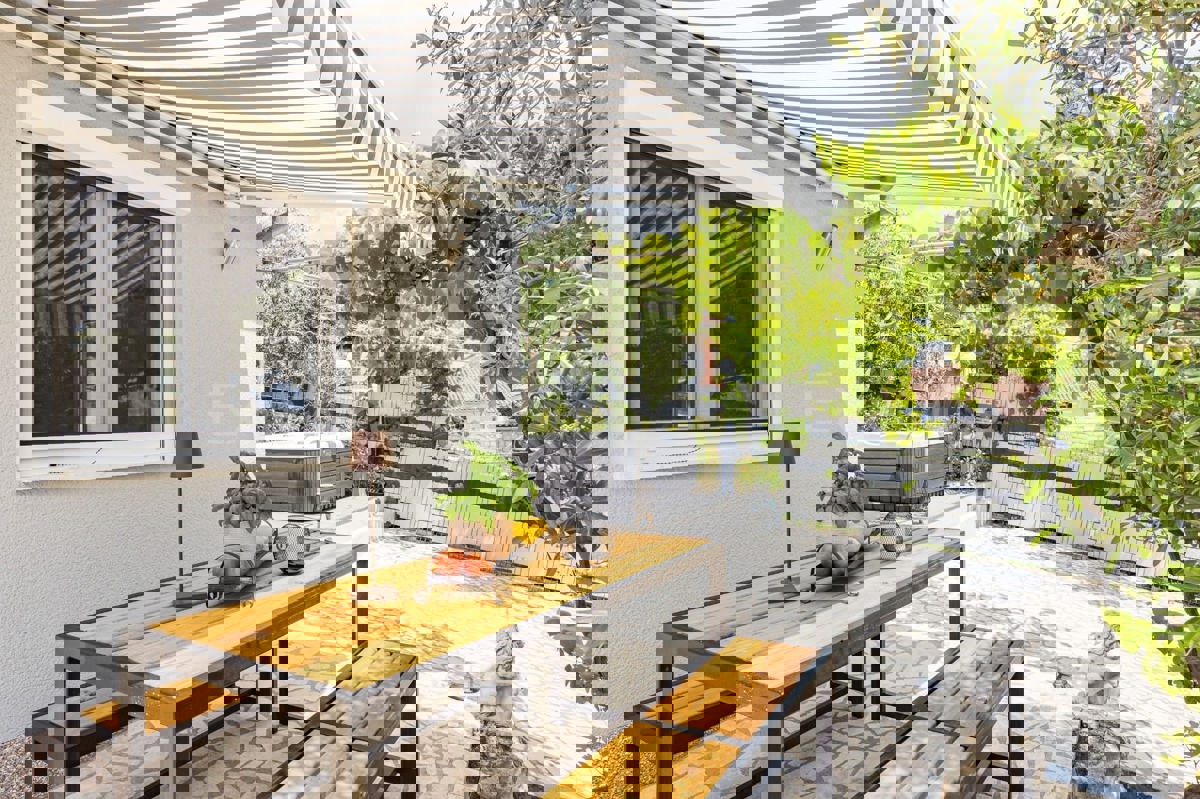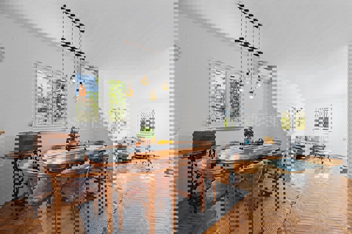 In der Nähe von Poreč, ca. 5 km vom Stadtzentrum entfernt, steht eine Doppelhaushälfte mit einer Gesamtfläche von 157,22 m² zum Verkauf. Dieses Haus liegt in einer ruhigen Wohngegend und bietet Komfort und Privatsphäre. Es besteht aus zwei Etagen. Hausa