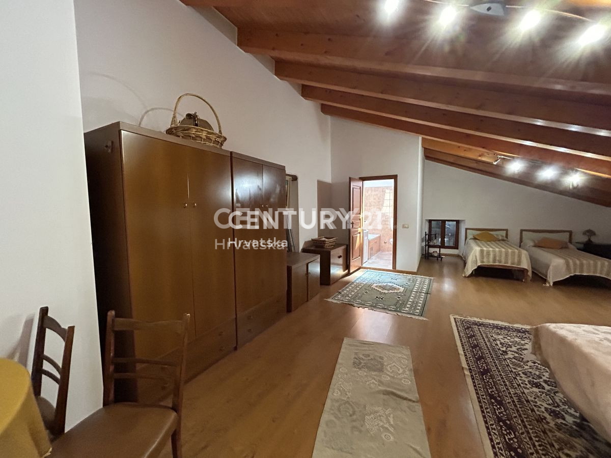 POREČ, UMGEBUNG, RENOVIERTES DOPPELSTEINHAUS Wir verkaufen ein Doppelhaus aus Stein in ausgezeichneter Lage mit einer Gesamtfläche von 192 m2, bestehend aus zwei separaten Wohnungen und einem großzügigen Garten von 790 m2, nur 6 km von der Stadt Poreč un