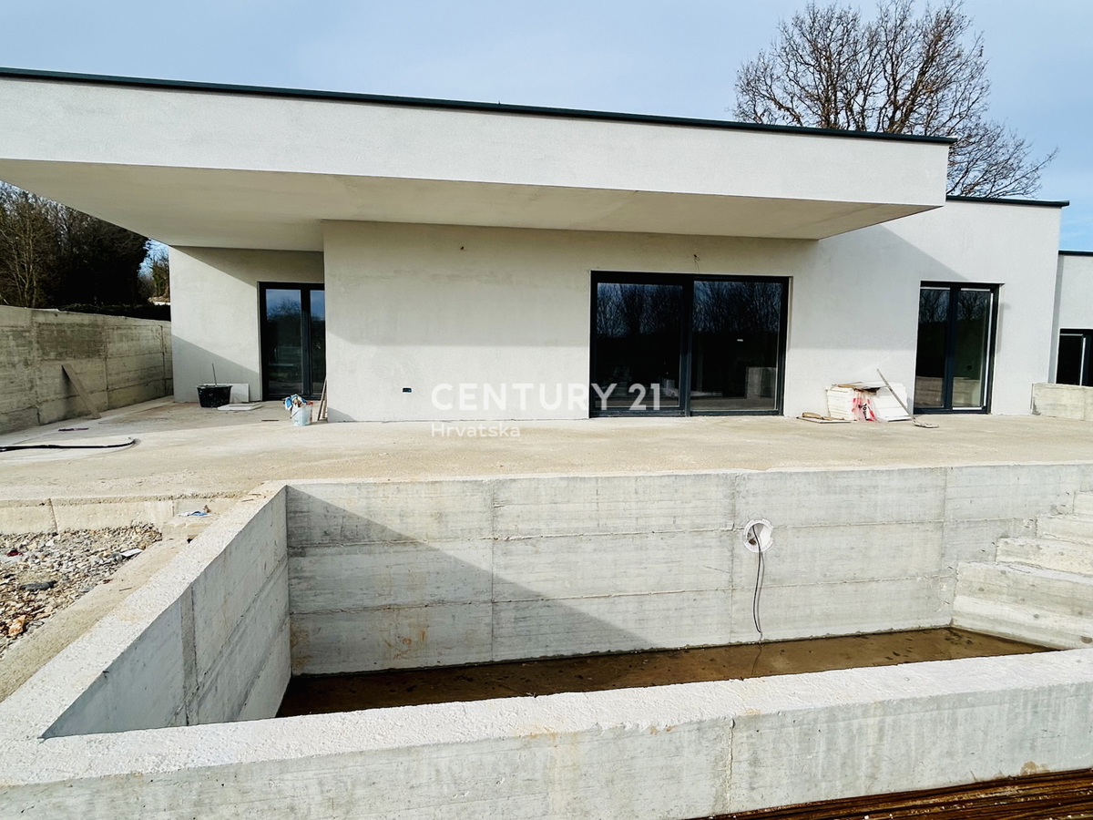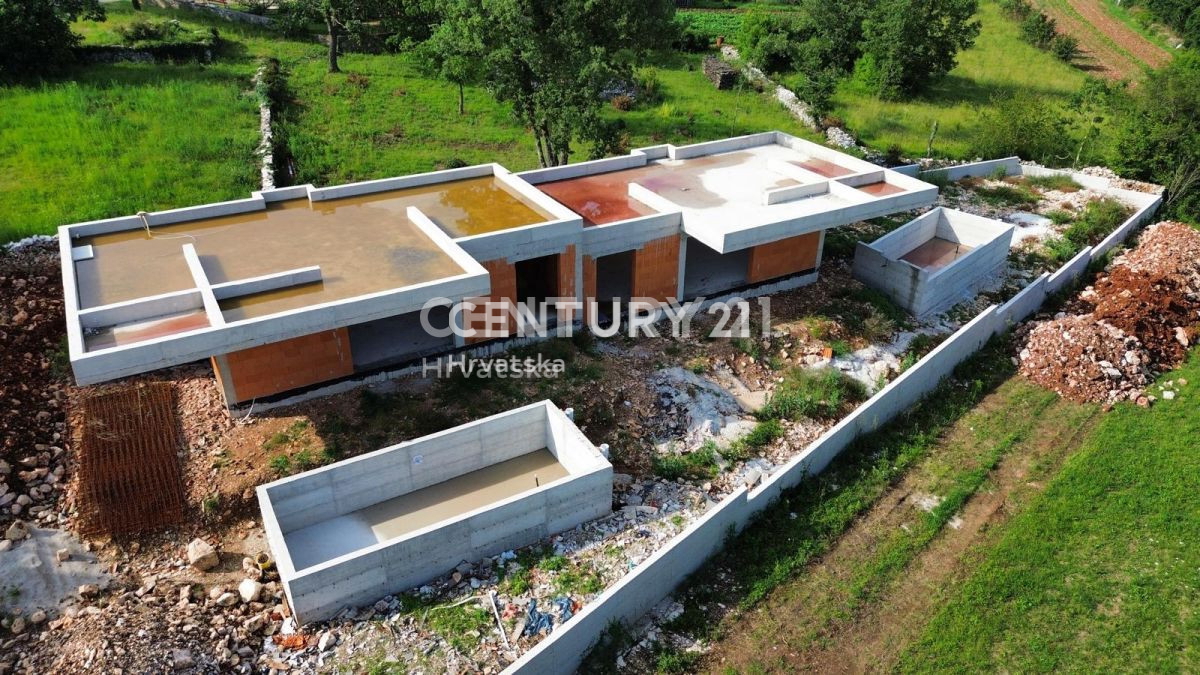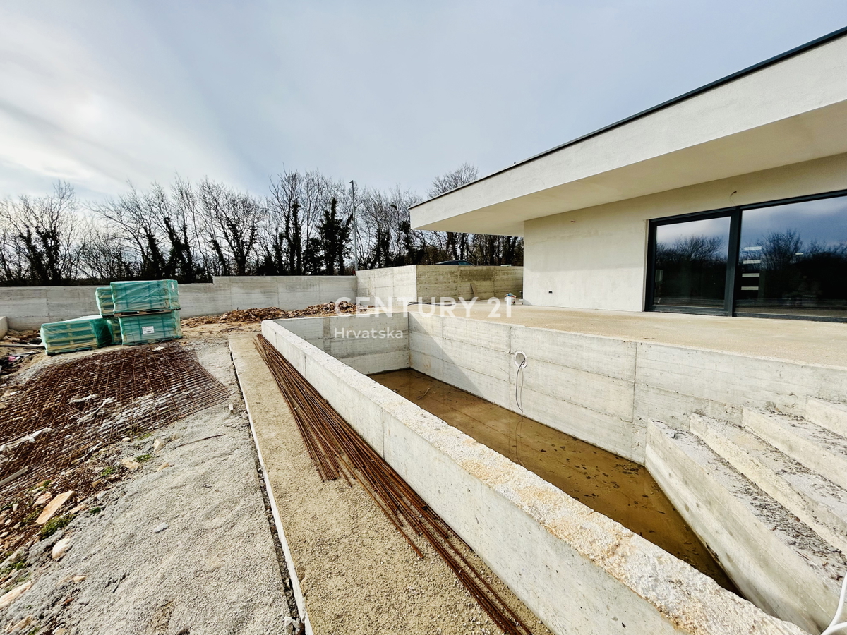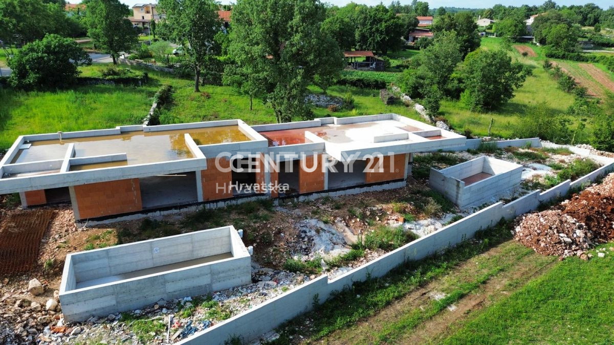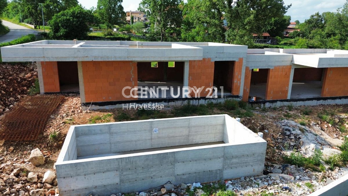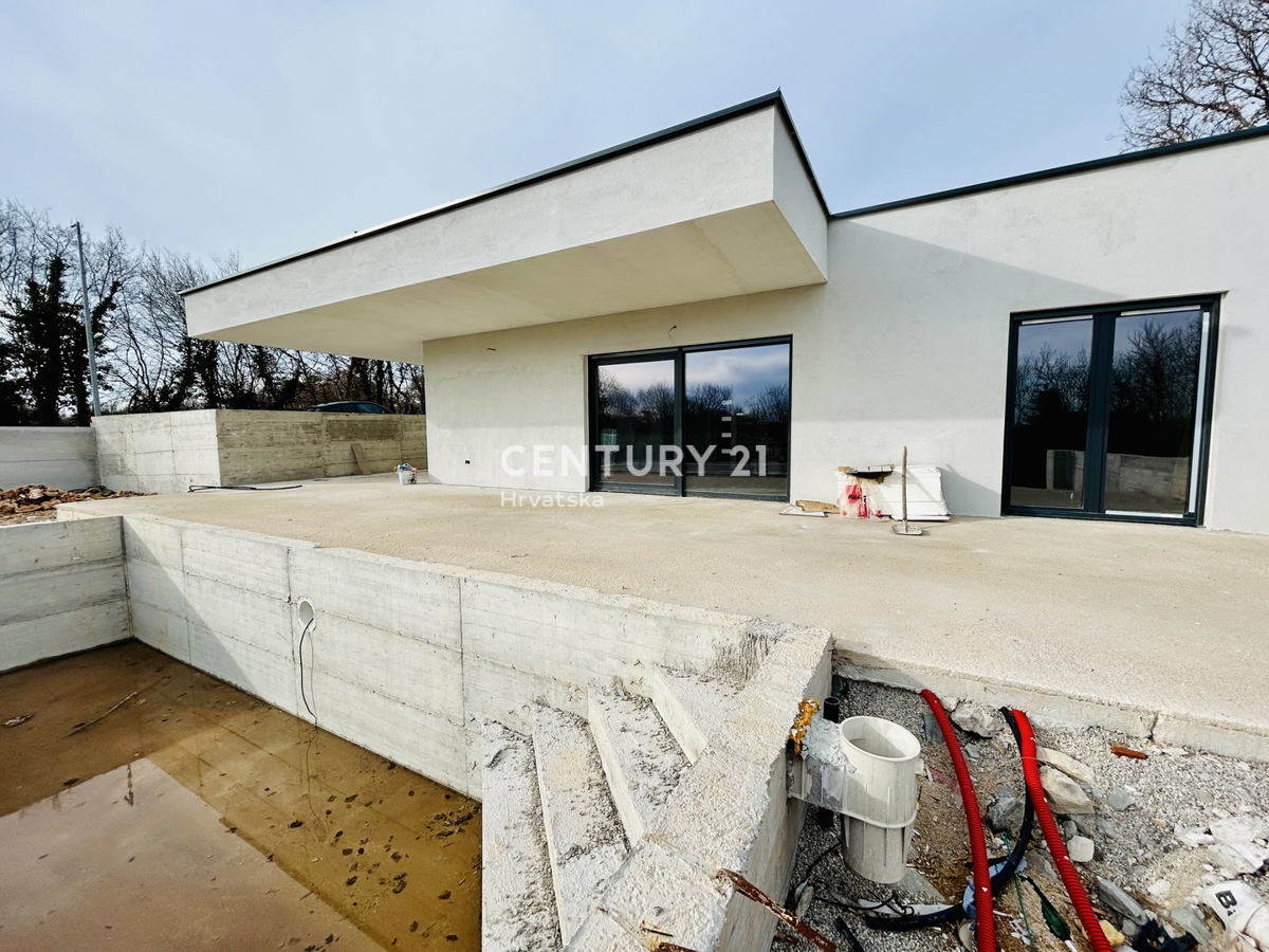 POREČ, UMGEBUNG, NEUES DUPLEXHAUS Wir verkaufen ein zweistöckiges Haus von 91 m2, modernes Design mit Swimmingpool in einem neuen Gebäude, 16 km vom Meer und der Stadt Poreč entfernt, in ruhiger und ruhiger Lage. Das Haus besteht aus einem Eingang, ei