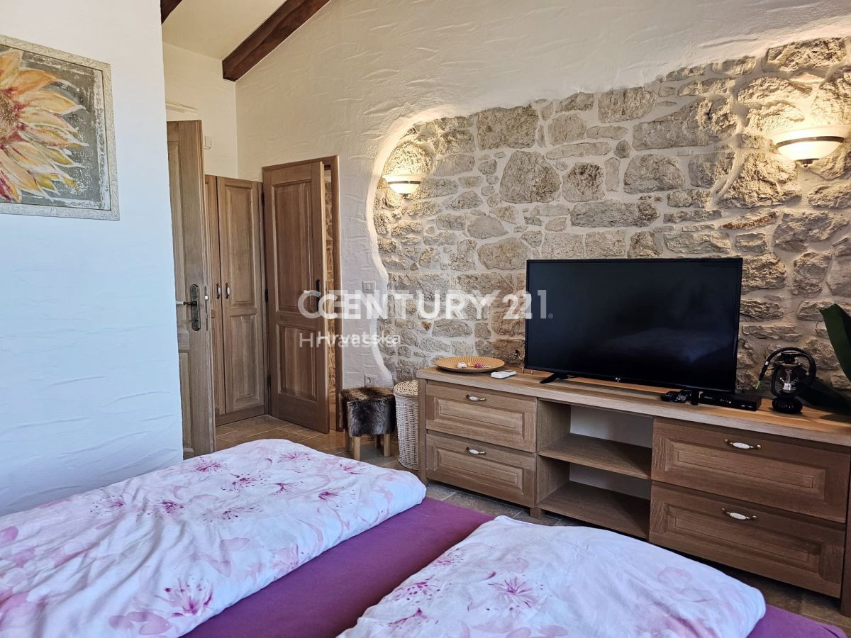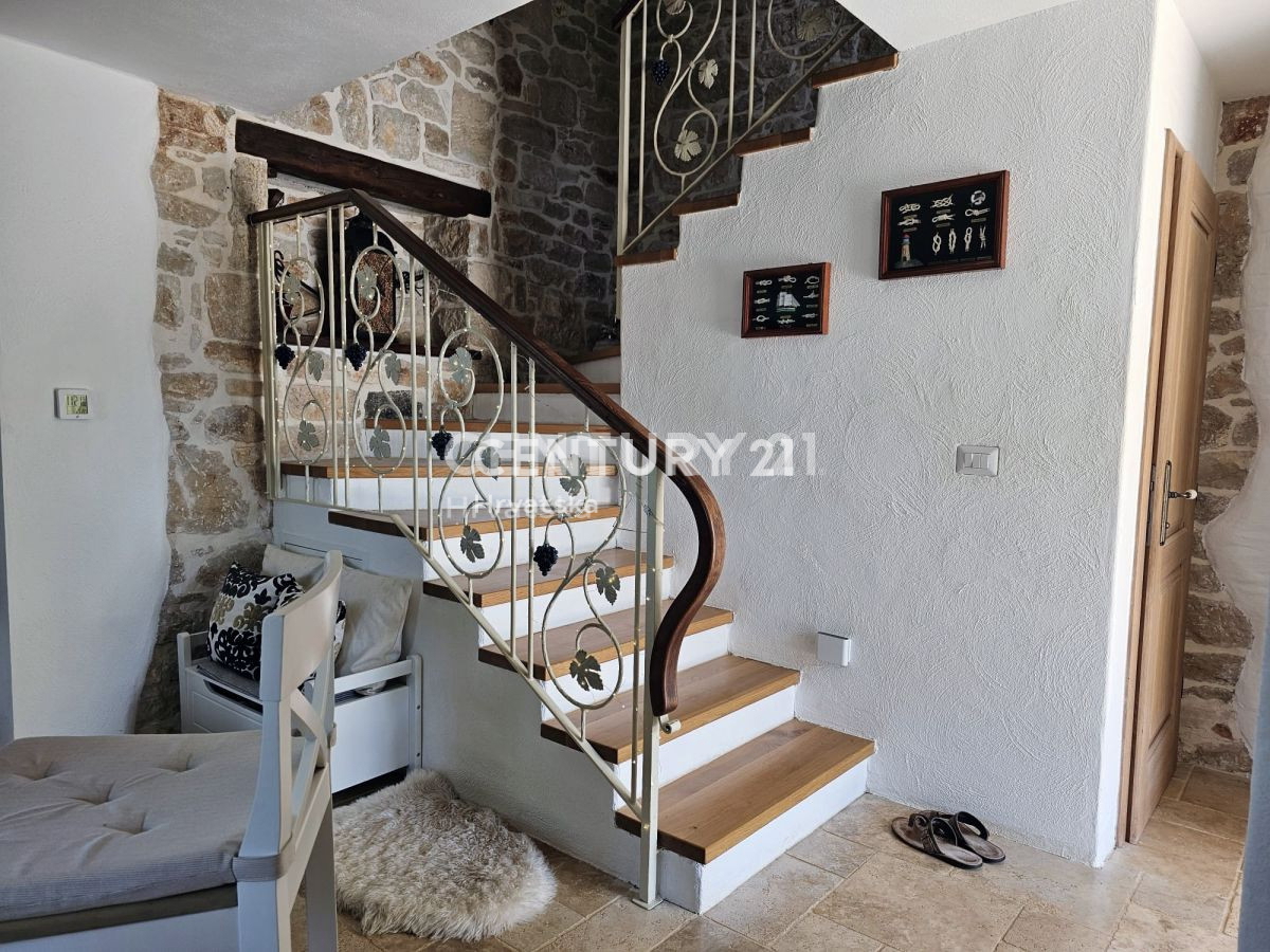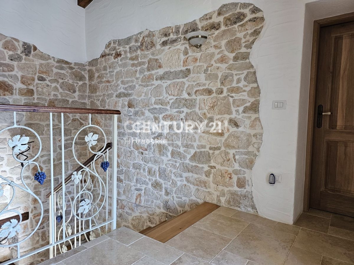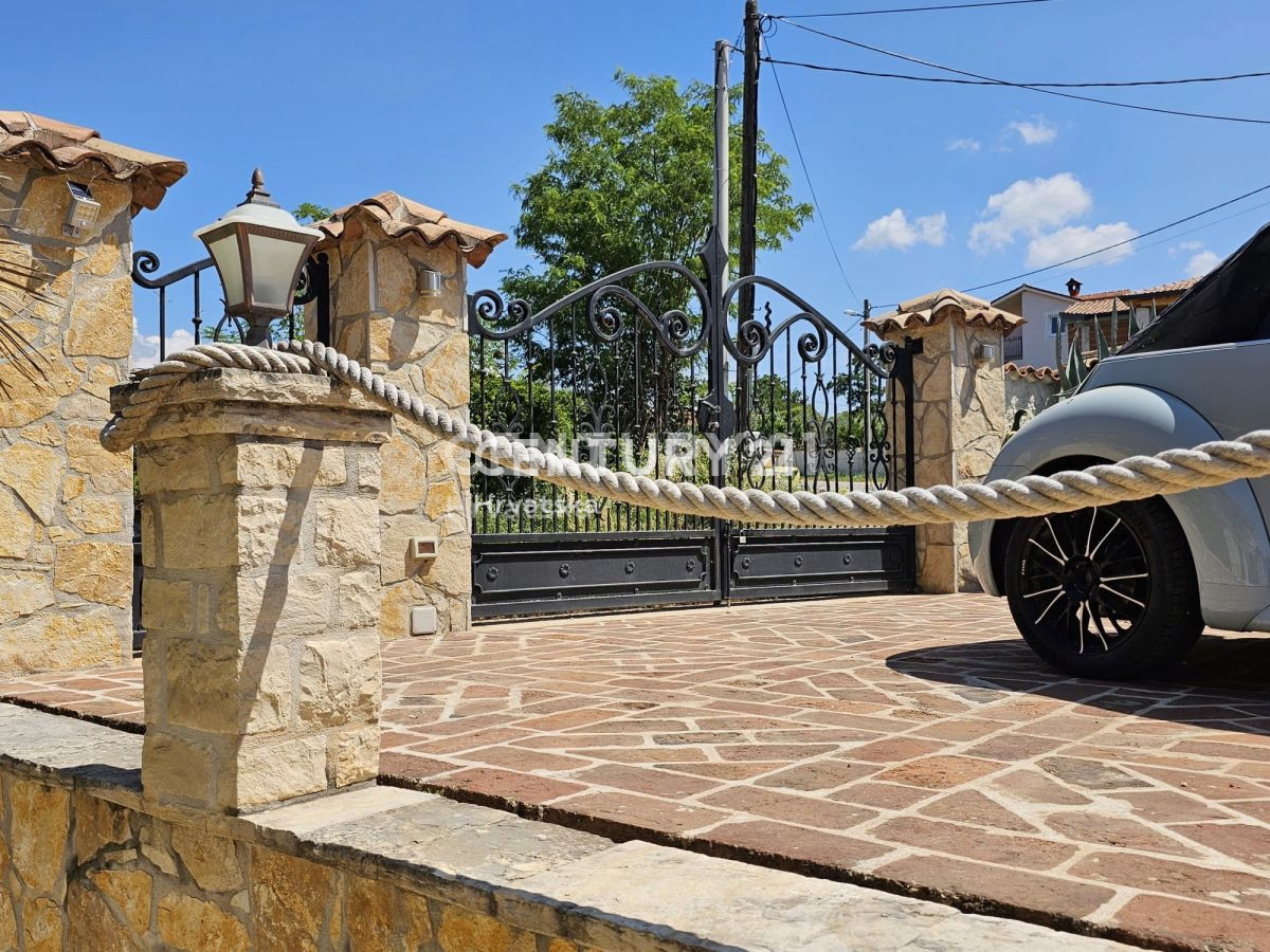 Dieses große Steinhaus liegt in einem Dorf 14 km von Poreč und 7 km vom Meer entfernt. Das Haus wurde komplett im autochthonen istrischen Stil renoviert und wird möbliert und ausgestattet verkauft. Die Fläche beträgt 193 m2, auf einem Grundstück von 1