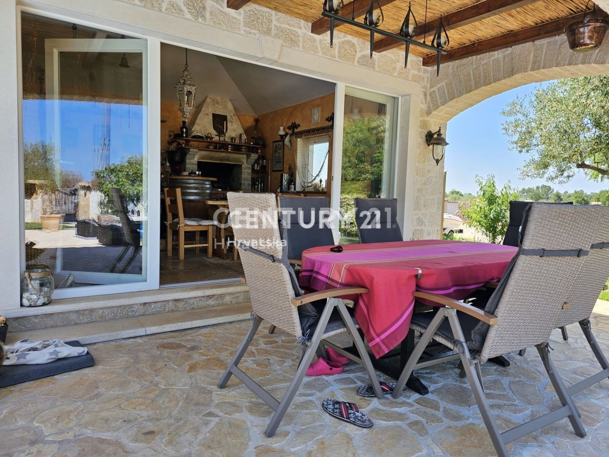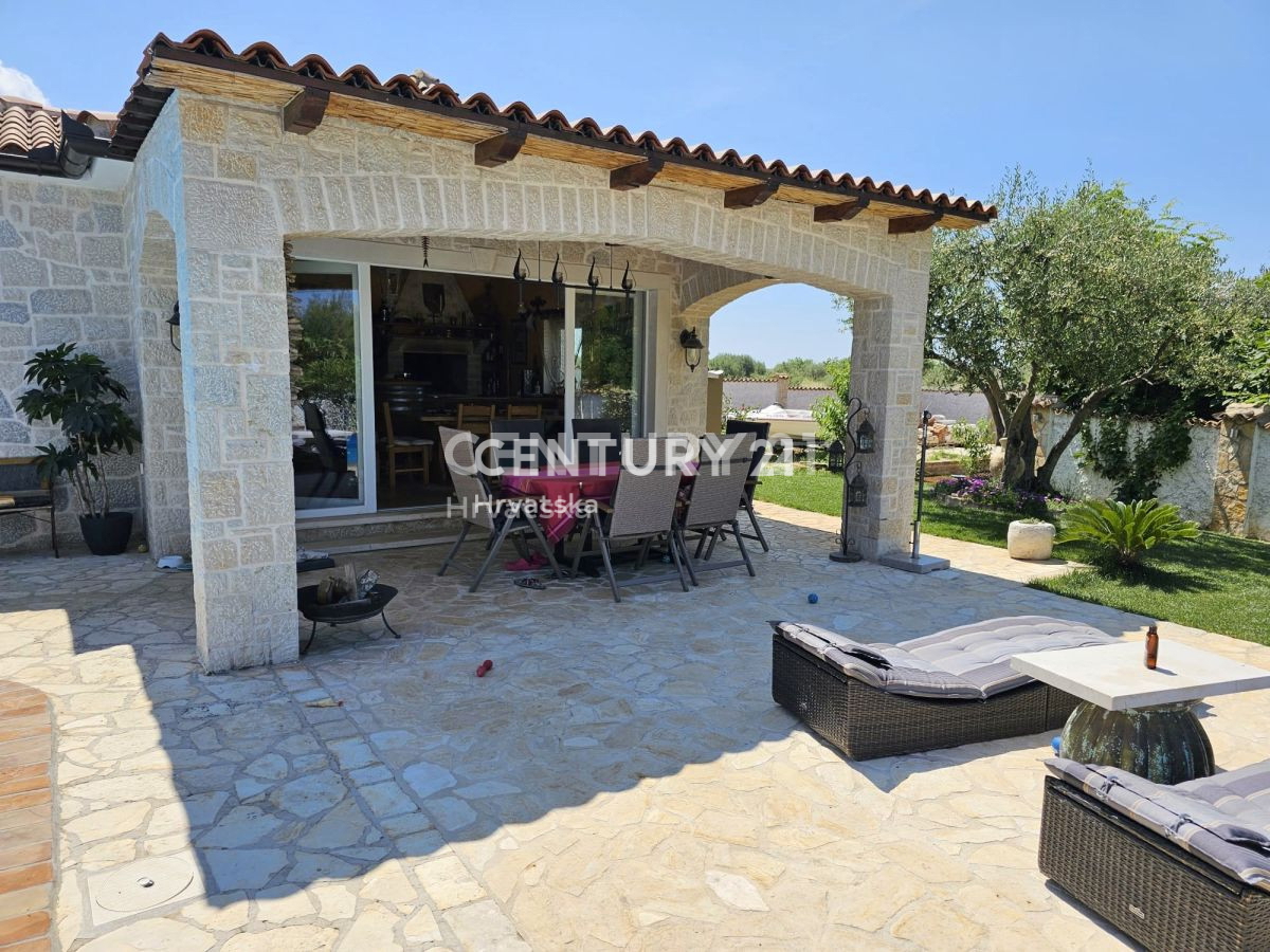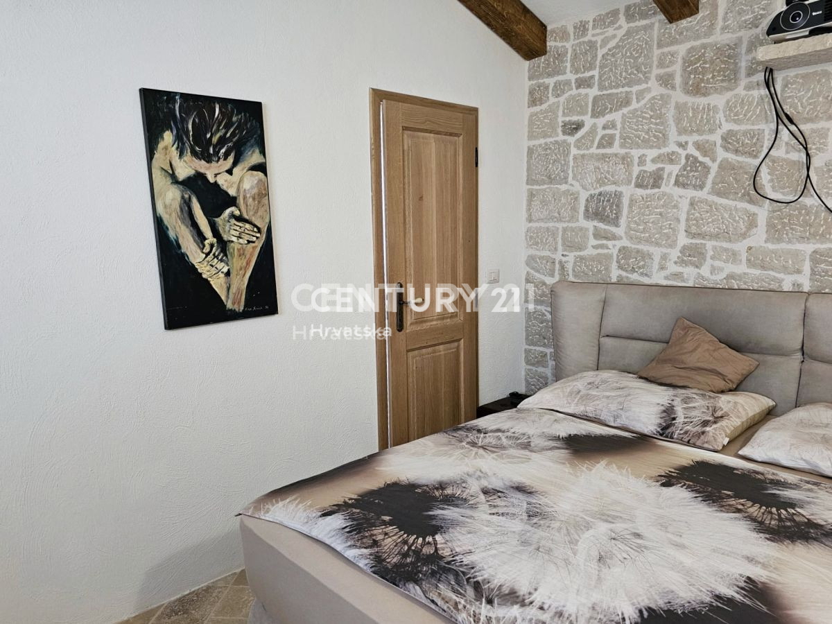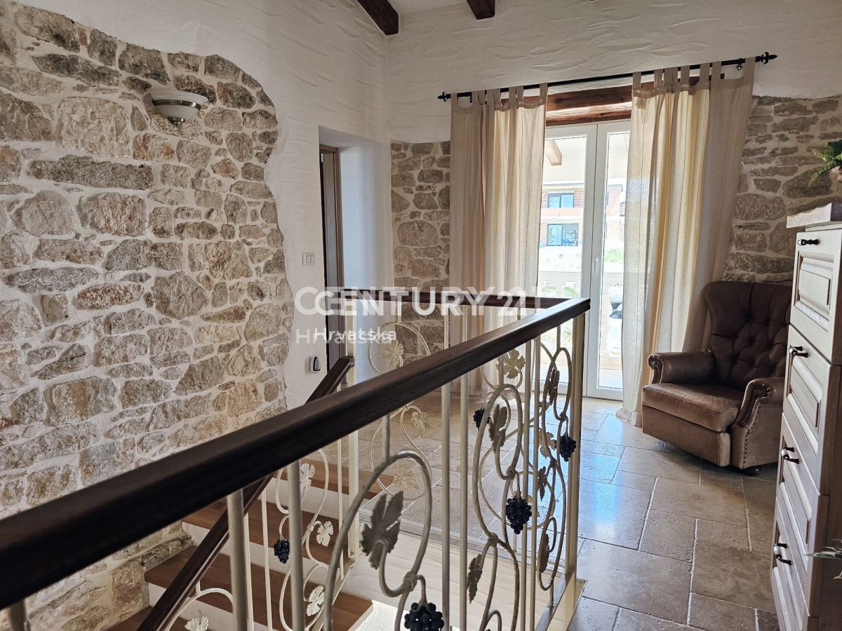 Dieses große Steinhaus liegt in einem Dorf 14 km von Poreč und 7 km vom Meer entfernt. Das Haus wurde komplett im autochthonen istrischen Stil renoviert und wird möbliert und ausgestattet verkauft. Die Fläche beträgt 193 m2, auf einem Grundstück von 1