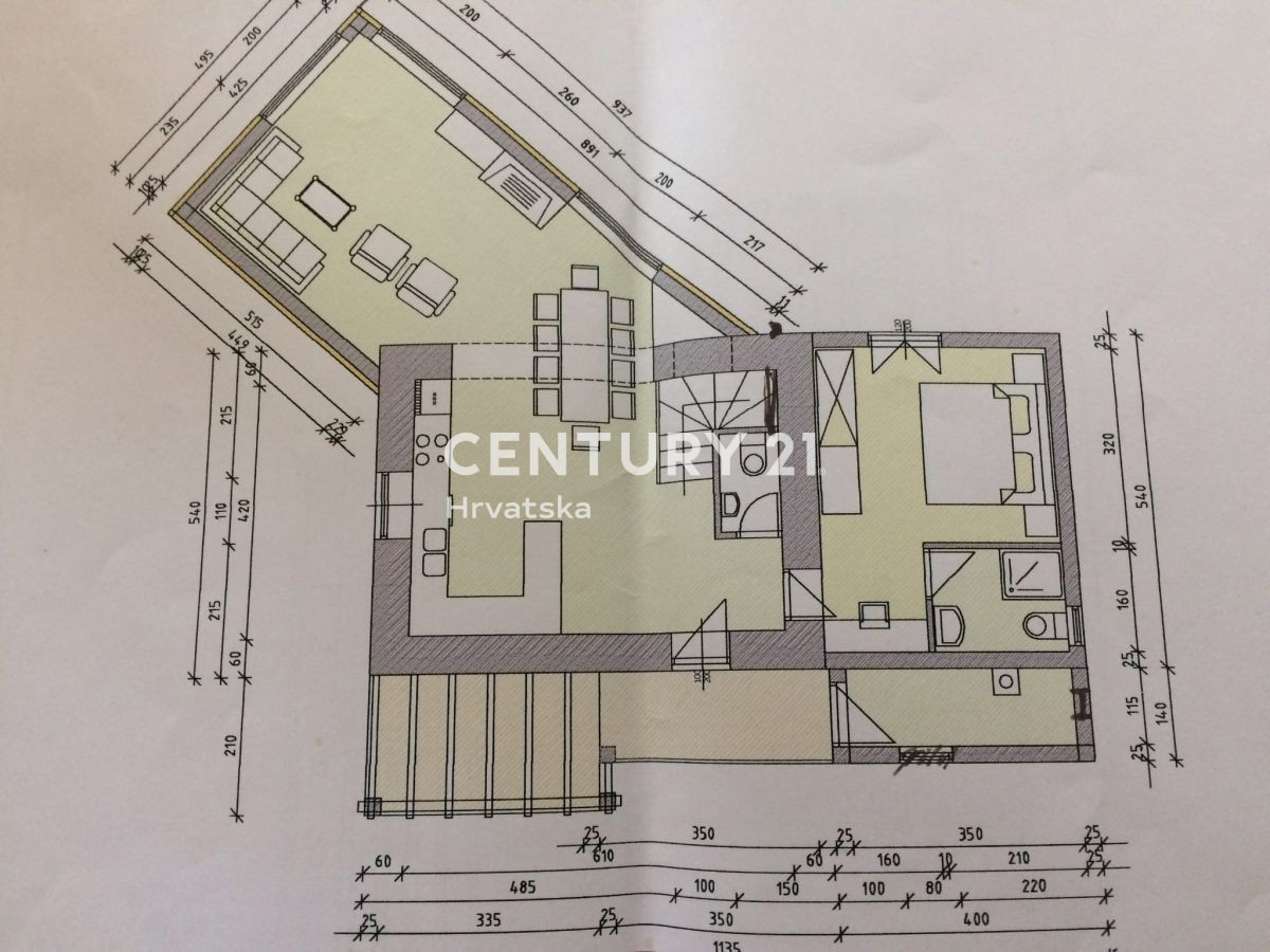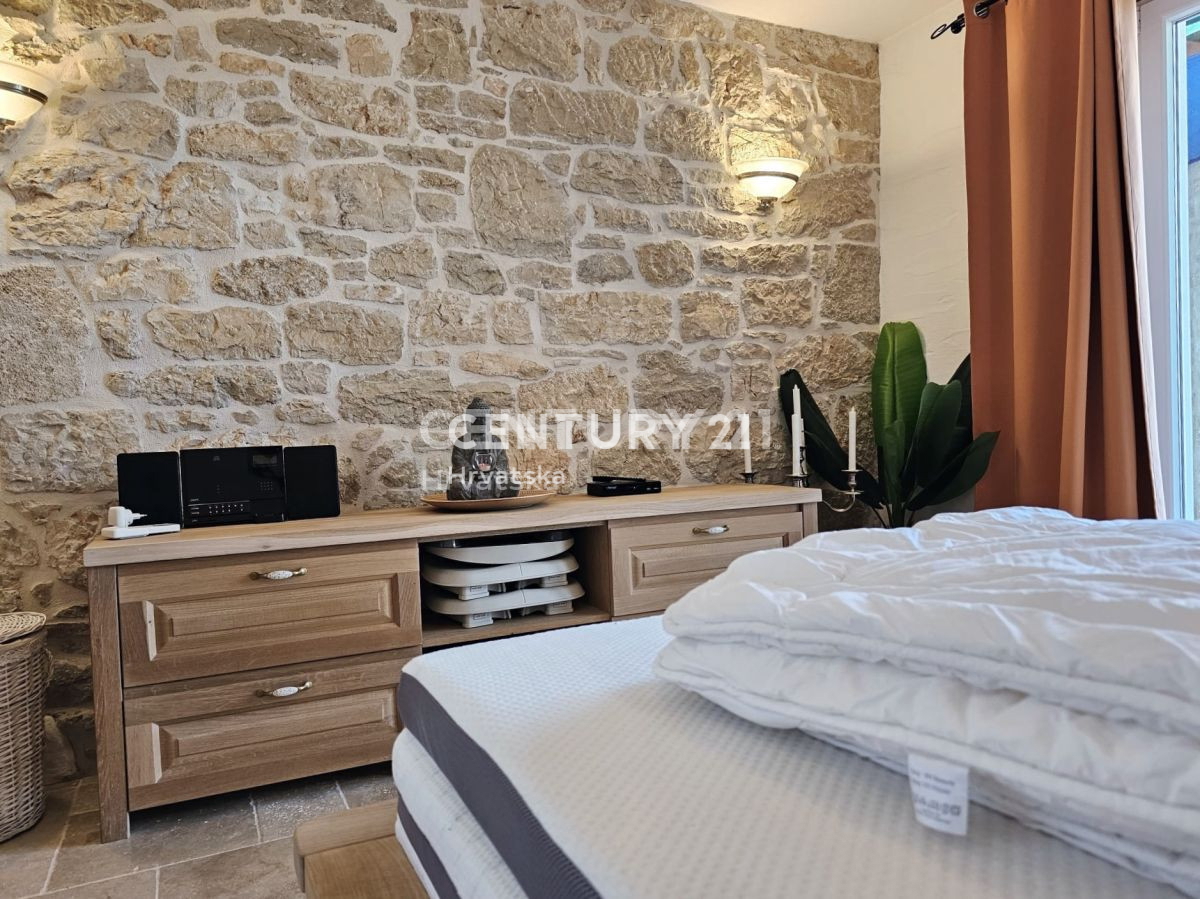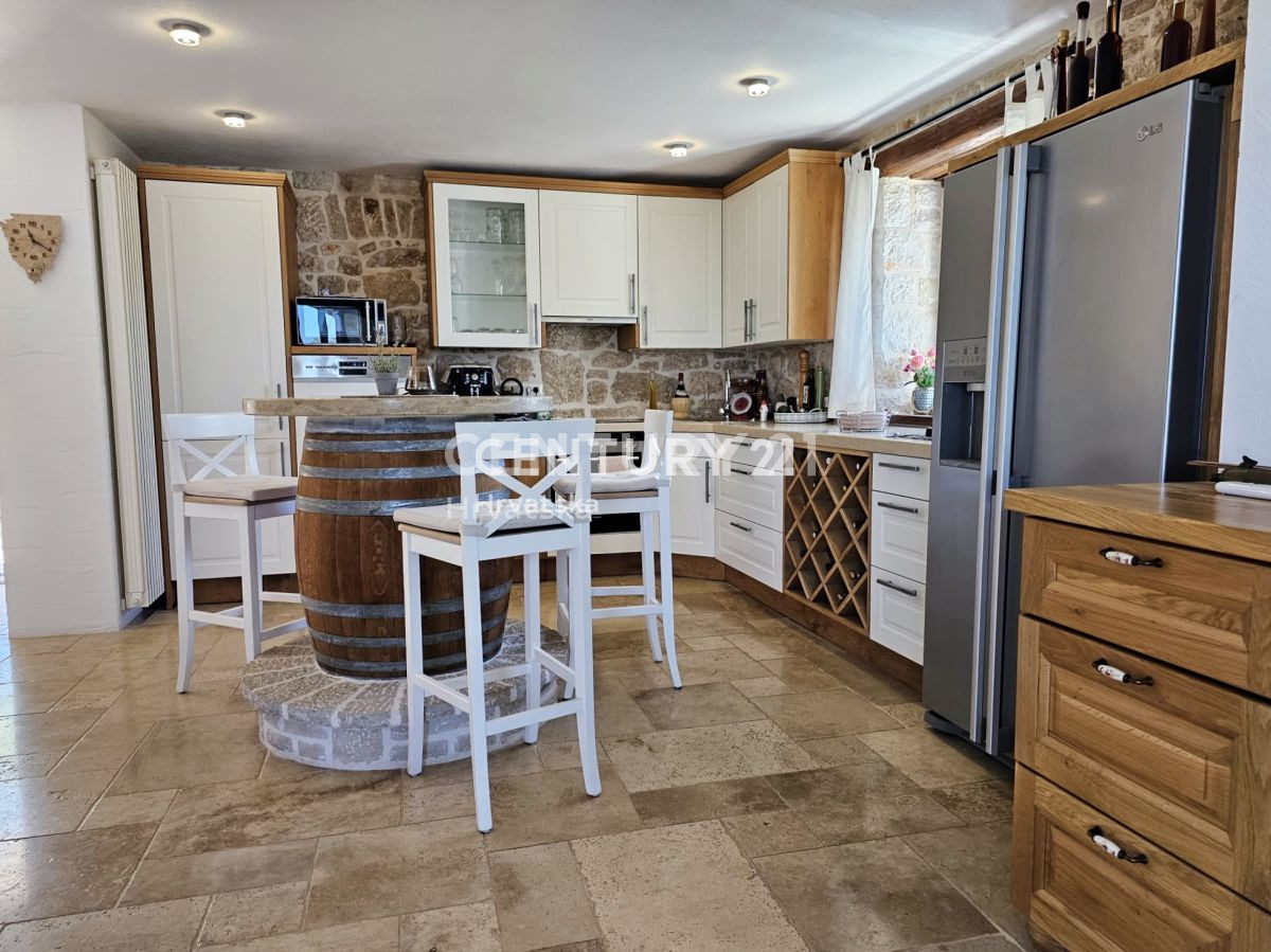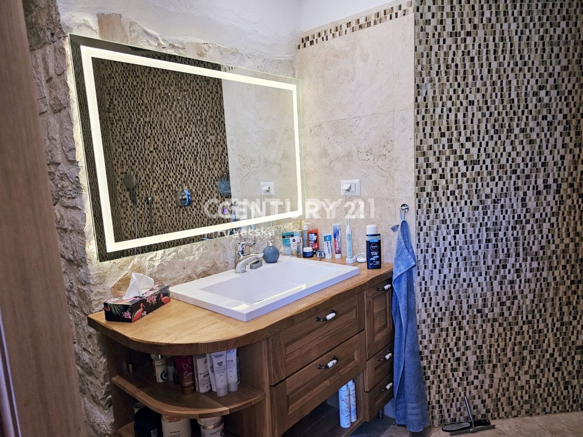 Dieses große Steinhaus liegt in einem Dorf 14 km von Poreč und 7 km vom Meer entfernt. Das Haus wurde komplett im autochthonen istrischen Stil renoviert und wird möbliert und ausgestattet verkauft. Die Fläche beträgt 193 m2, auf einem Grundstück von 1