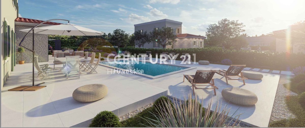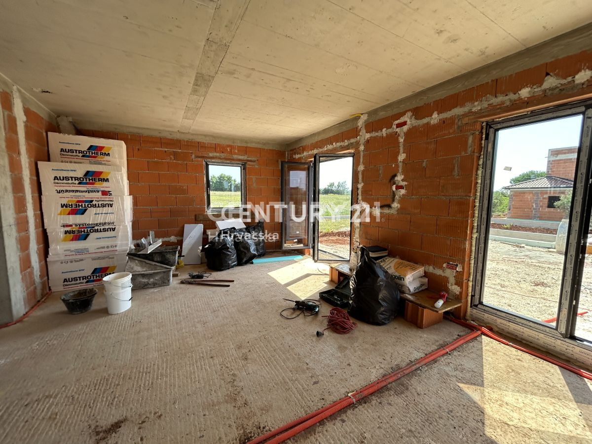 POREČ, UMGEBUNG, FREISTEHENDE VILLA MIT SCHWIMMBAD Wir verkaufen eine moderne freistehende Villa mit Swimmingpool, nur 4 km vom Meer und wunderschönen Stränden, 6 km von der Stadt Poreč entfernt. Die Villa mit einer Gesamtnettofläche von 147 m2 erstreck
