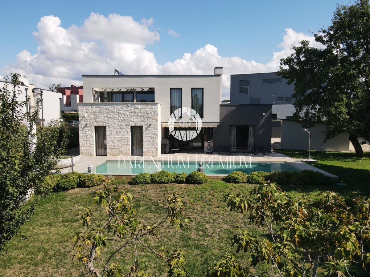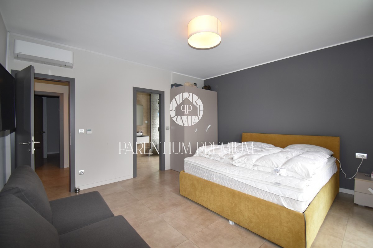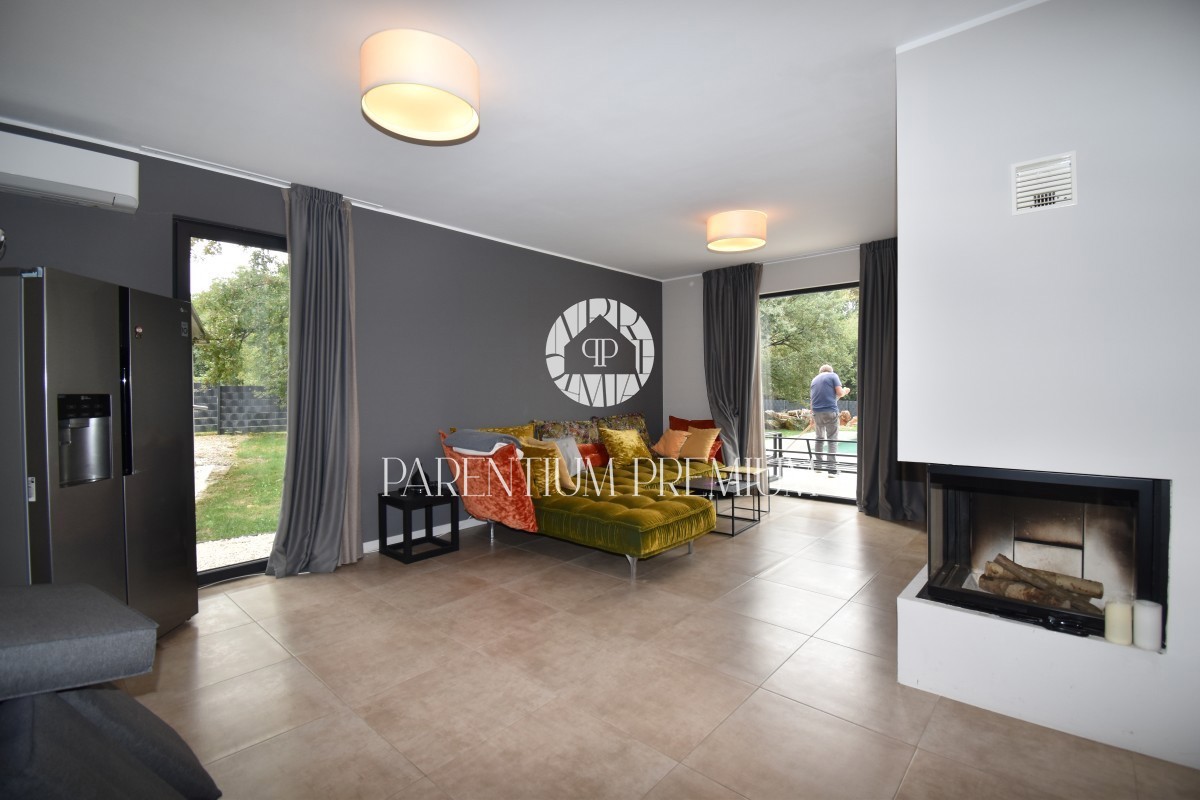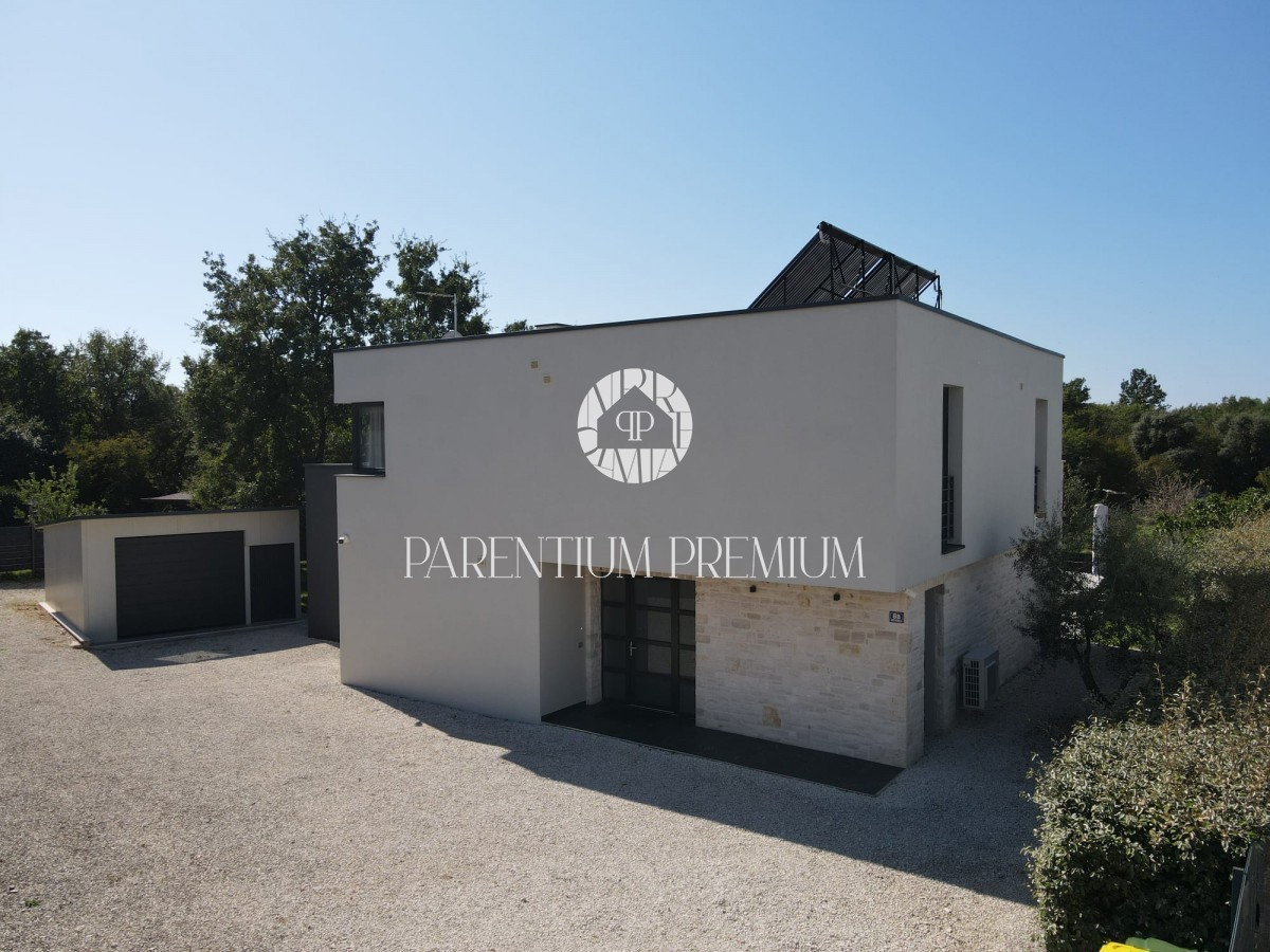 Istrien, Porec In einem Vorort von Poreč, nur 2 km vom Strand und dem Zentrum entfernt, befindet sich diese moderne Villa von 250 m2 auf einem Grundstück von 1139 m2. Es erstreckt sich über zwei Etagen, Erdgeschoss und erste Etage. Das Erdgeschoss best