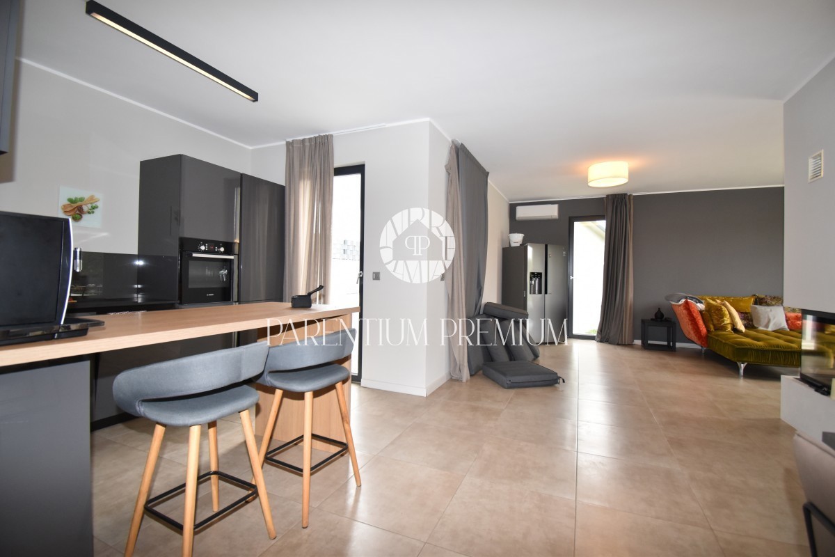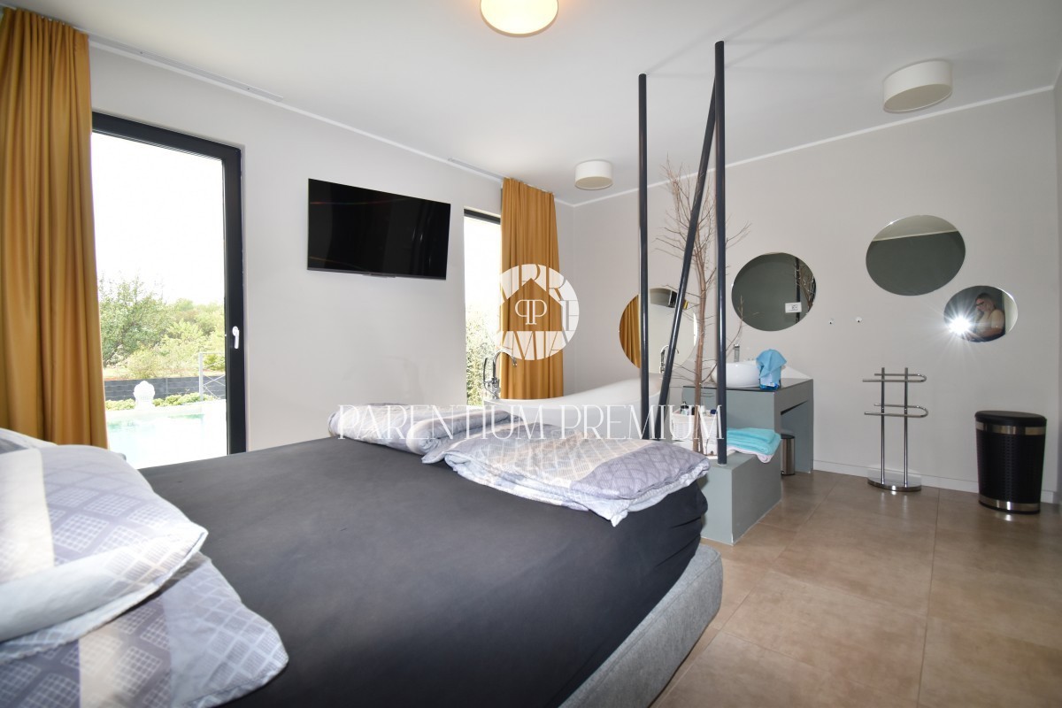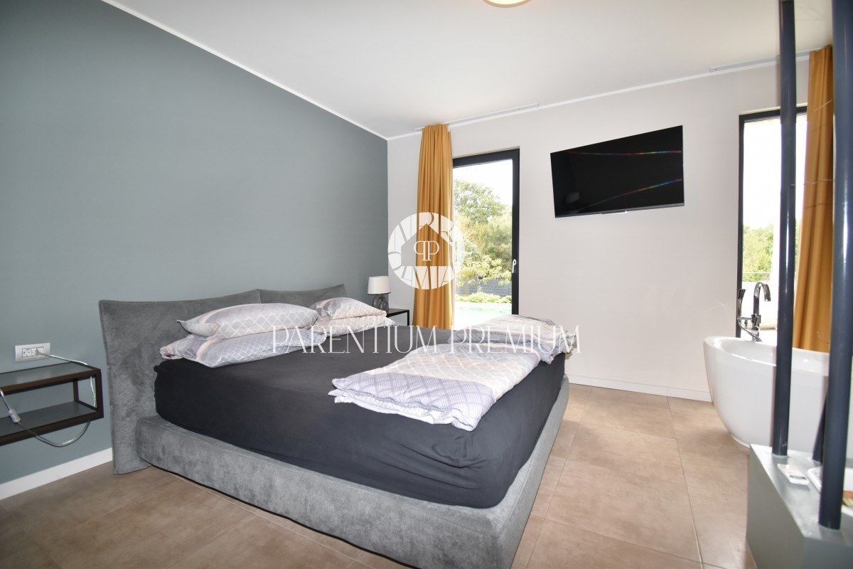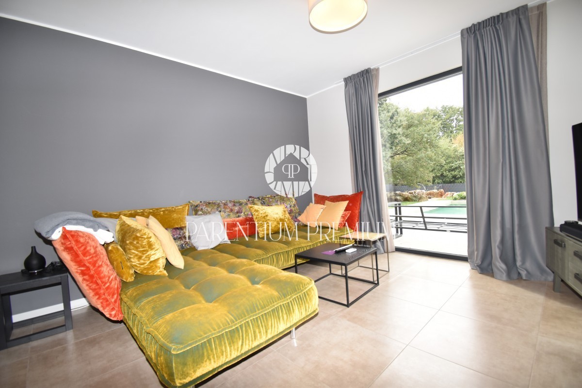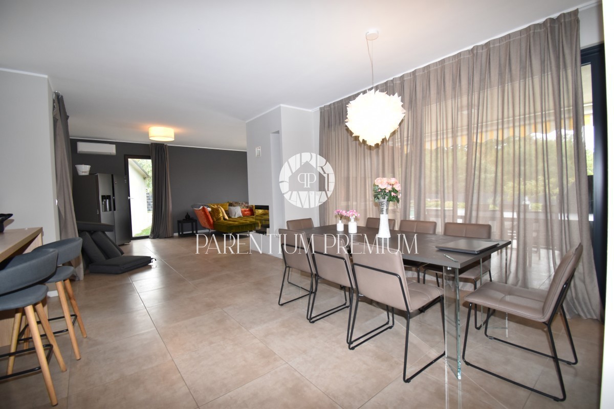 Istrien, Porec In einem Vorort von Poreč, nur 2 km vom Strand und dem Zentrum entfernt, befindet sich diese moderne Villa von 250 m2 auf einem Grundstück von 1139 m2. Es erstreckt sich über zwei Etagen, Erdgeschoss und erste Etage. Das Erdgeschoss best