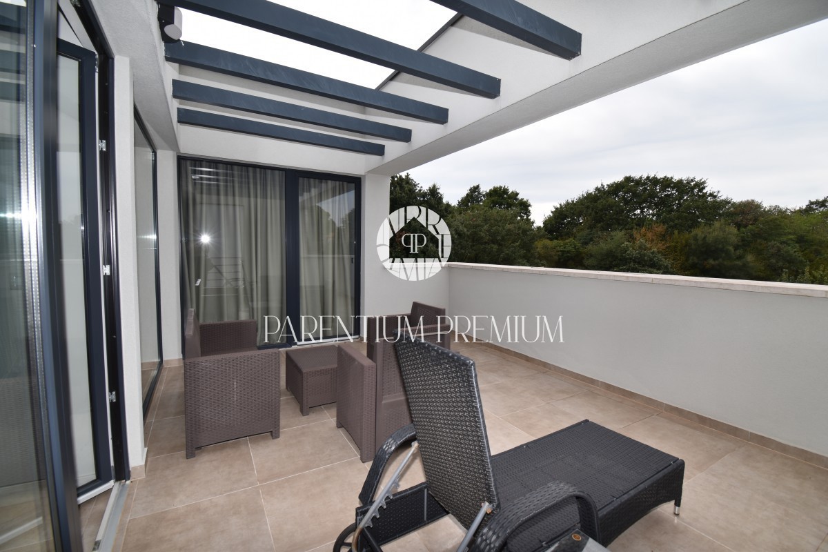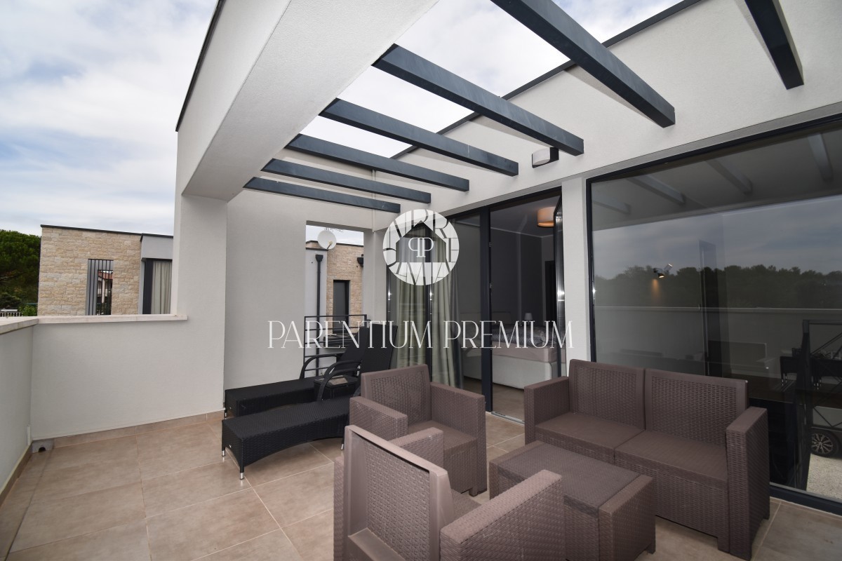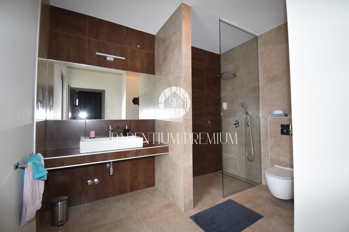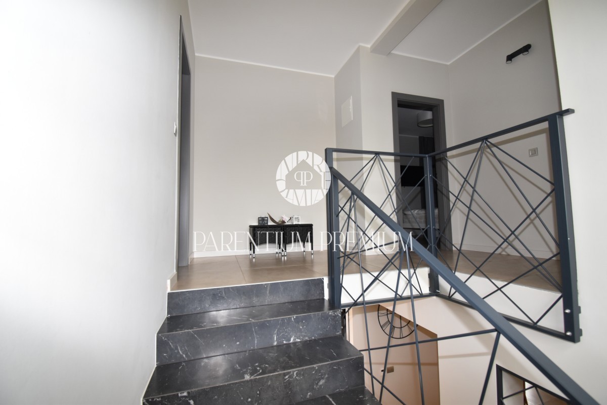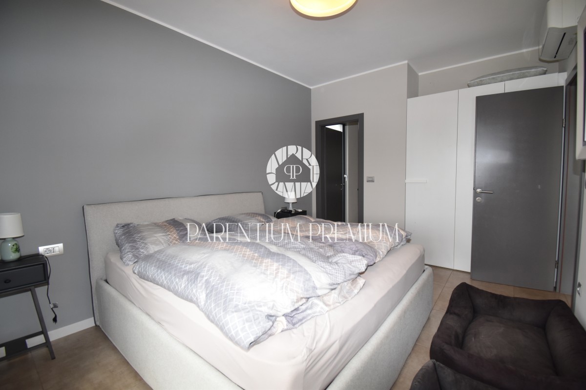 Istrien, Porec In einem Vorort von Poreč, nur 2 km vom Strand und dem Zentrum entfernt, befindet sich diese moderne Villa von 250 m2 auf einem Grundstück von 1139 m2. Es erstreckt sich über zwei Etagen, Erdgeschoss und erste Etage. Das Erdgeschoss best