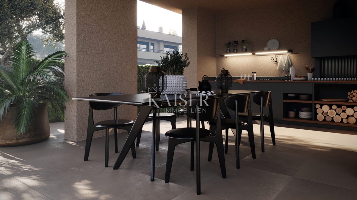 Kaiser Immobilien präsentiert stolz eine wahre Schönheit unter den Villen, eine moderne und elegante Villa mit Swimmingpool und Sauna und herrlichem Blick auf das Meer und die österreichischen Alpen. Die Villa befindet sich in idealer Lage, nur 10 km von