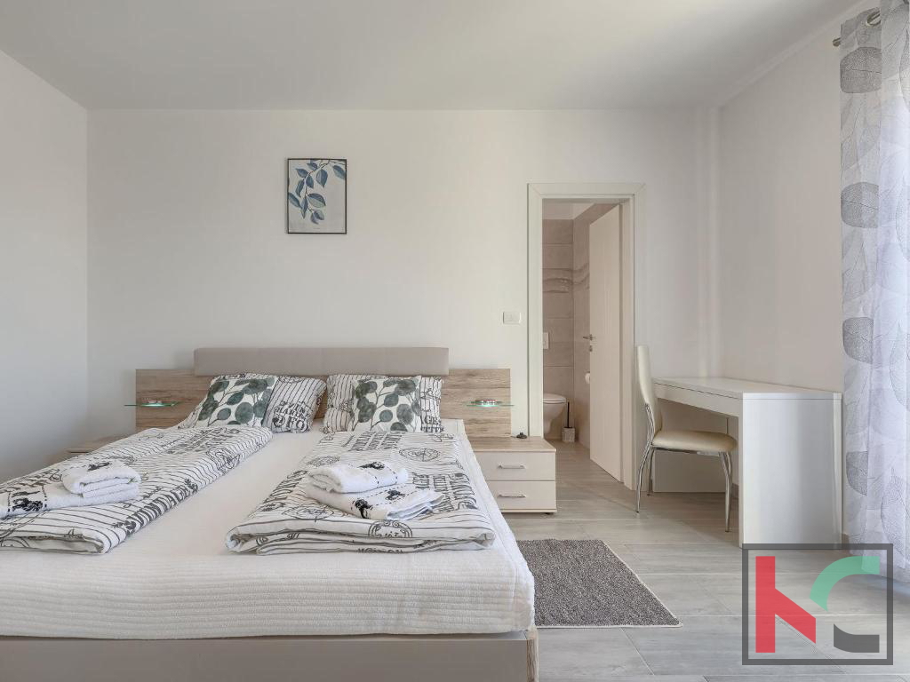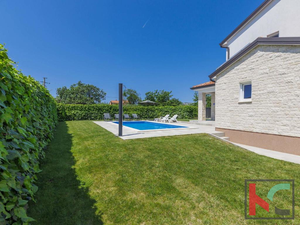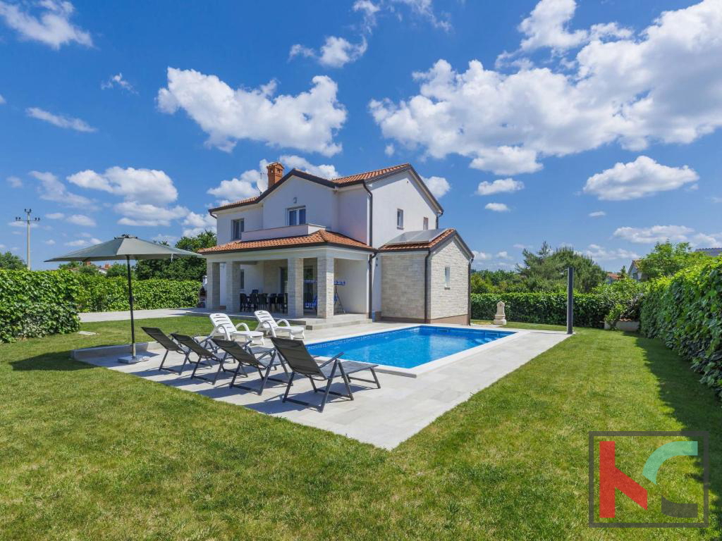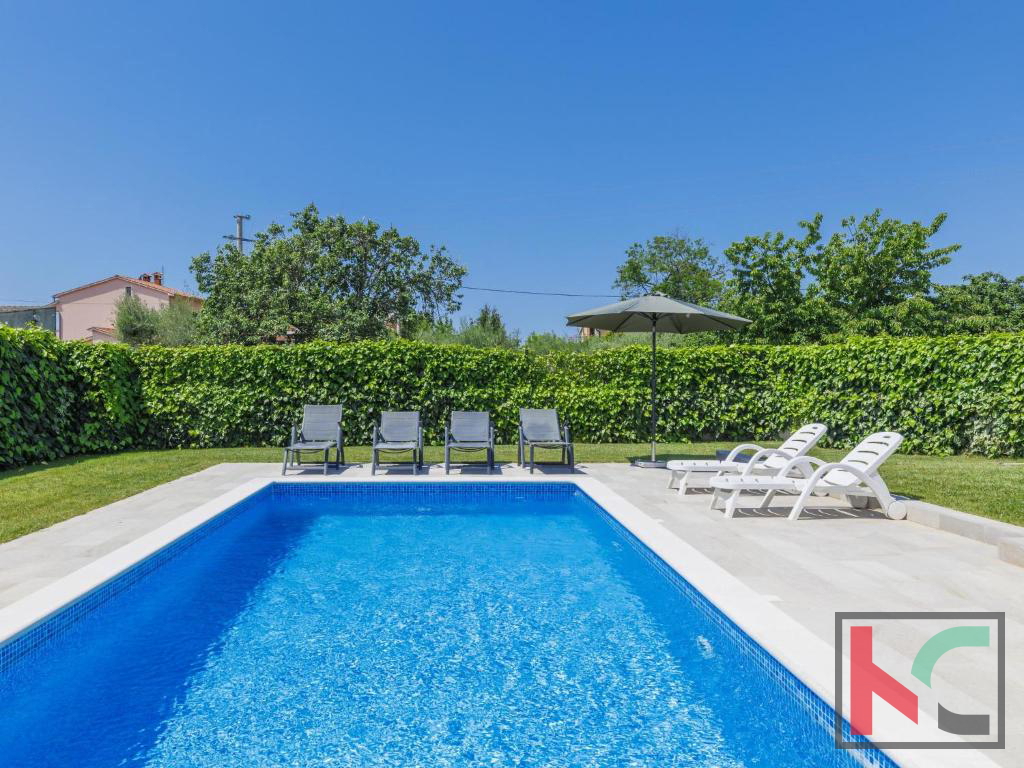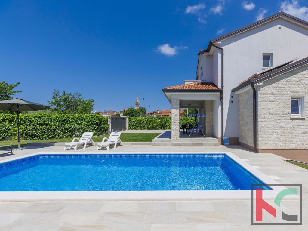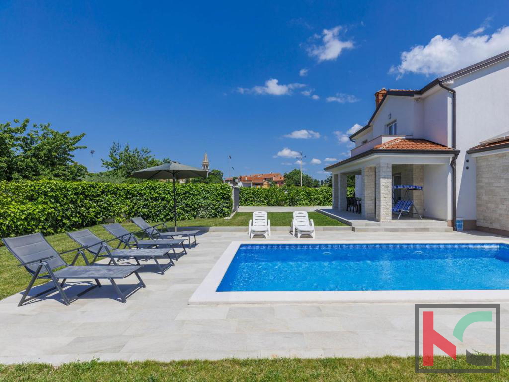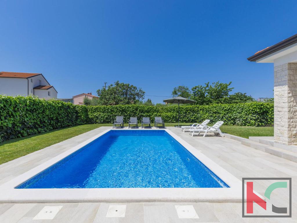 Zum Verkauf steht ein neu gebautes Ferienhaus mit Swimmingpool (Baujahr 2019) in der Nähe von Poreč, nur fünf Kilometer von den gepflegten Stränden entfernt. Es liegt in einer ruhigen Siedlung, die sowohl zum Wohnen als auch zum Urlauben angenehm ist, mit