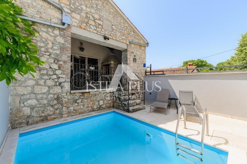K264 Poreč, Umgebung, Renoviertes Haus am Ende einer Reihe mit Swimmingpool, 4 km vom Meer entfernt ID 1379 In der Nähe von Poreč, 6 km von der Stadt und 4 km vom Meer entfernt, steht ein komplett renoviertes Steinhaus zum Verkauf, das letzte in einer Re