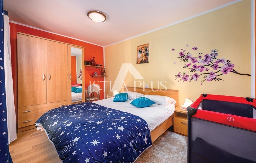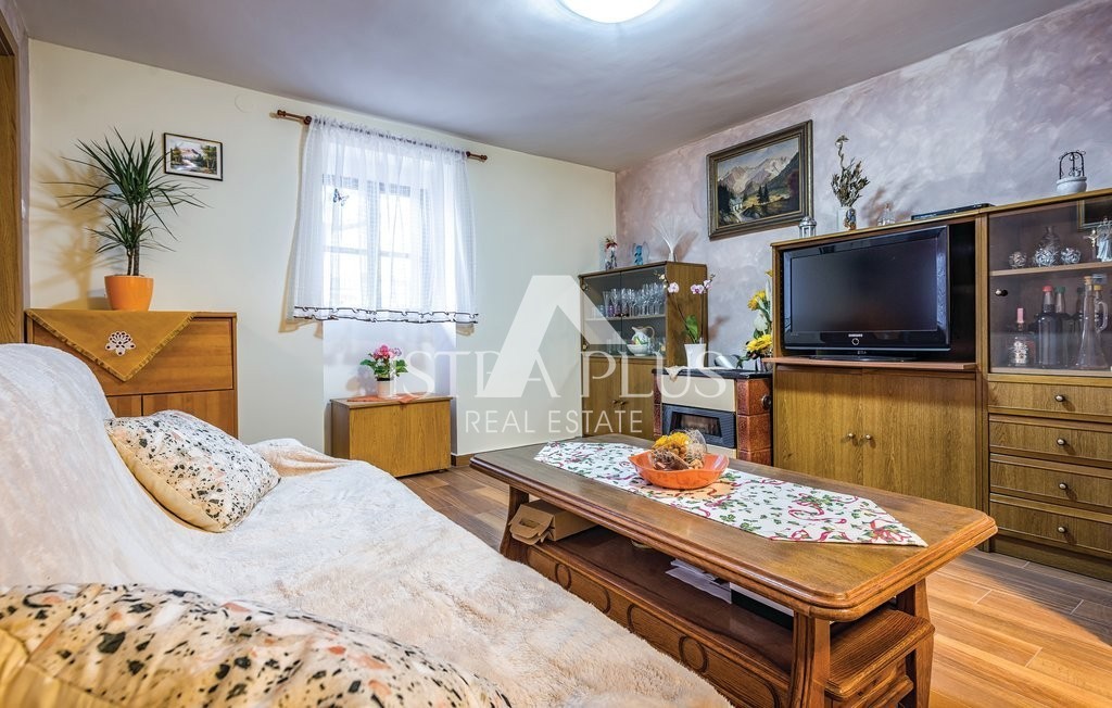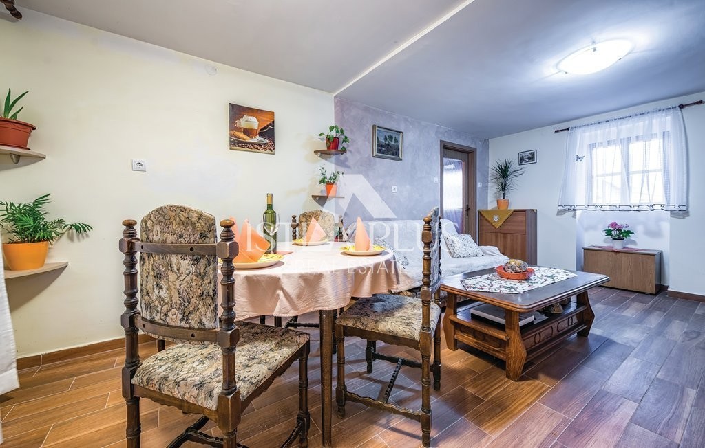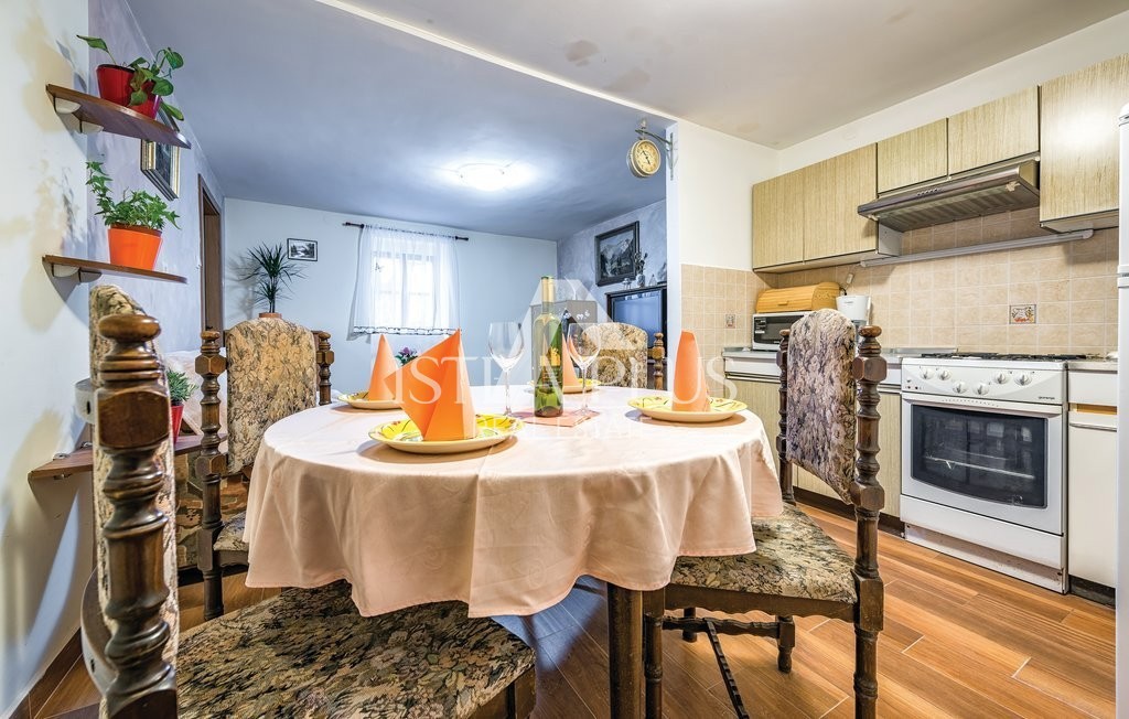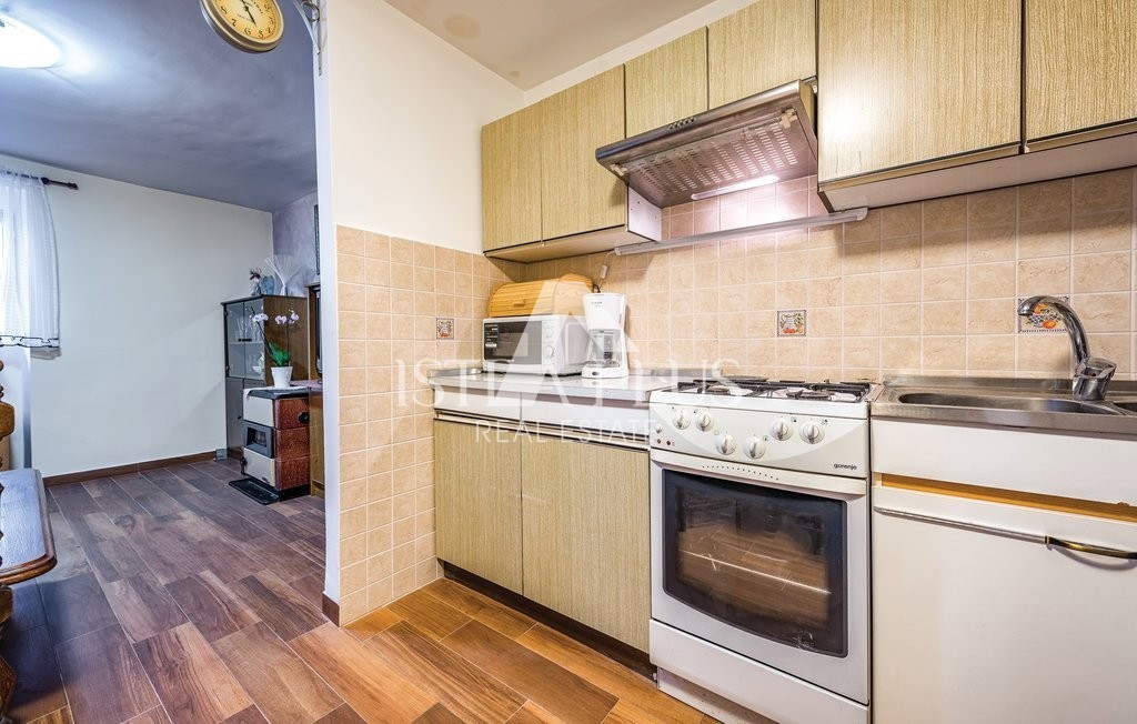 K265 Istrien, Poreč, Umgebung, teilweise renoviertes Doppelhaus in ruhiger Lage In einem ruhigen Dorf in der Nähe von Poreč, 17 km von der Stadt und dem Meer entfernt, steht eine kleine Doppelhaushälfte mit ca. 100 m² zum Verkauf. Das Haus erstreckt sic