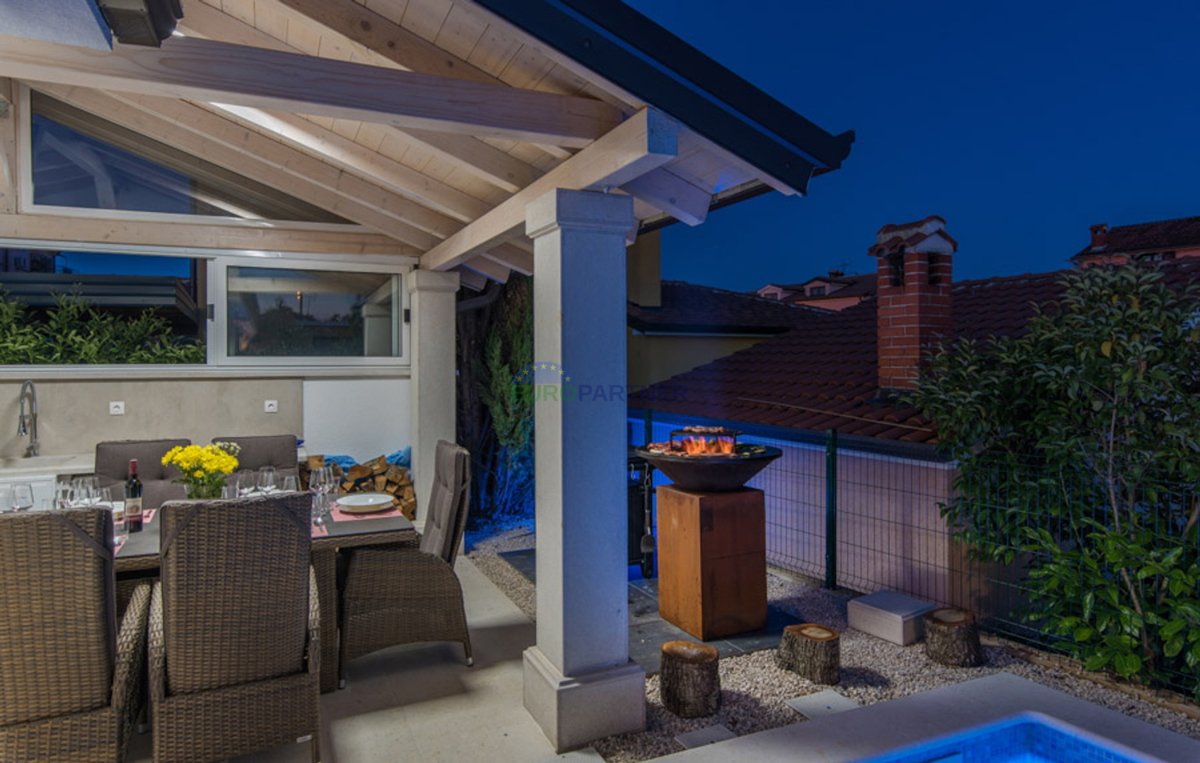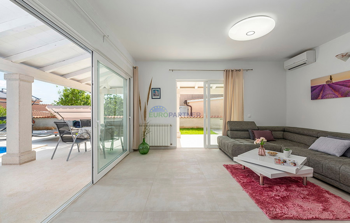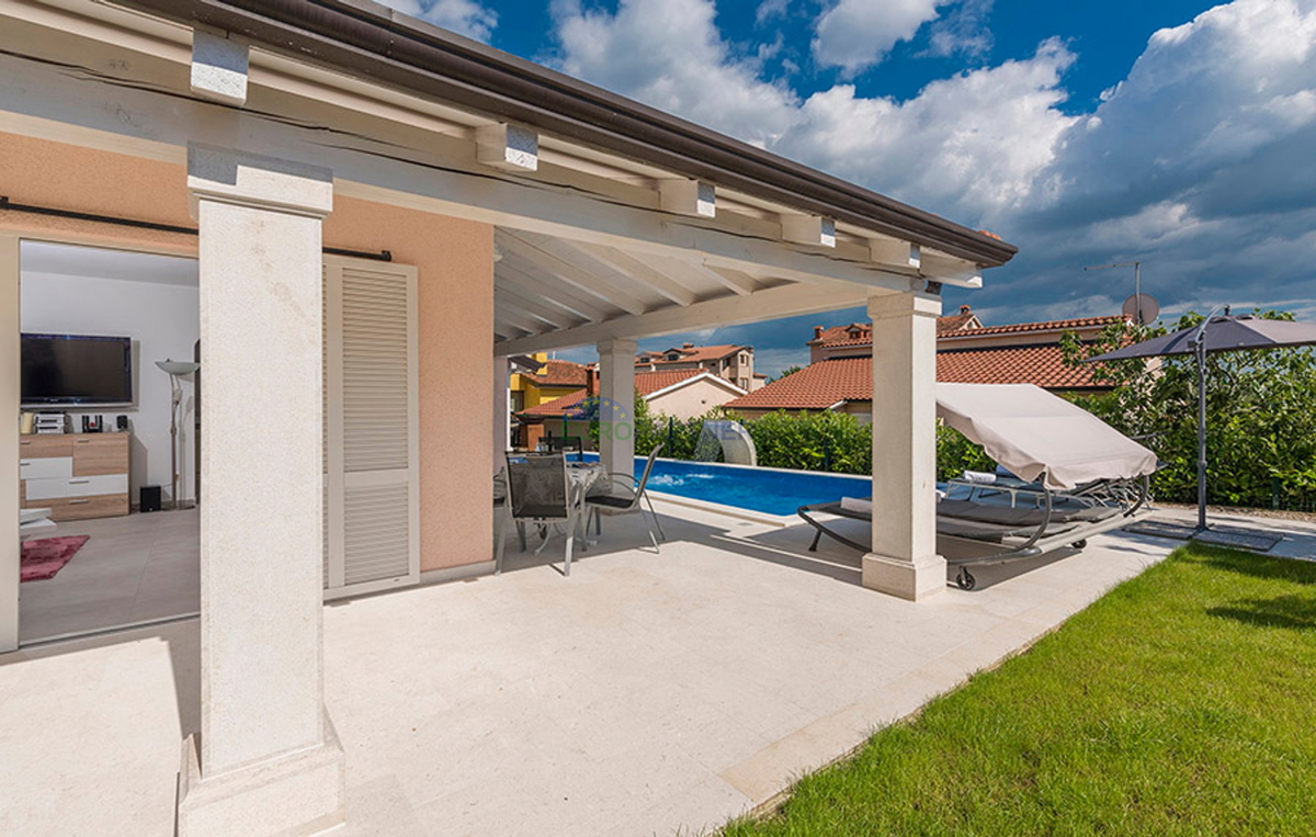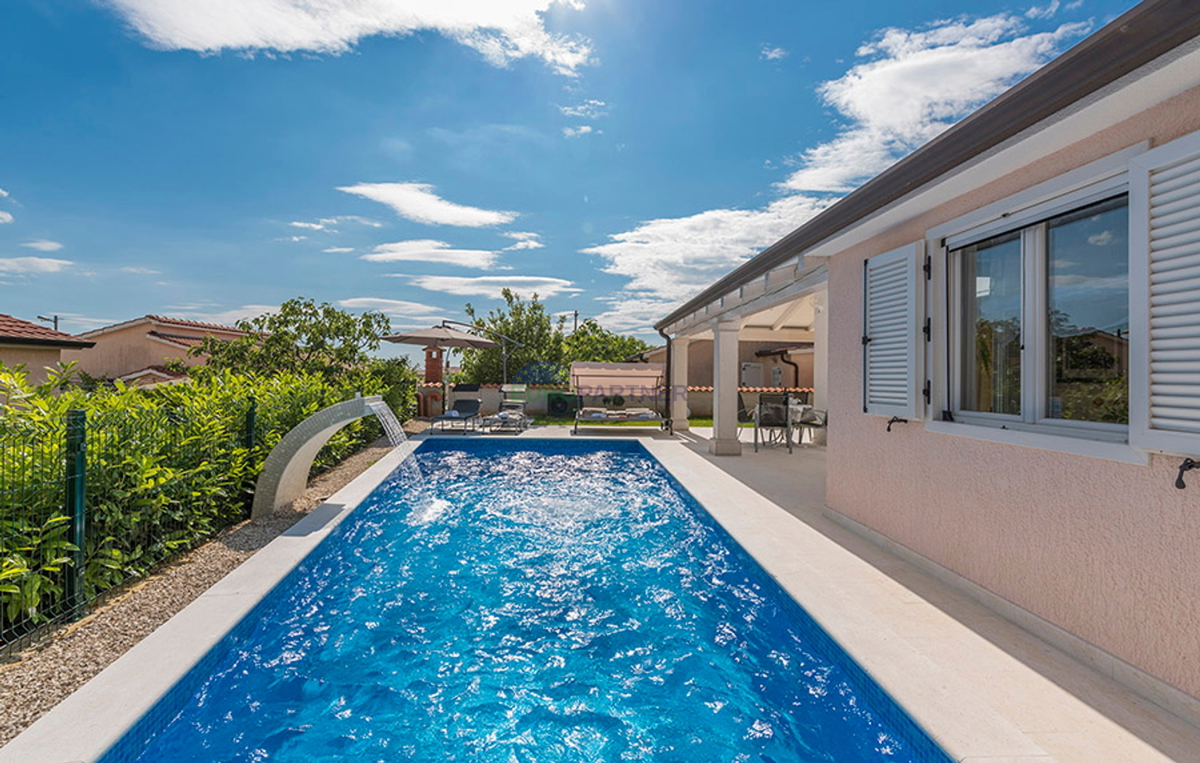 Dieses schöne einstöckige Haus mit Swimmingpool befindet sich in der Nähe von Poreč. Das Erdgeschoss umfasst 156 m2. Das Haus besteht aus einem Wohnzimmer, einer Küche und einer Speisekammer in einem offenen Raumkonzept. Was dieses einstöckige Haus äußers