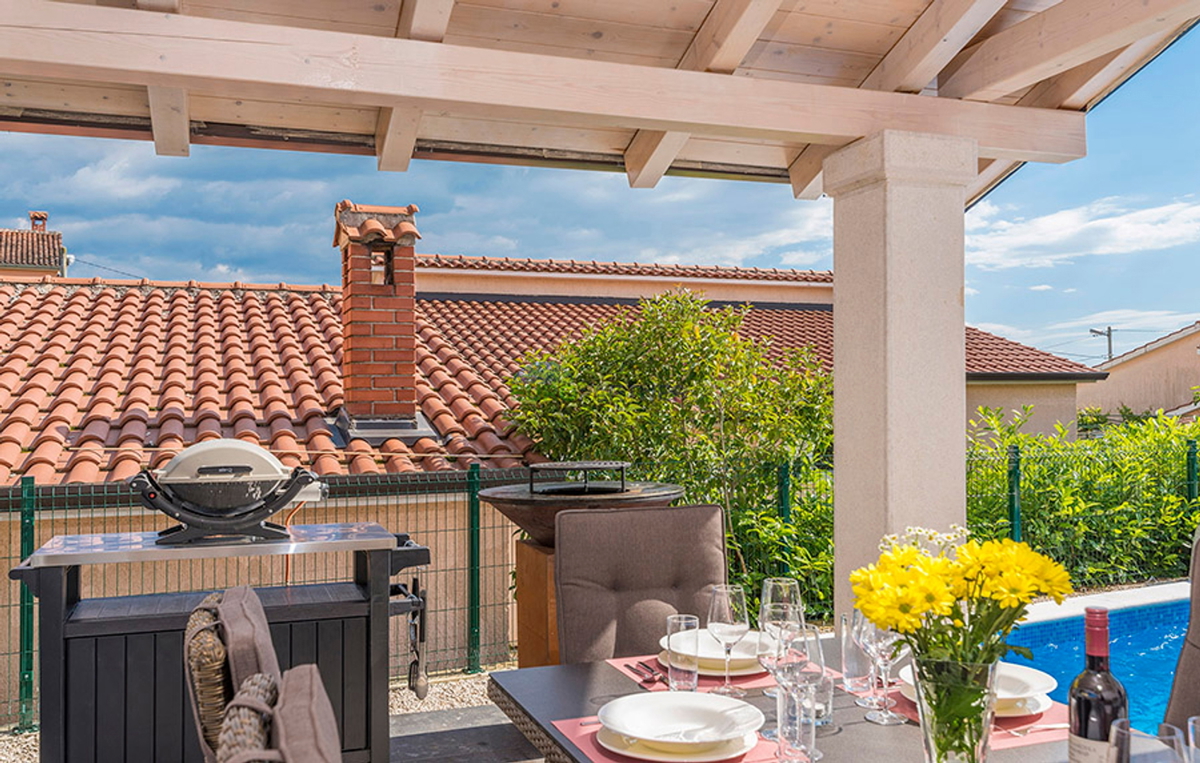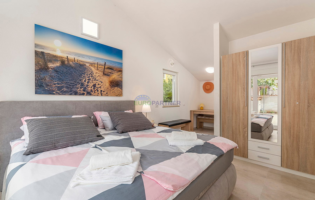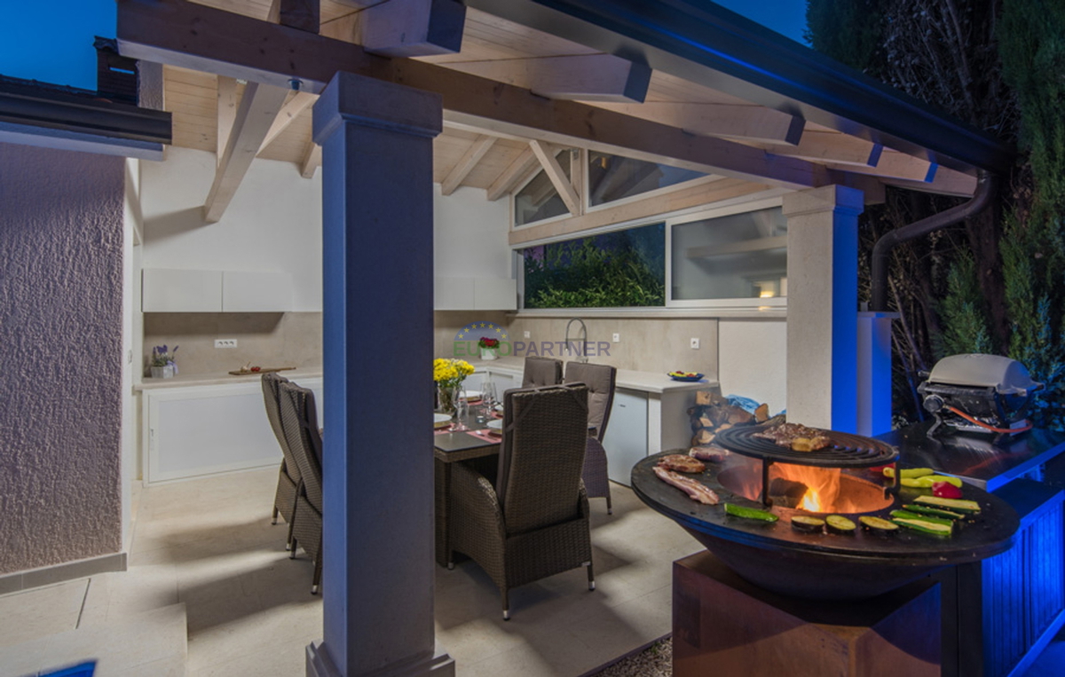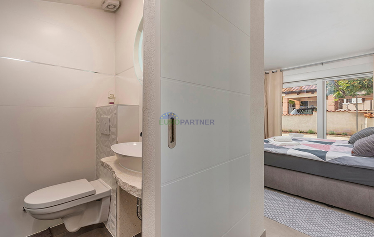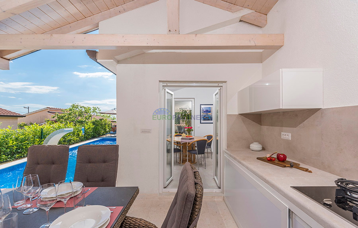Dieses schöne einstöckige Haus mit Swimmingpool befindet sich in der Nähe von Poreč. Das Erdgeschoss umfasst 156 m2. Das Haus besteht aus einem Wohnzimmer, einer Küche und einer Speisekammer in einem offenen Raumkonzept. Was dieses einstöckige Haus äußers