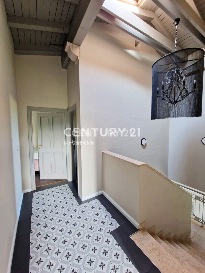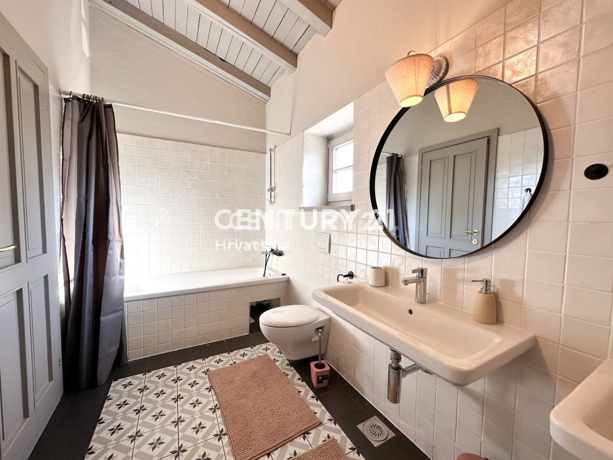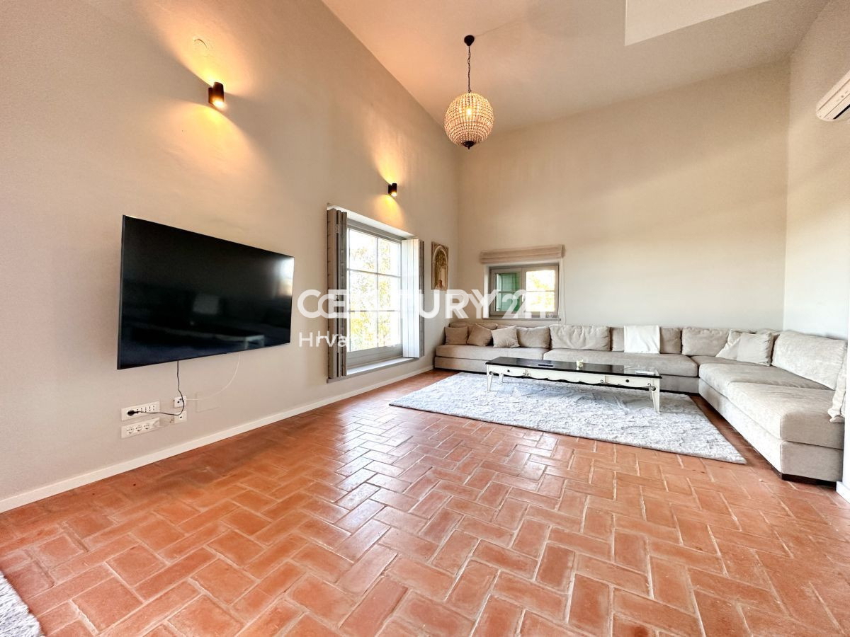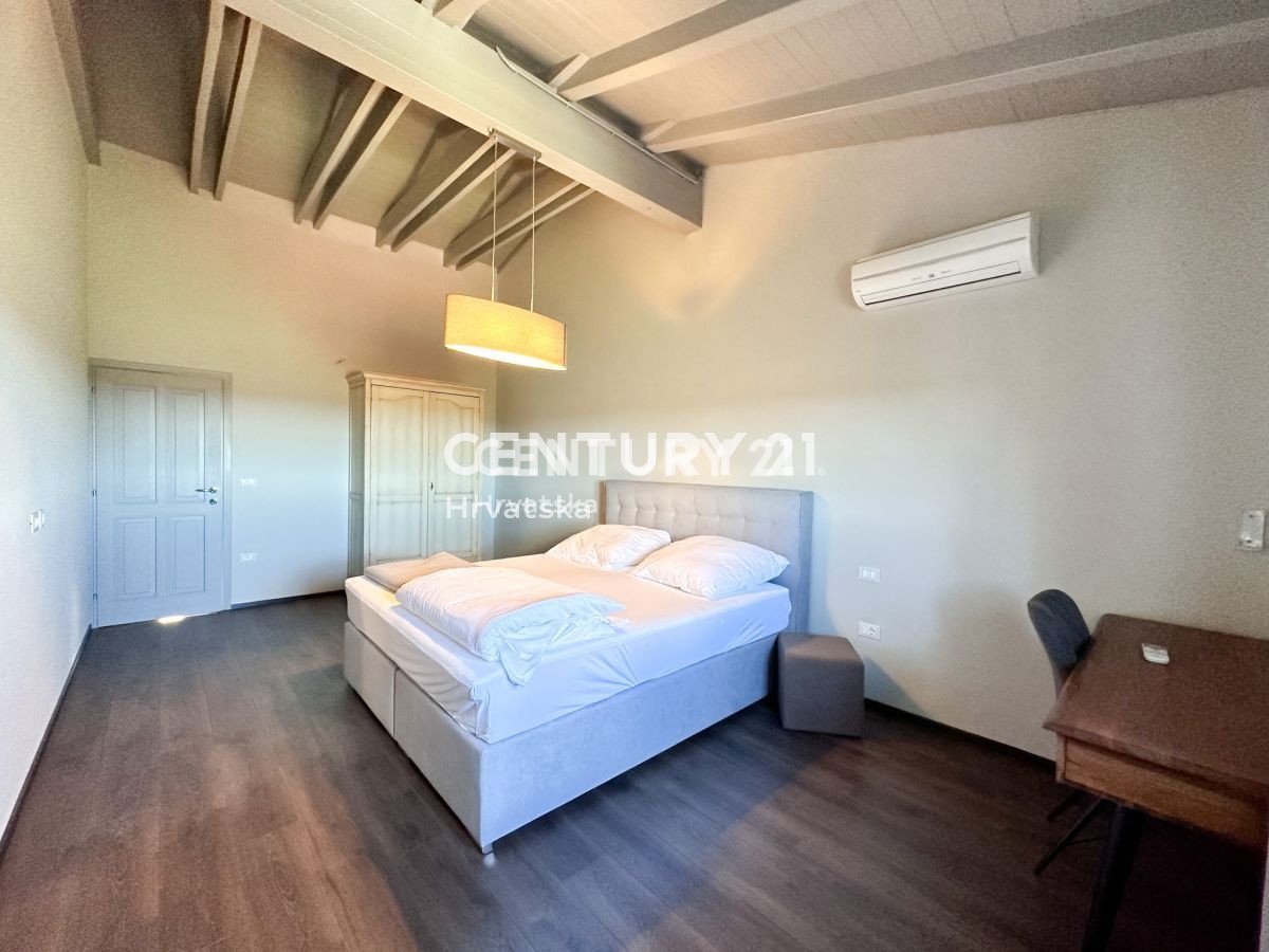 Poreč-Bereich, Steinhaus mit Pool und Meerblick In der Nähe von Poreč steht ein wunderschönes Steinhaus mit Meerblick zum Verkauf. Das Haus liegt am äußersten Rand des Dorfes und grenzt an landwirtschaftlich genutztes Land. Das Haus befindet sich auf ei