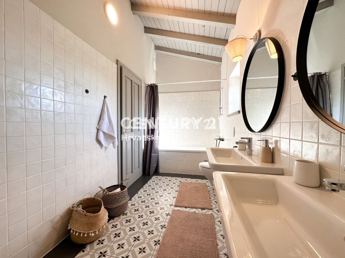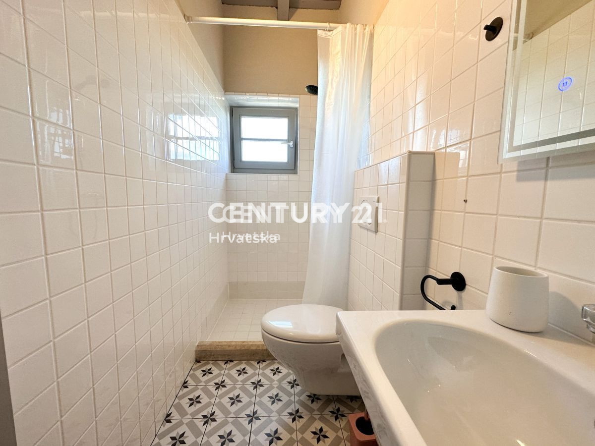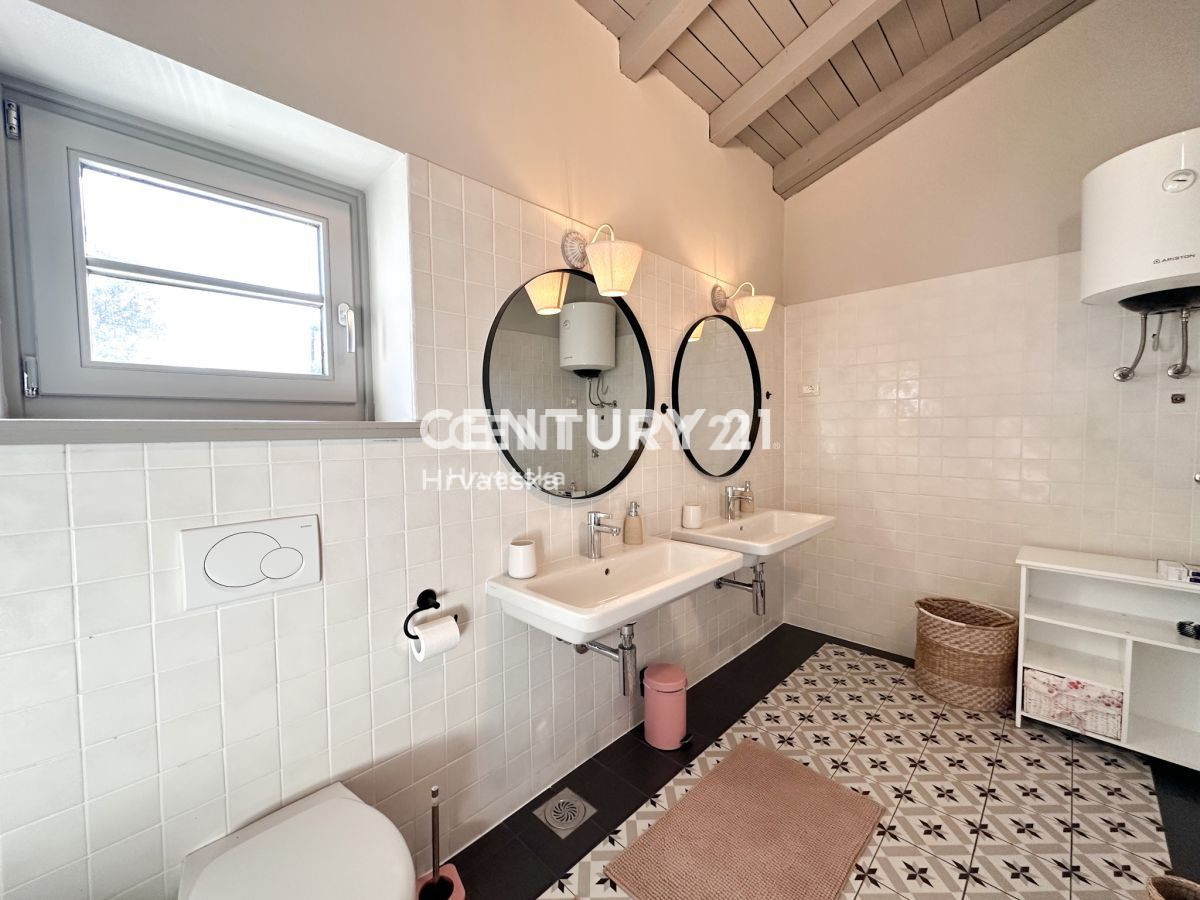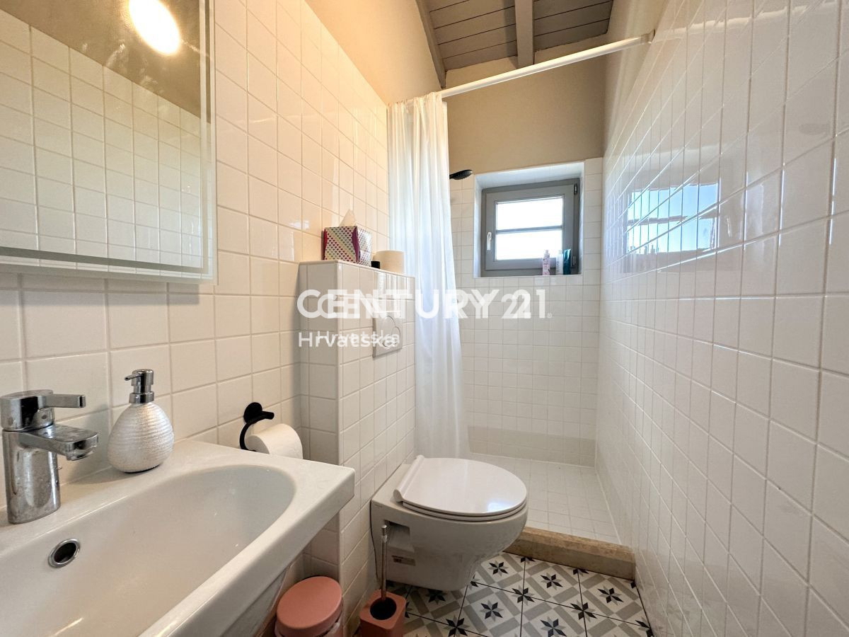 Poreč-Bereich, Steinhaus mit Pool und Meerblick In der Nähe von Poreč steht ein wunderschönes Steinhaus mit Meerblick zum Verkauf. Das Haus liegt am äußersten Rand des Dorfes und grenzt an landwirtschaftlich genutztes Land. Das Haus befindet sich auf ei