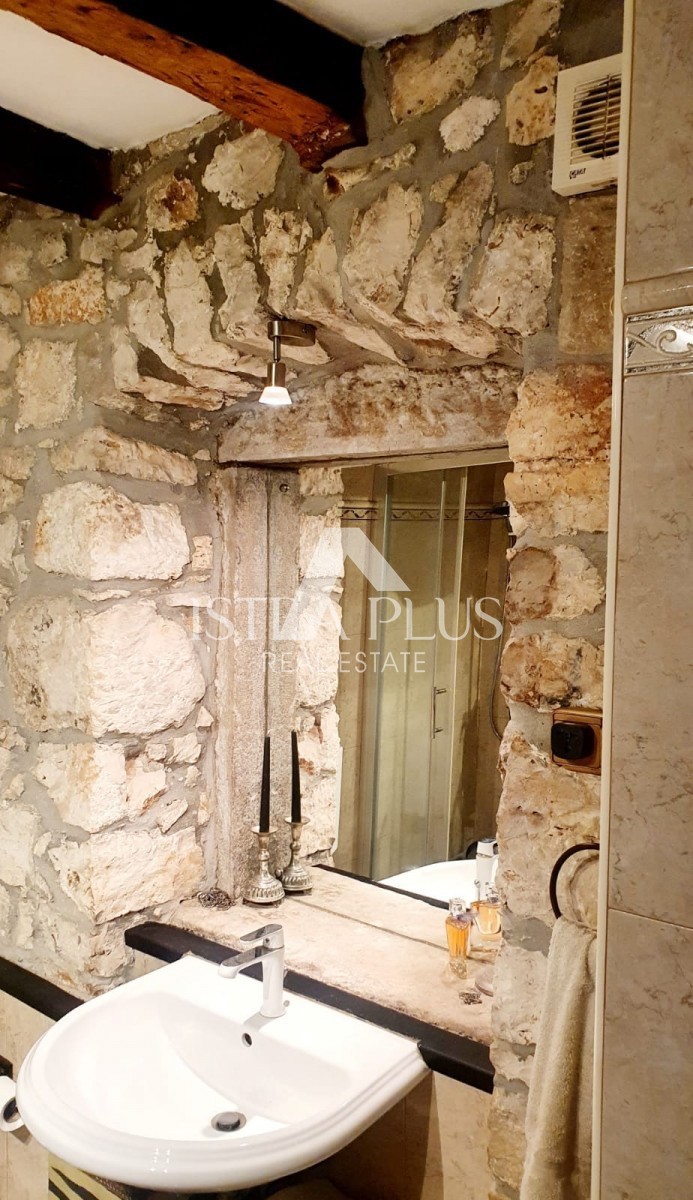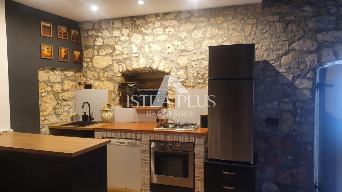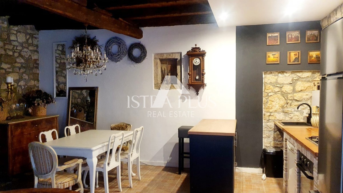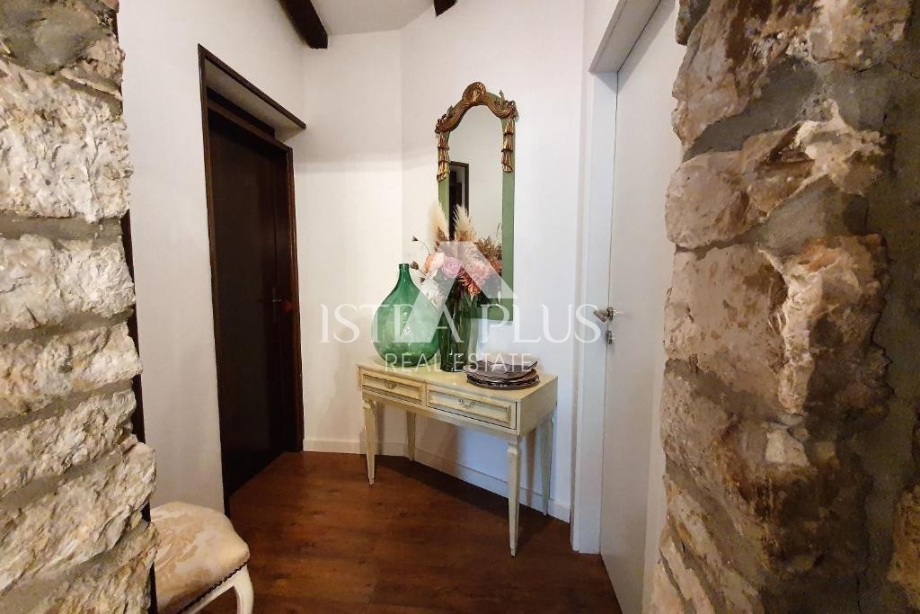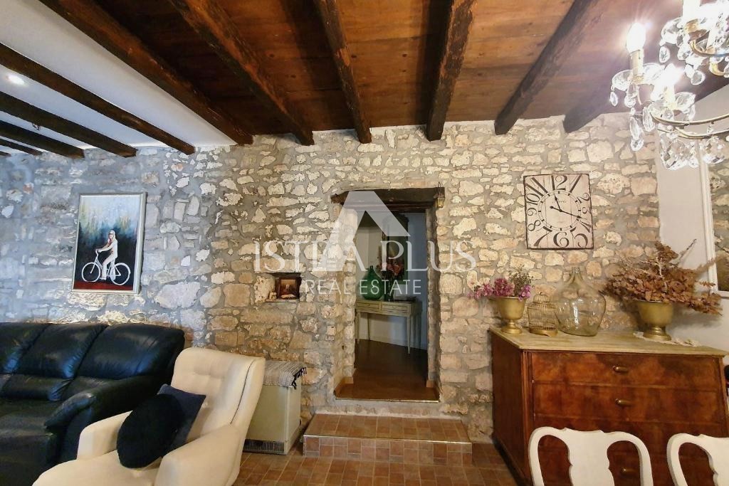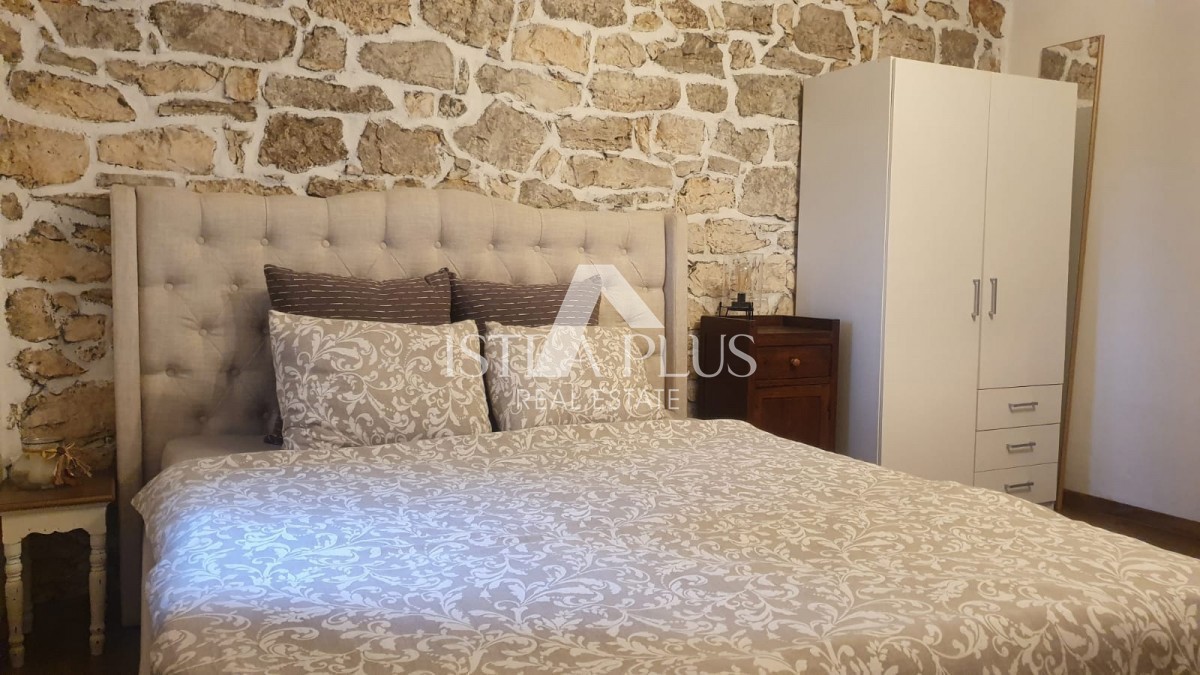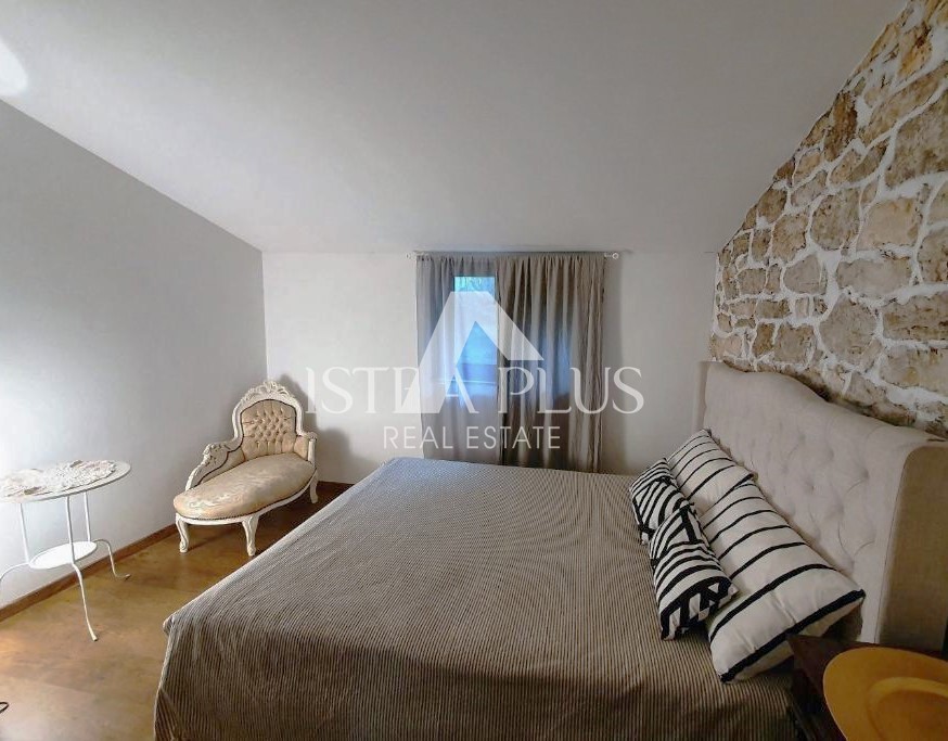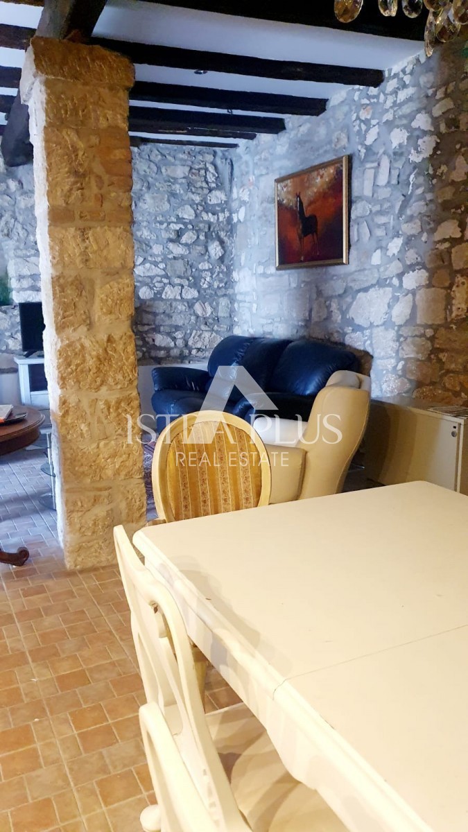 K270 Steinhaus mit zwei Wohnungen In toller, aber ruhiger Lage, nur 4 km von Poreč und dem Meer entfernt, befindet sich dieses wunderschöne Steinhaus mit zwei komplett eingerichteten Apartments. Die Erdgeschosswohnung (79,45 m²) verfügt über ein geräum