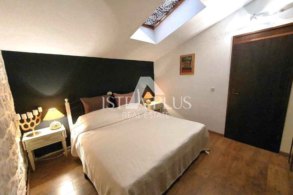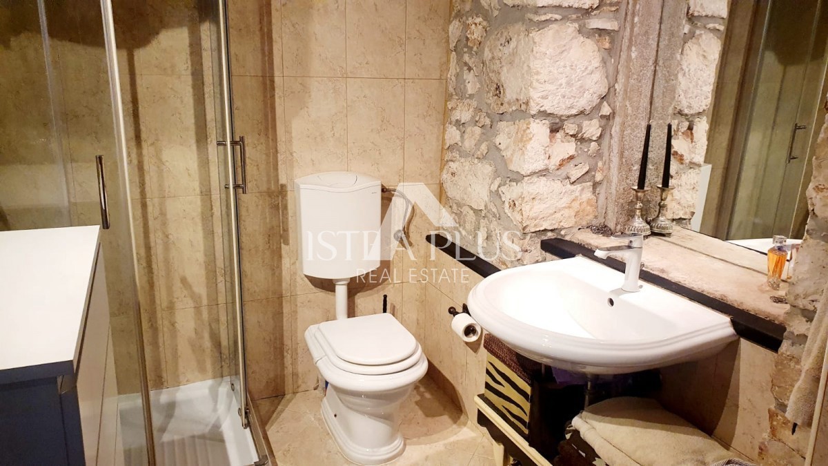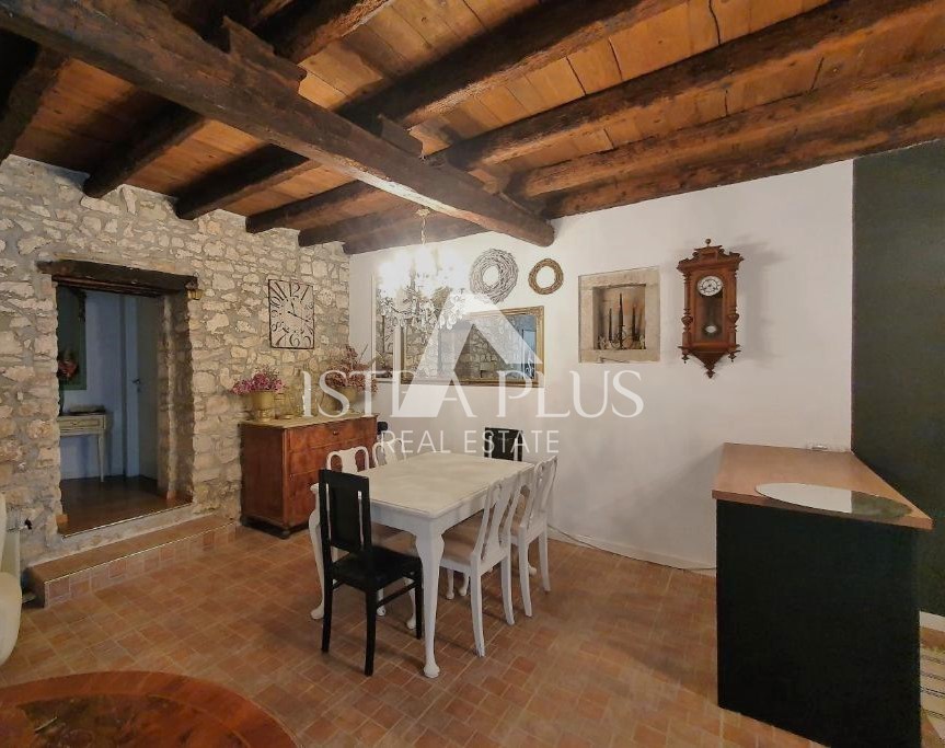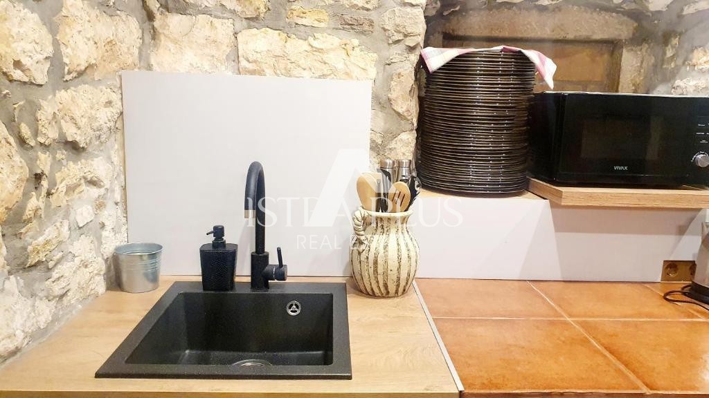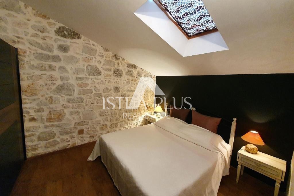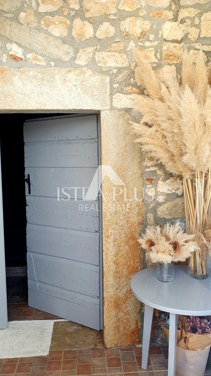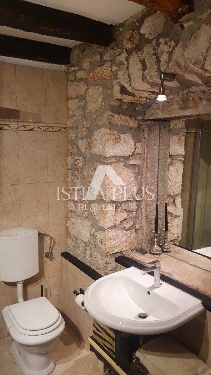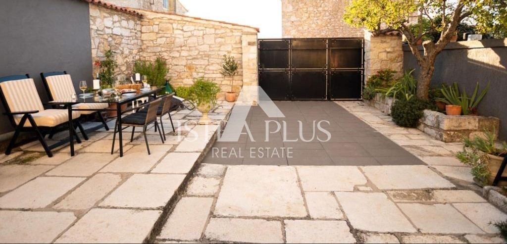 K270 Steinhaus mit zwei Wohnungen In toller, aber ruhiger Lage, nur 4 km von Poreč und dem Meer entfernt, befindet sich dieses wunderschöne Steinhaus mit zwei komplett eingerichteten Apartments. Die Erdgeschosswohnung (79,45 m²) verfügt über ein geräum