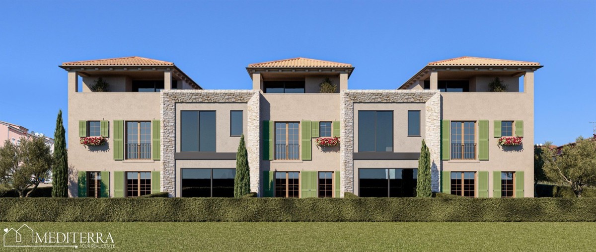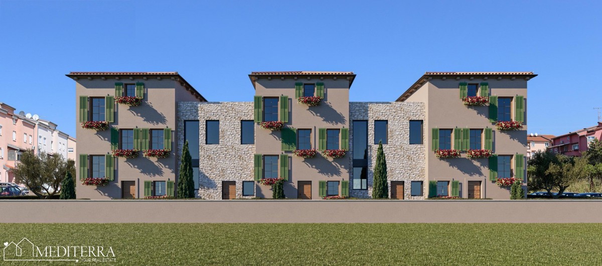 Dieser moderne Wohnkomplex kombiniert zeitgenössische architektonische Merkmale mit traditionellem istrischem Baustil. Die Einheiten sind ideale Heime für junge Familien, die eine ruhige, verkehrsarme Nachbarschaft schätzen, aber dennoch alle notwendigen