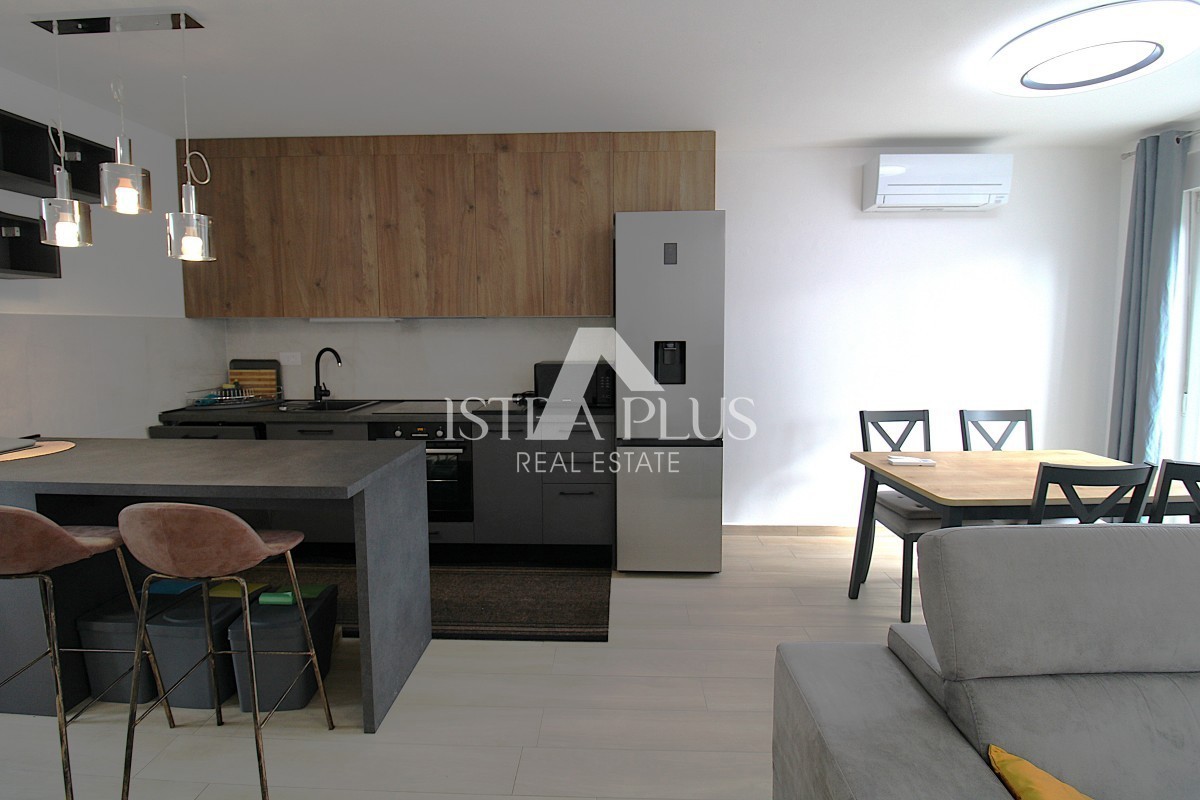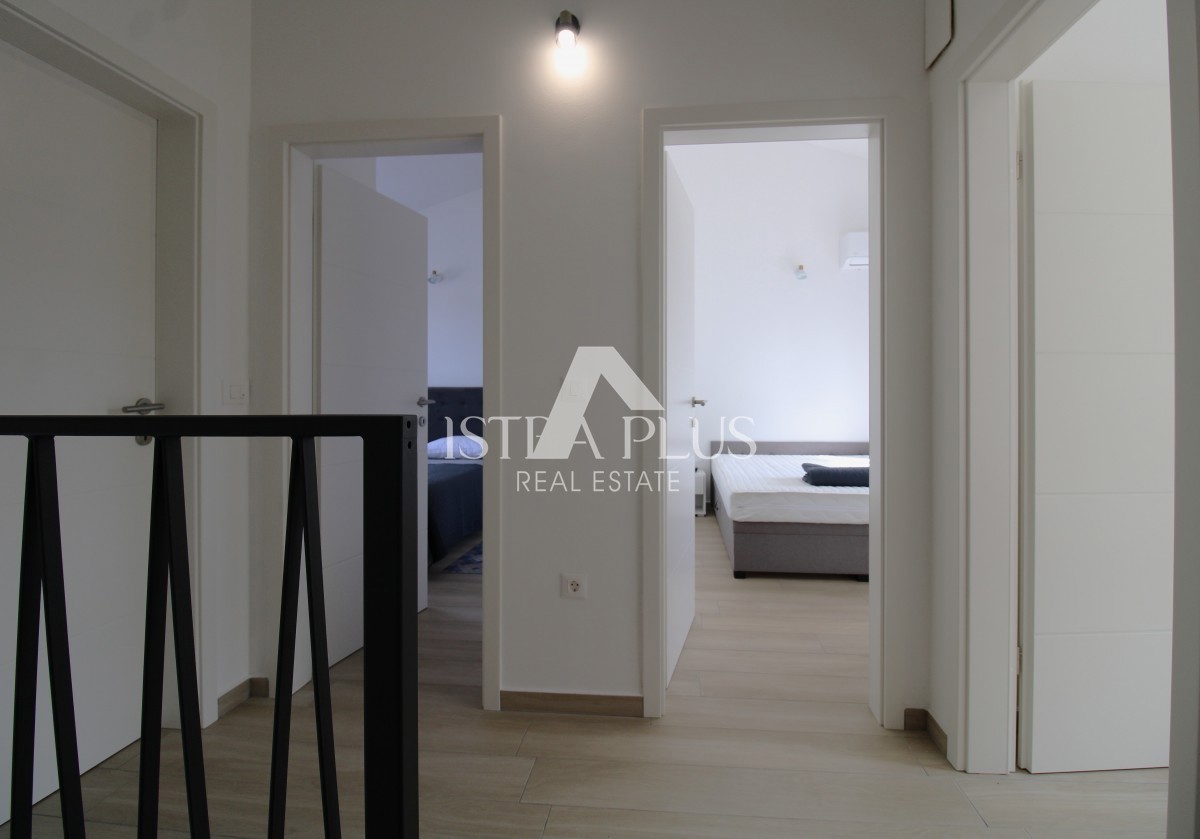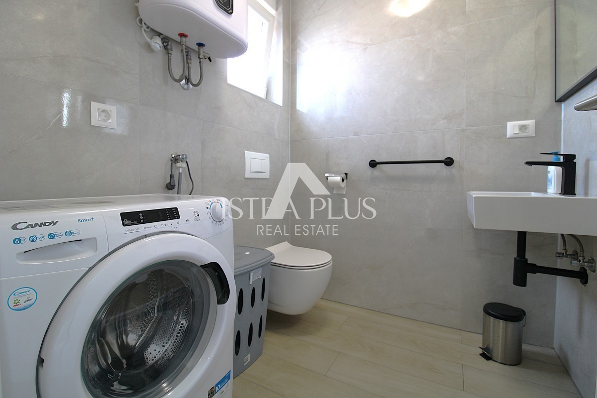 K273 Einfamilienhaus in einer Reihe - Vorort von Poreč, 1500 m vom Meer und dem Zentrum entfernt Zum Verkauf steht ein brandneues, nie genutztes Reihenhaus in einer ruhigen Gegend von Poreč, ideal für das Familienleben oder den Urlaub. Erdgeschoss – o
