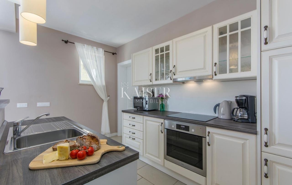 Kaiser Immobilien bietet eine charmante Steinvilla mit rustikalem Charme zum Verkauf an, gelegen in einem authentischen istrischen Dorf, nur 15 Autominuten vom Meer und Poreč entfernt. Dieses einzigartige Anwesen bietet absolute Ruhe und Privatsphäre, umg