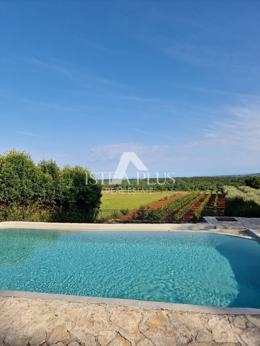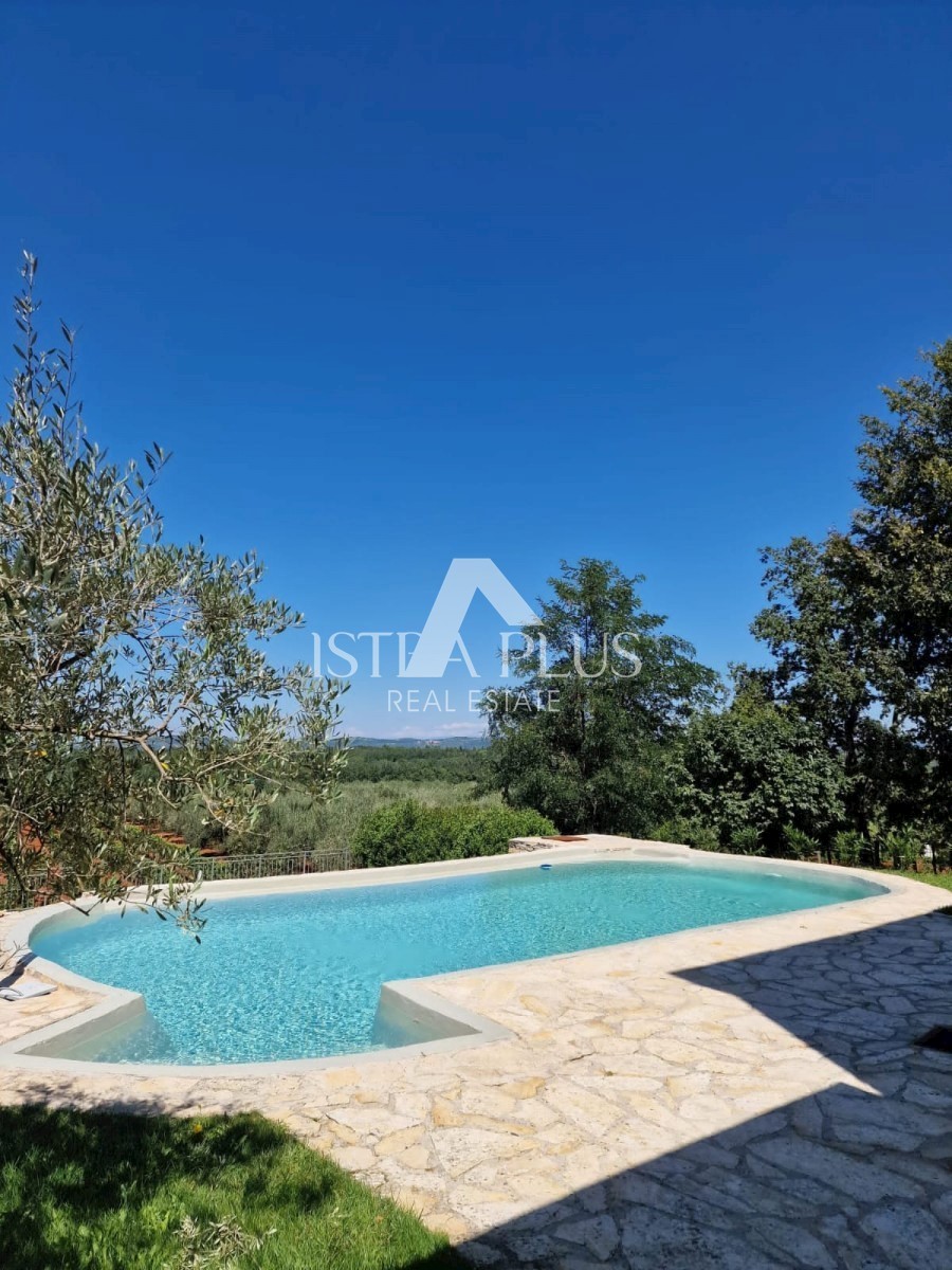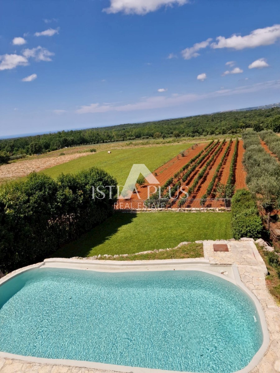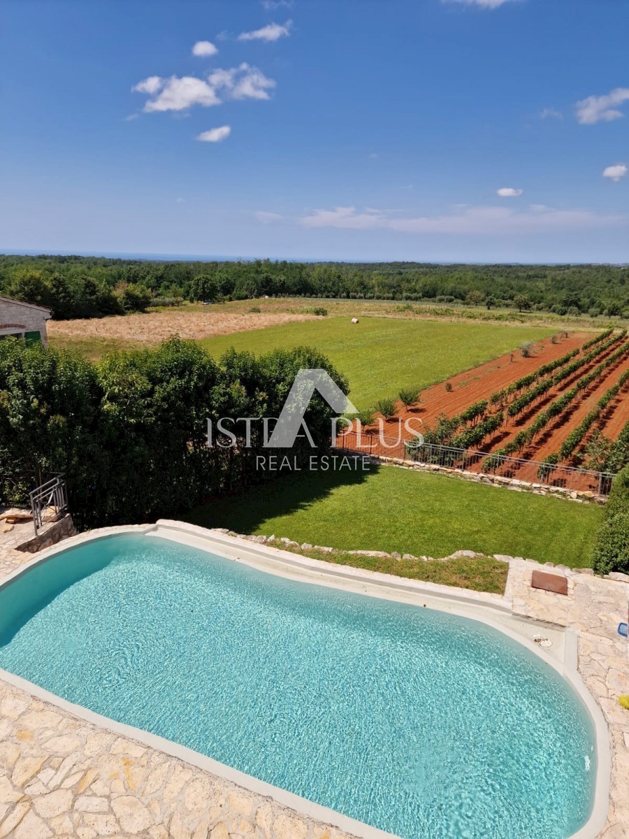 K11 In der Nähe von Poreč und dem Meer... Am Rande des Dorfes mit Blick auf die istrische Landschaft und das Meer befindet sich eine schöne Steinvilla mit Swimmingpool. Die Villa wurde mit authentischen Bauelementen und authentischem Stil und Dekoration g