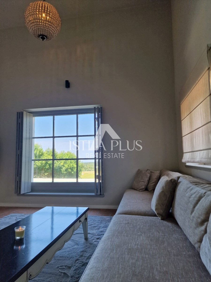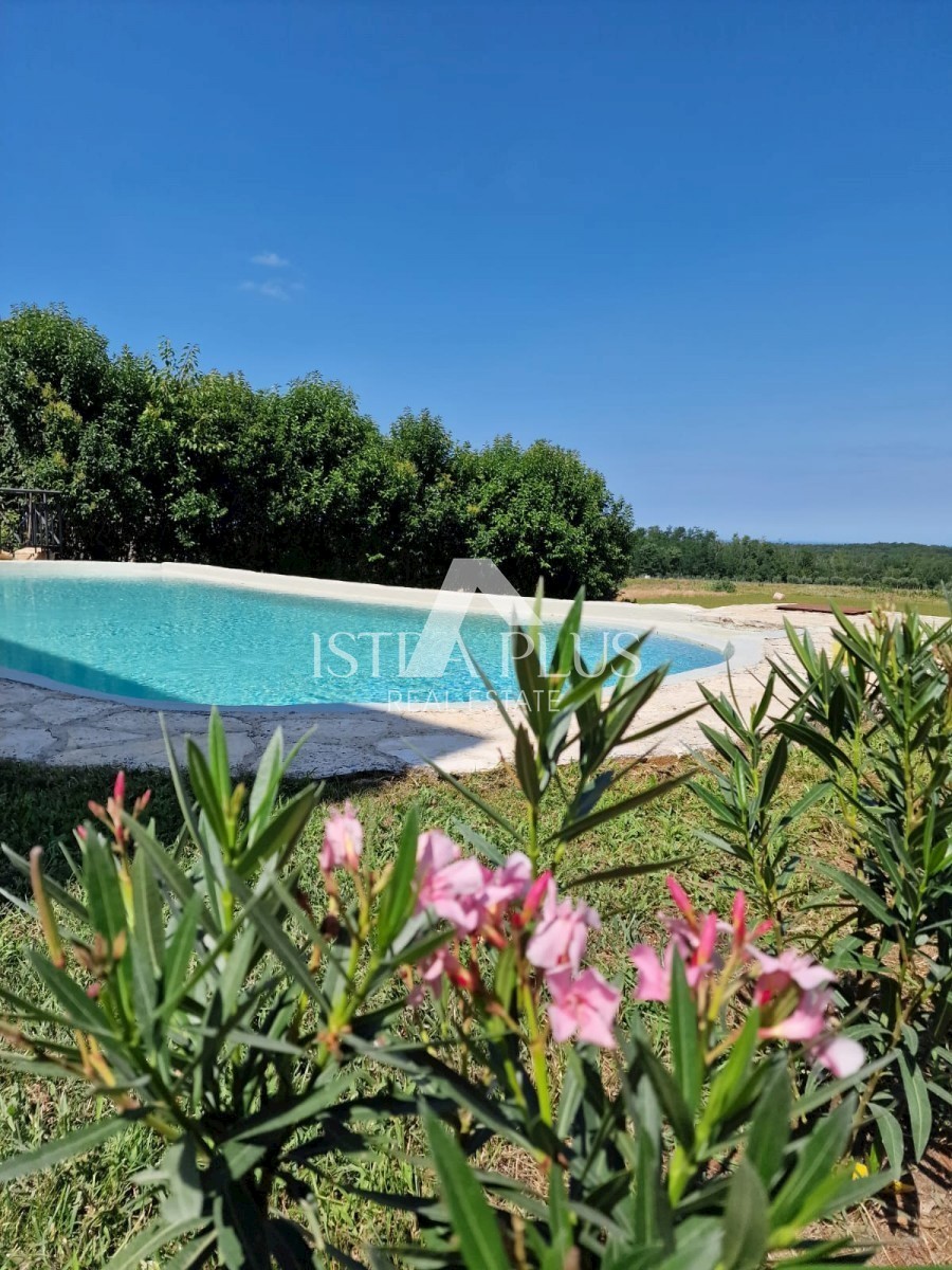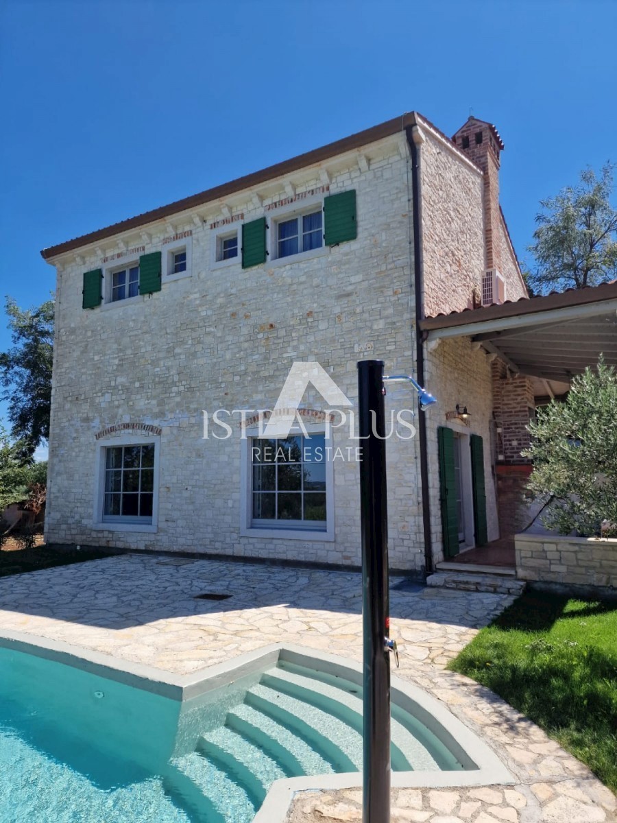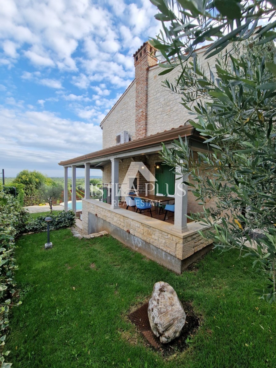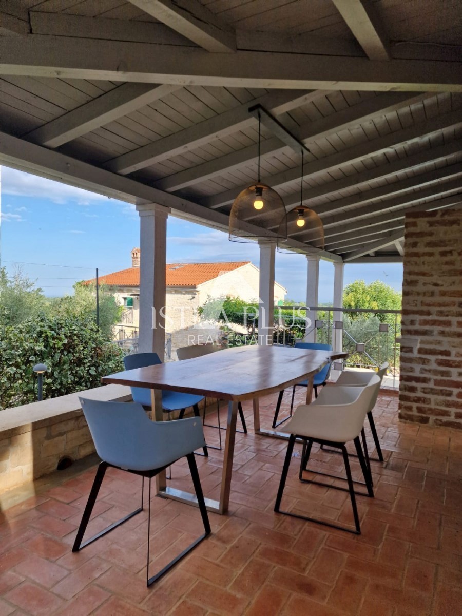 K11 In der Nähe von Poreč und dem Meer... Am Rande des Dorfes mit Blick auf die istrische Landschaft und das Meer befindet sich eine schöne Steinvilla mit Swimmingpool. Die Villa wurde mit authentischen Bauelementen und authentischem Stil und Dekoration g