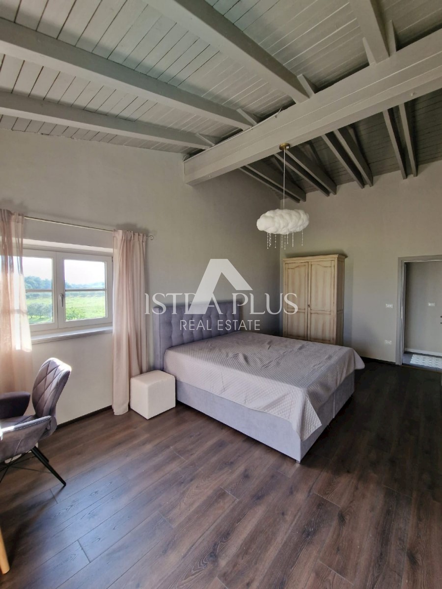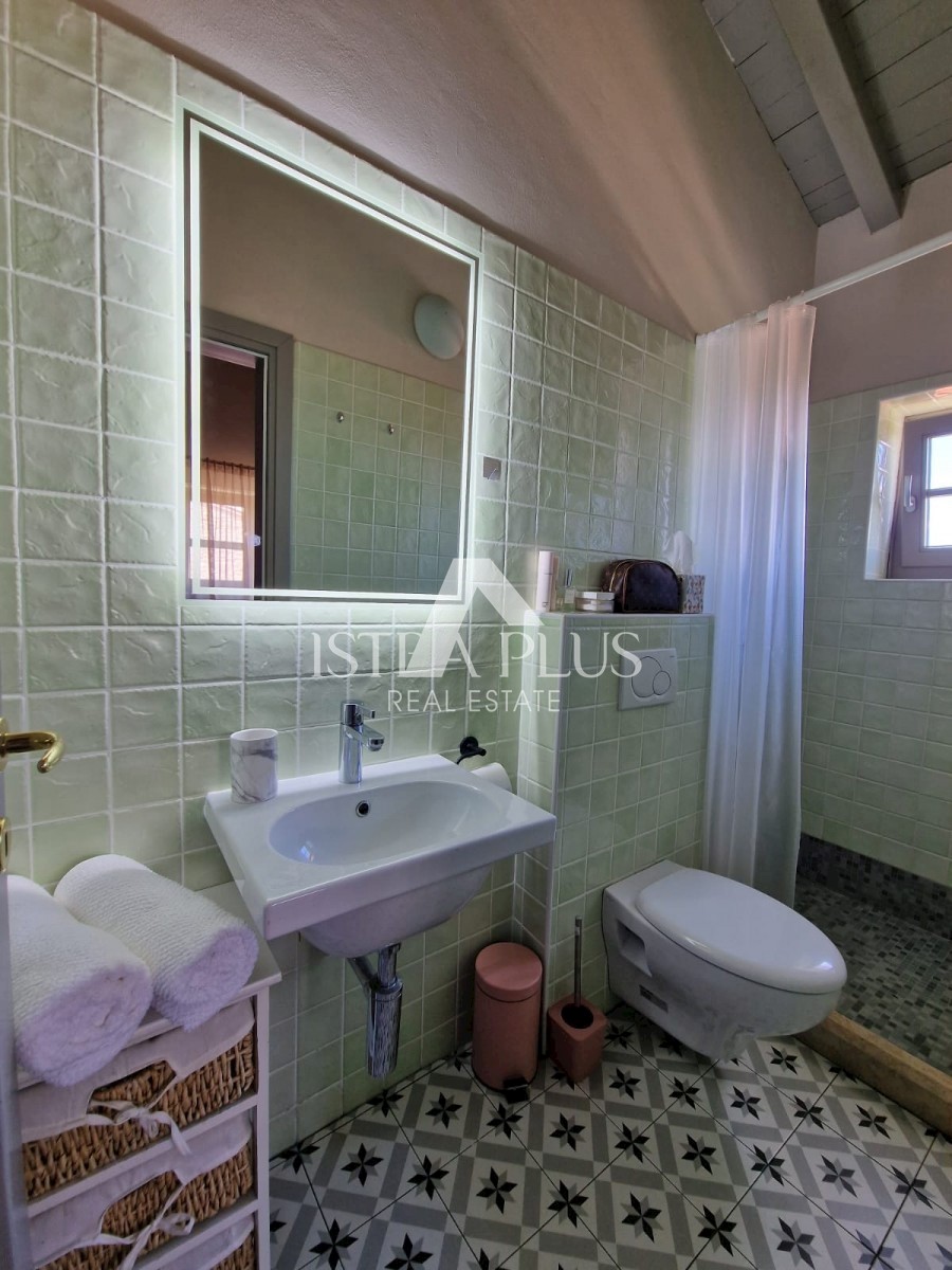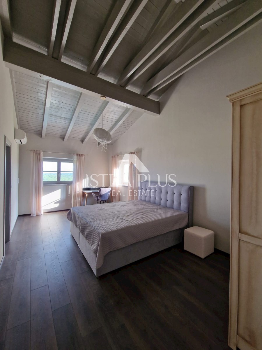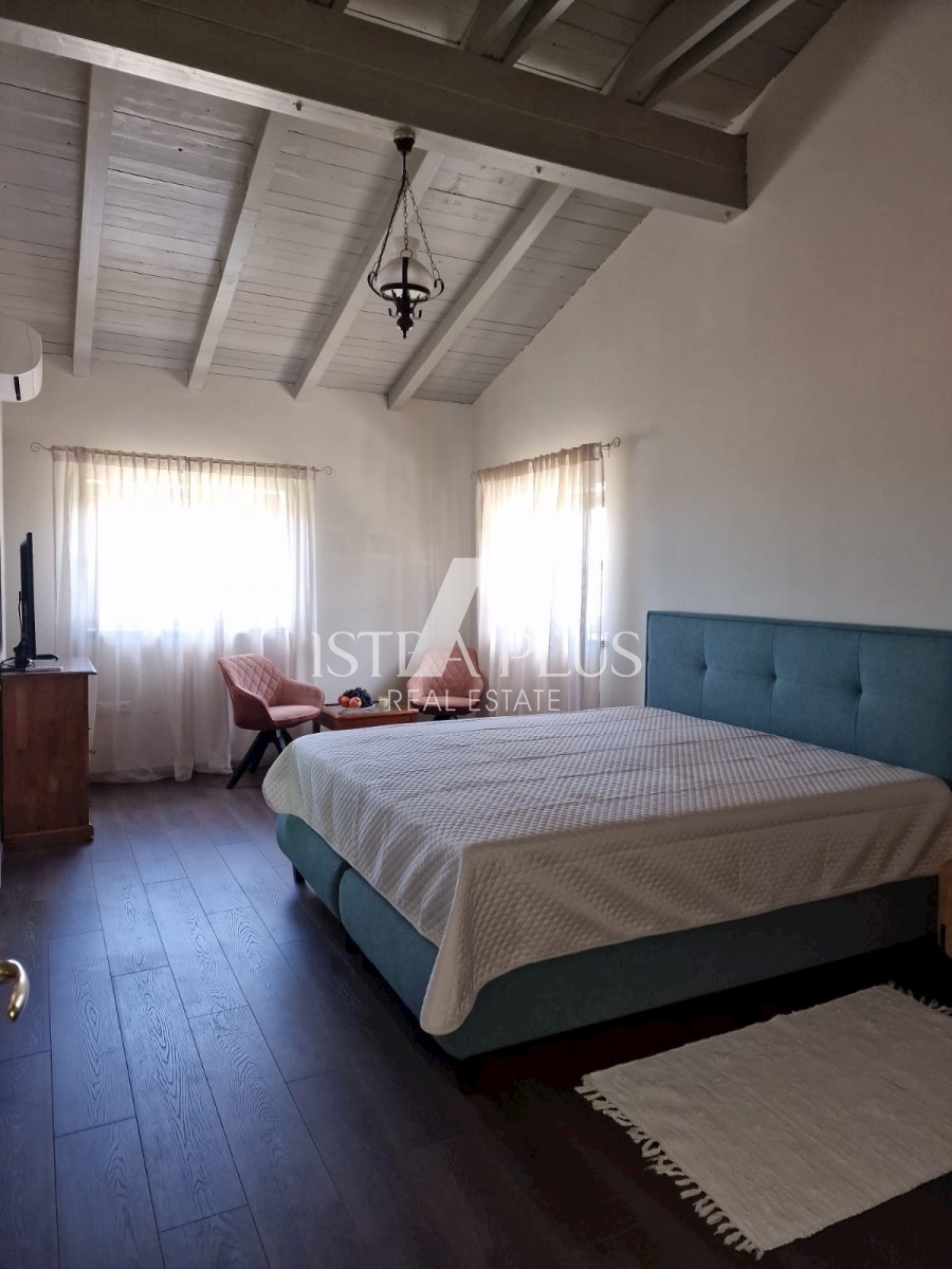 K11 In der Nähe von Poreč und dem Meer... Am Rande des Dorfes mit Blick auf die istrische Landschaft und das Meer befindet sich eine schöne Steinvilla mit Swimmingpool. Die Villa wurde mit authentischen Bauelementen und authentischem Stil und Dekoration g