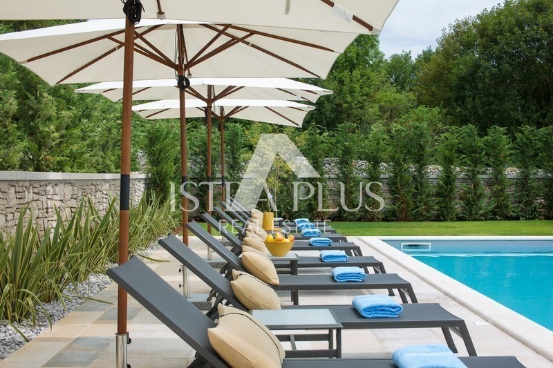 K12 Das Zentrum befindet sich bei ca. 4 km, Rovinj und das Meer sind 16 km und Porec 23 km. Luxusvilla mit Pool von 297 m2 auf zwei vollklimatisierten Etagen. Das Erdgeschoss verfügt über ein Wohnzimmer mit Kamin und SAT-TV und Zugang zu einer geräum