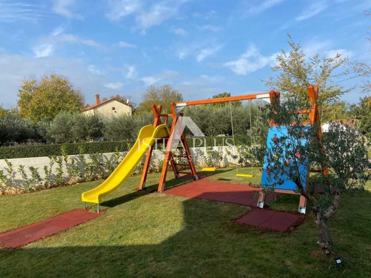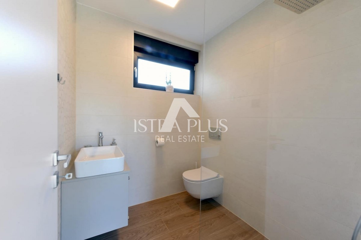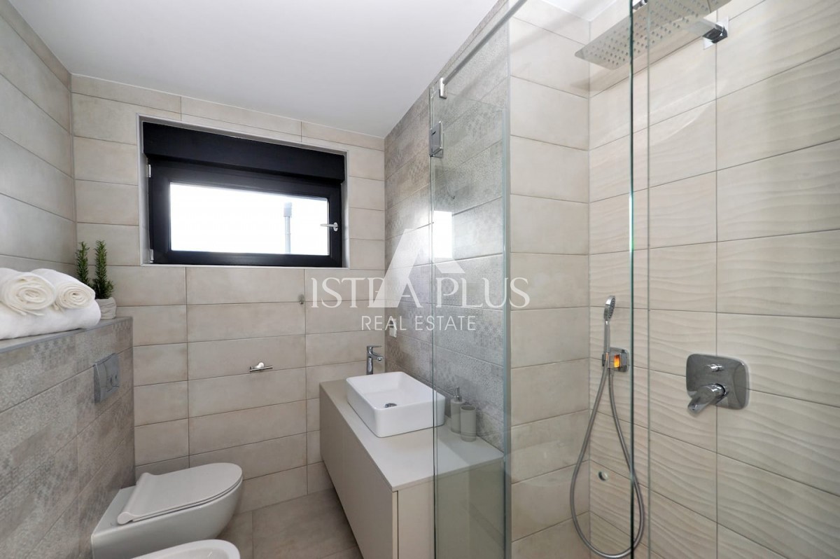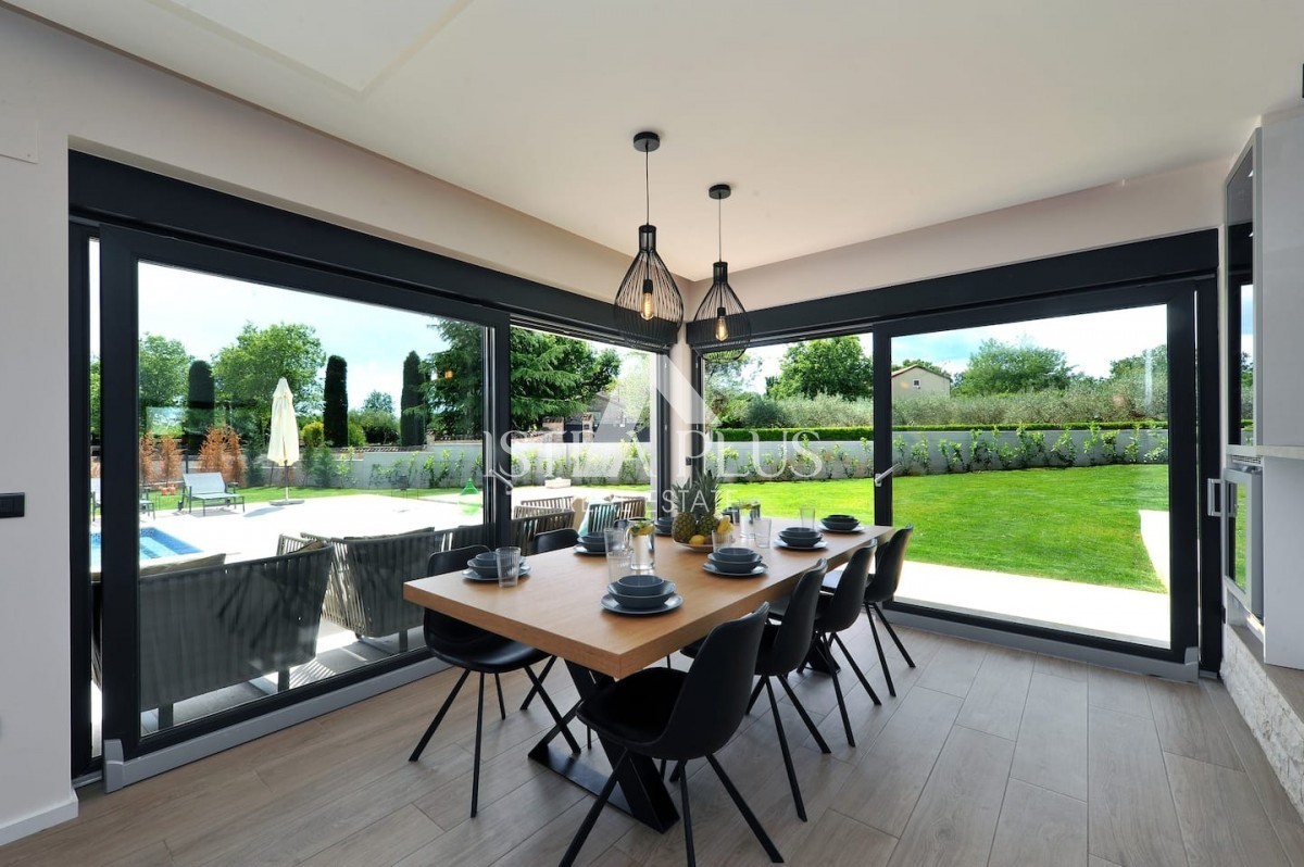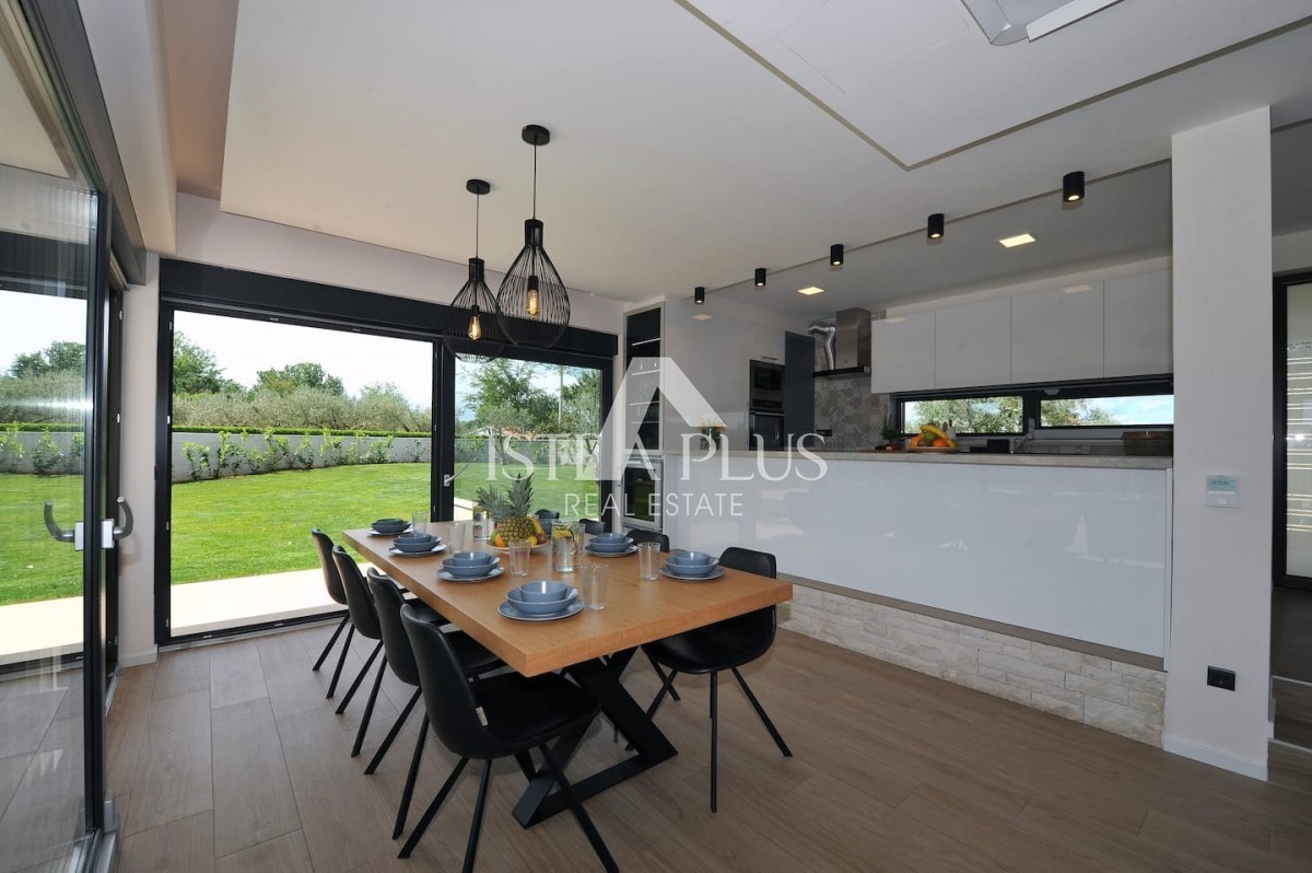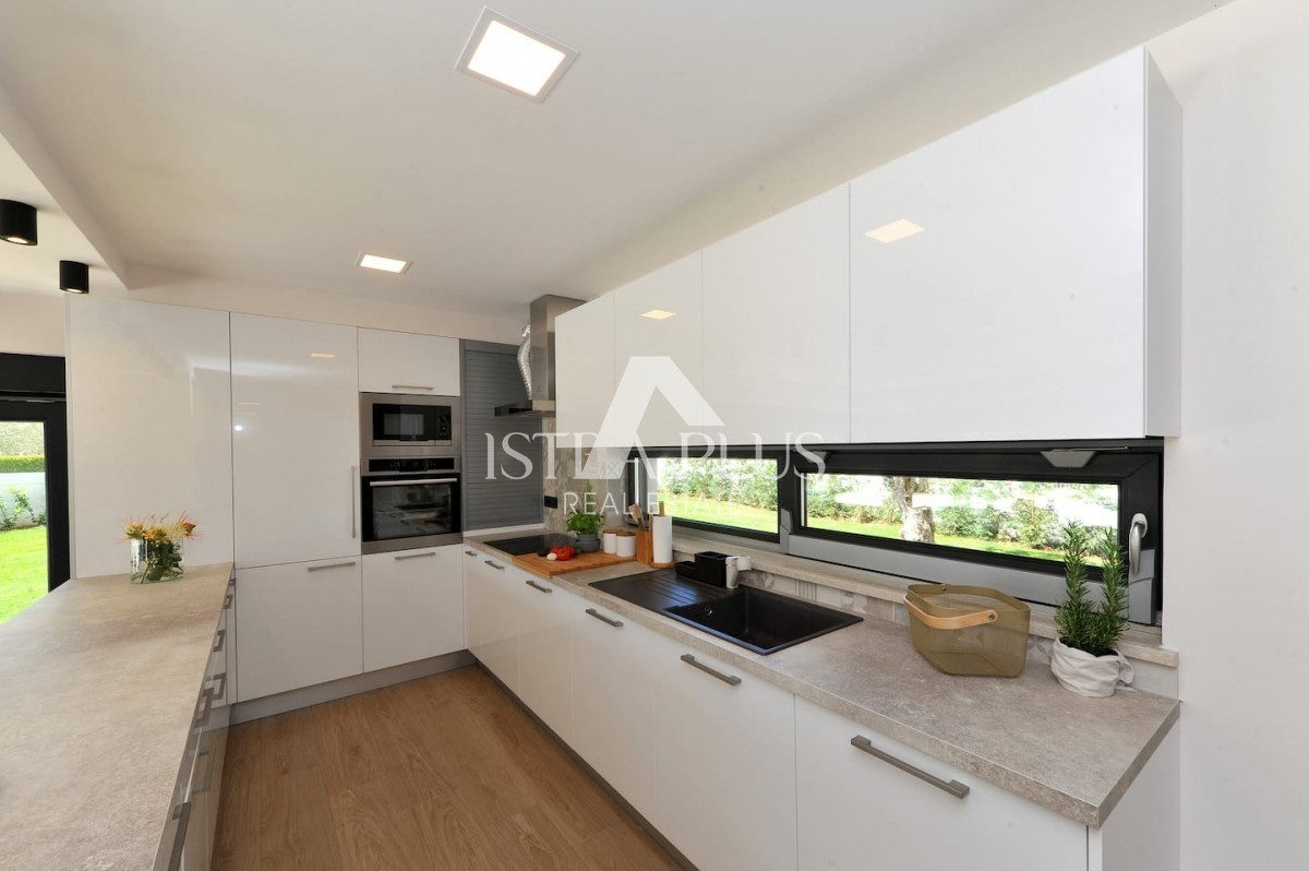 K13 Schöne Luxusvilla in der Nähe von Porec In der Nähe von Porec in ruhiger Lage befindet sich eine neue Qualitätsvilla mit Pool. Die Villa hat eine Fläche von 201m2 auf einem Grundstück von 1065m2. Das Erdgeschoss verfügt über eine Eingangshalle, Toilet