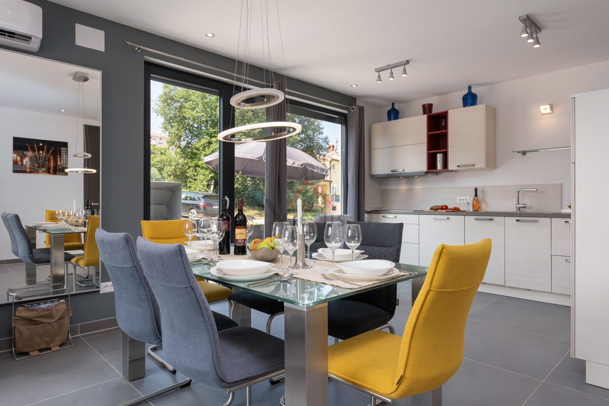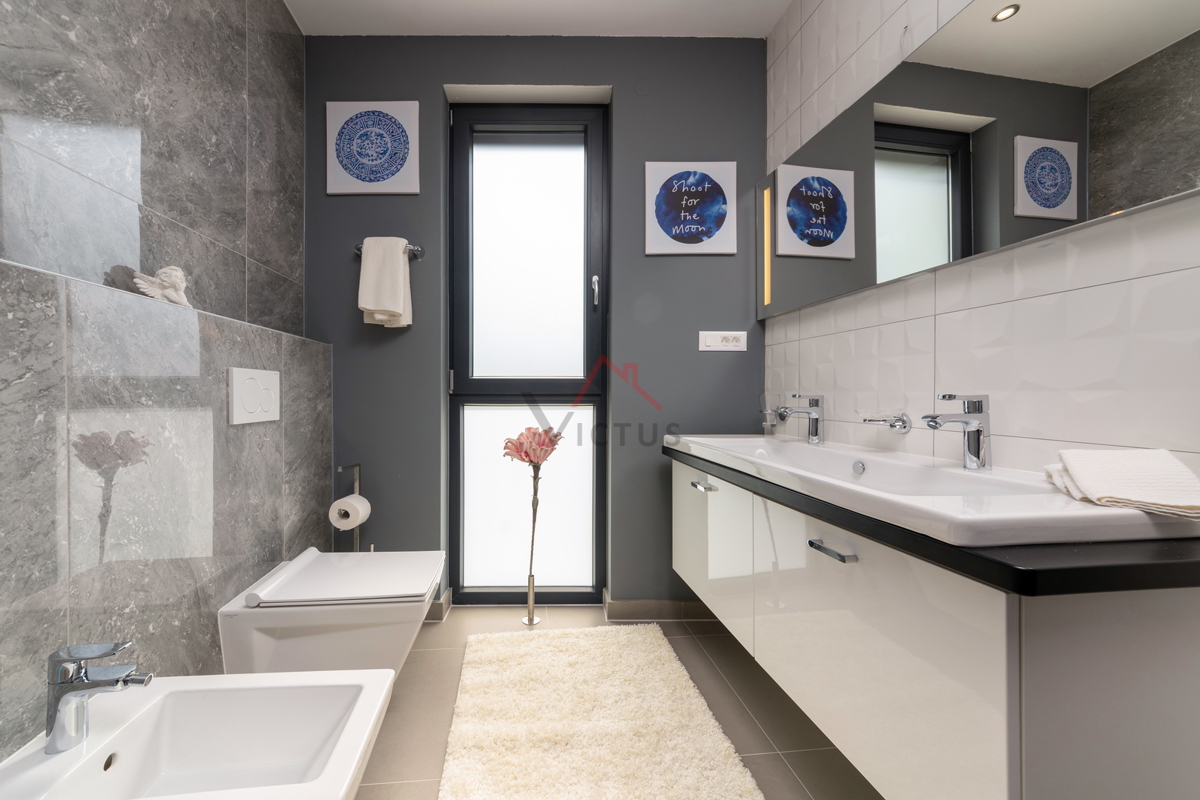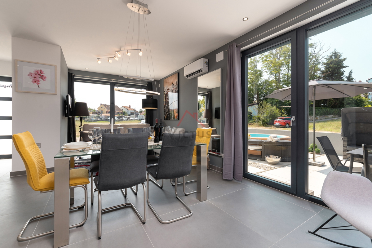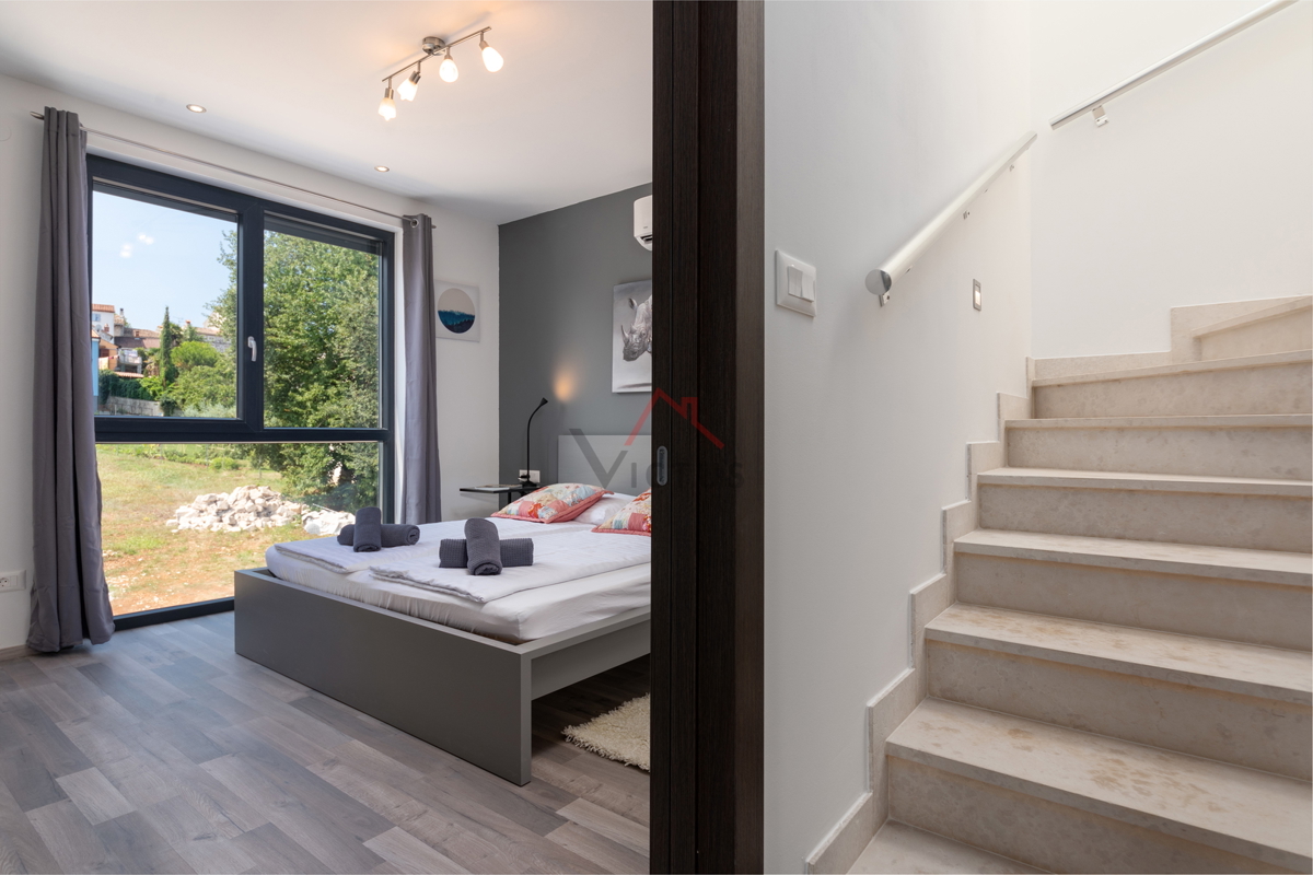 Haus zum Verkauf auf drei Etagen mit Pool in attraktiver Lage, 500 m vom Meer und den nahe gelegenen Stränden entfernt. Objekt Baujahr 2020. Poreč ist eine Touristenstadt an der Ostküste Istriens, die Architektur mit vielfältiger Geschichte, makellos sau